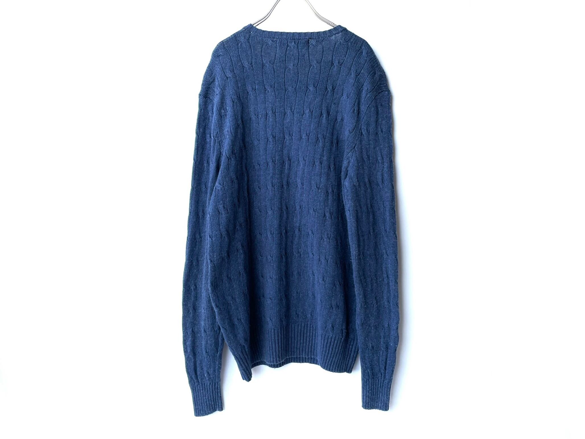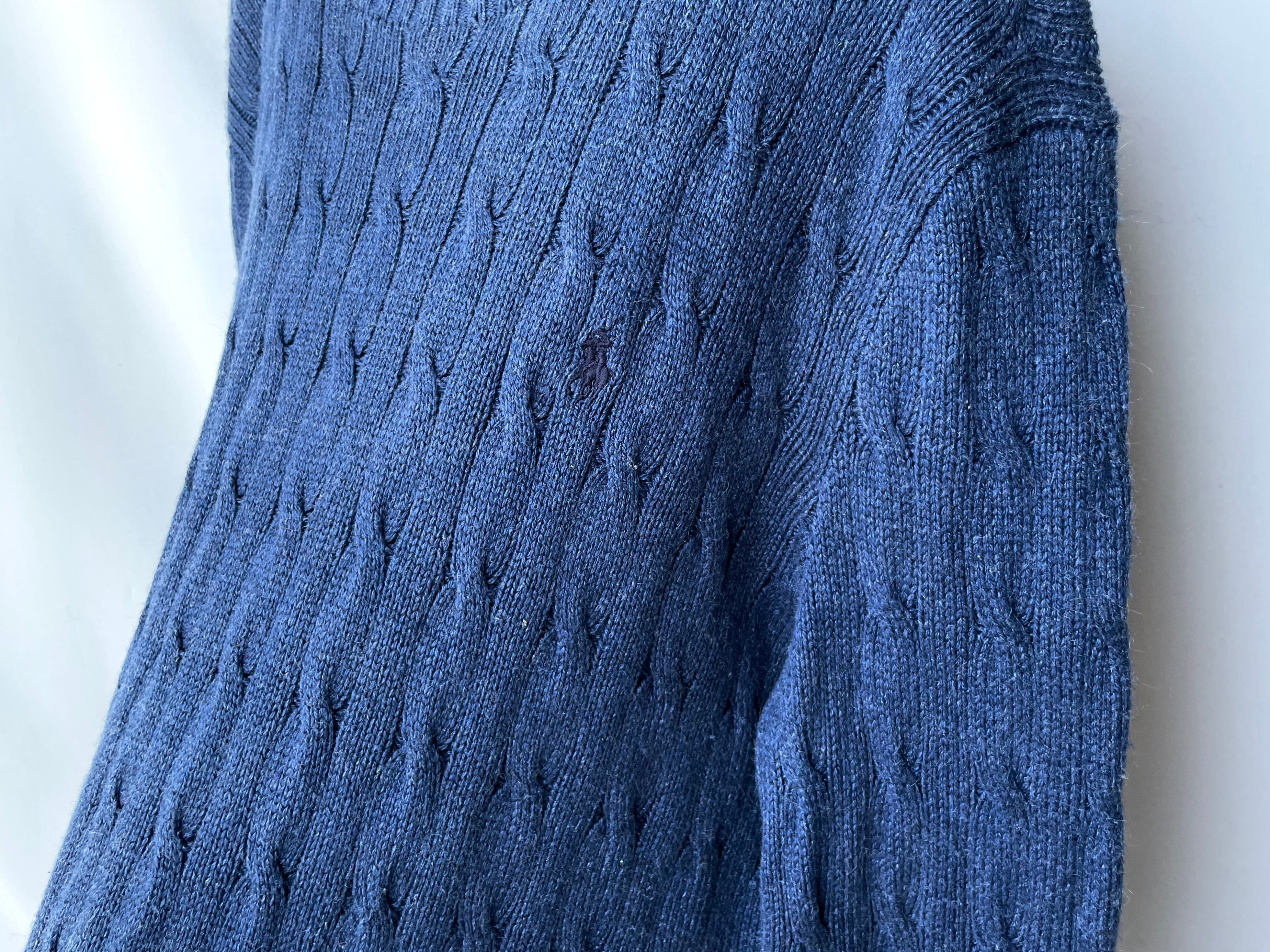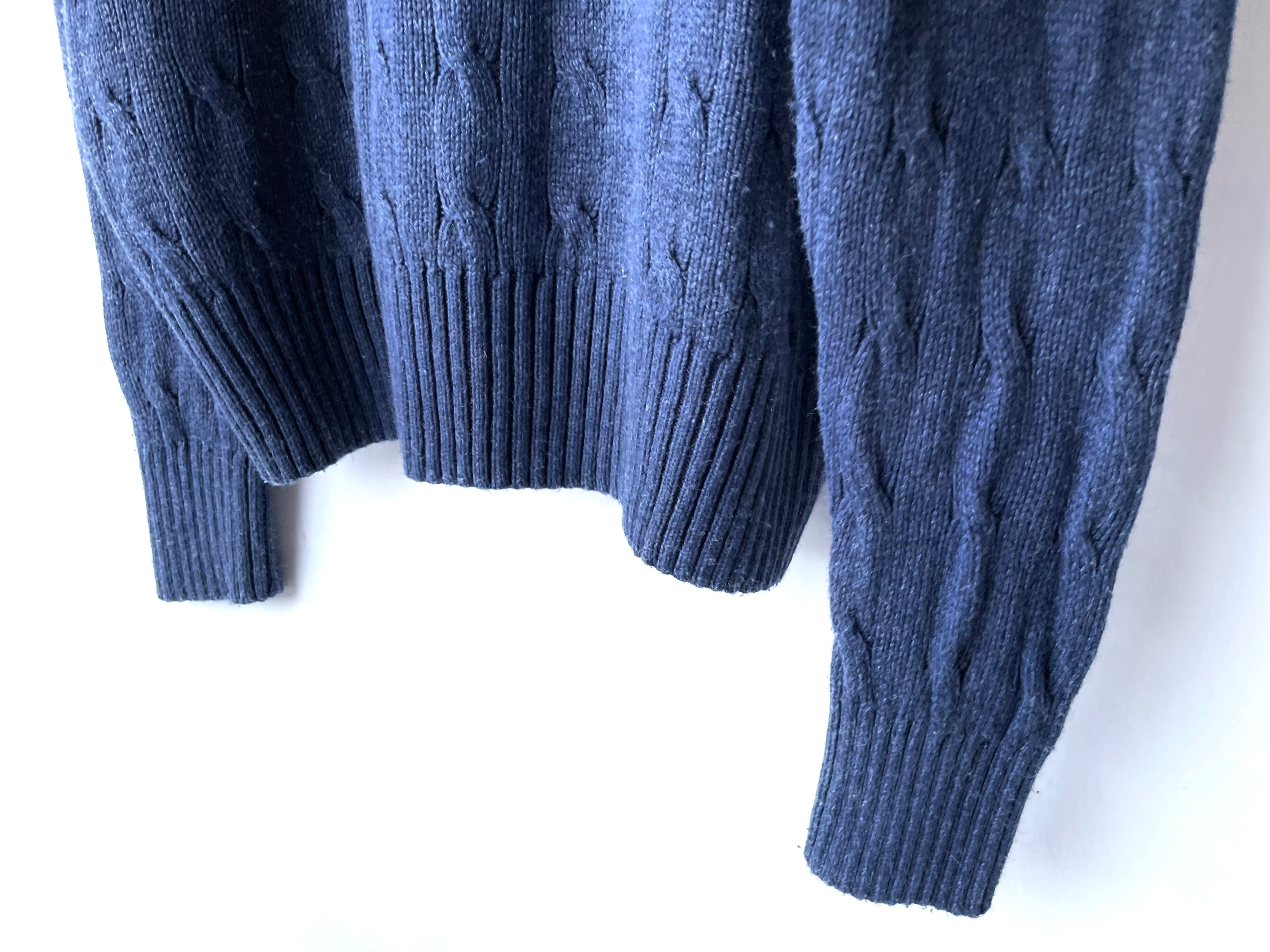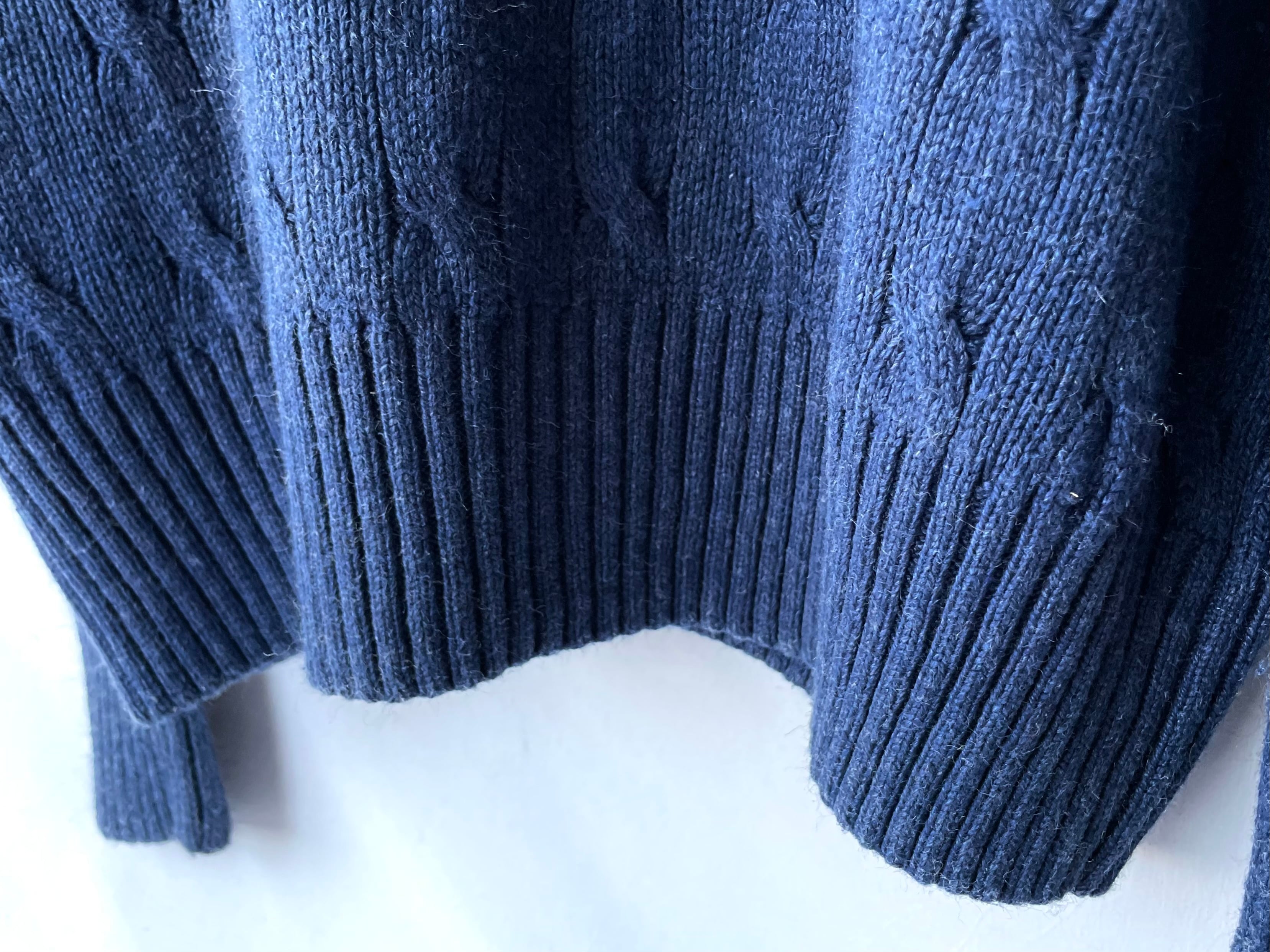シルク100%表記でのケーブル編み、ボディカラーに馴染むポニーマーク。