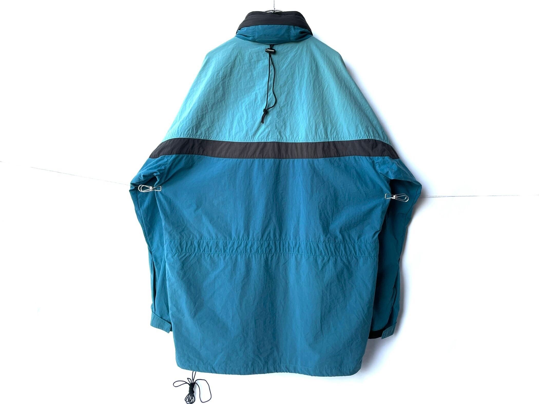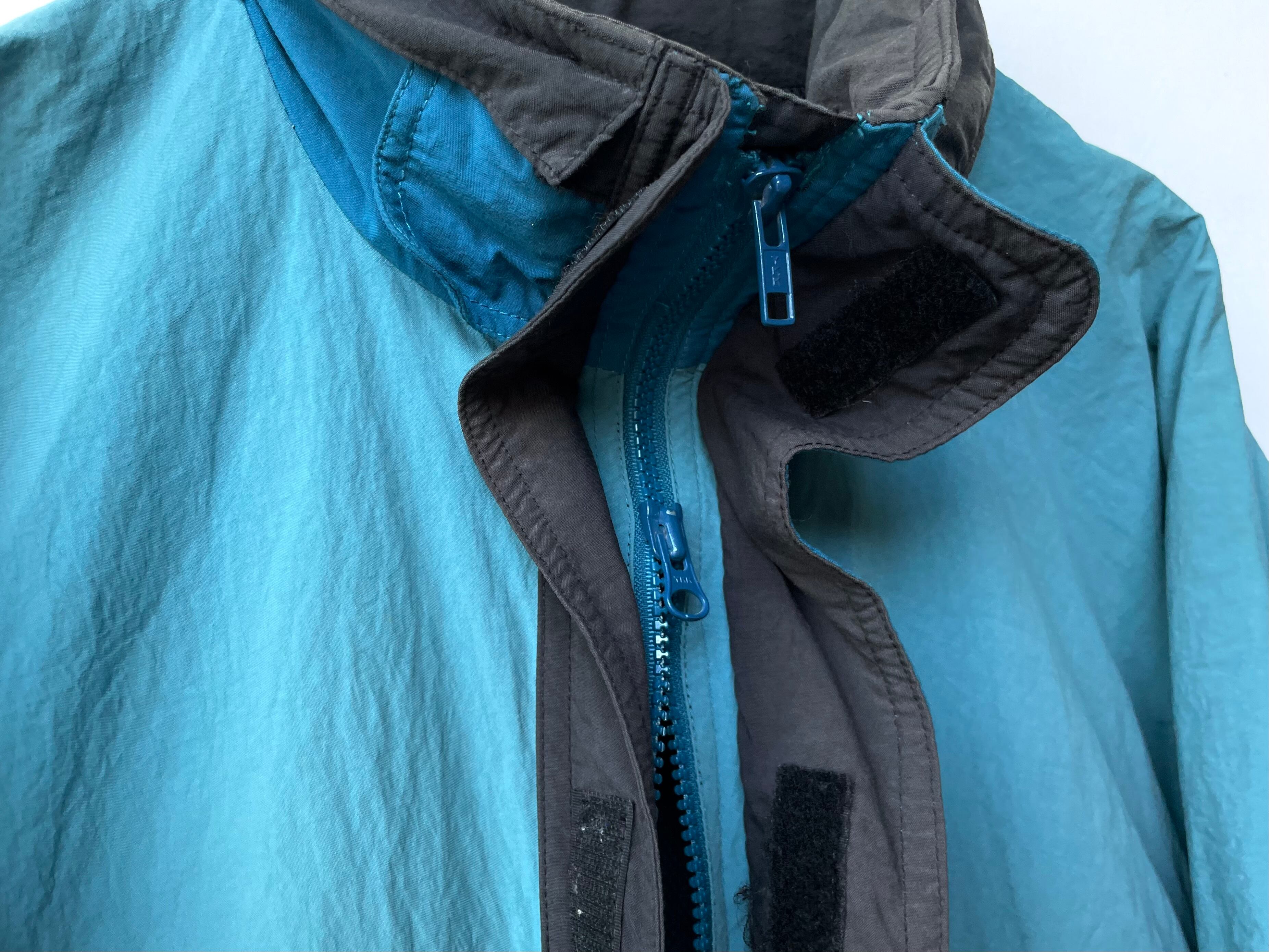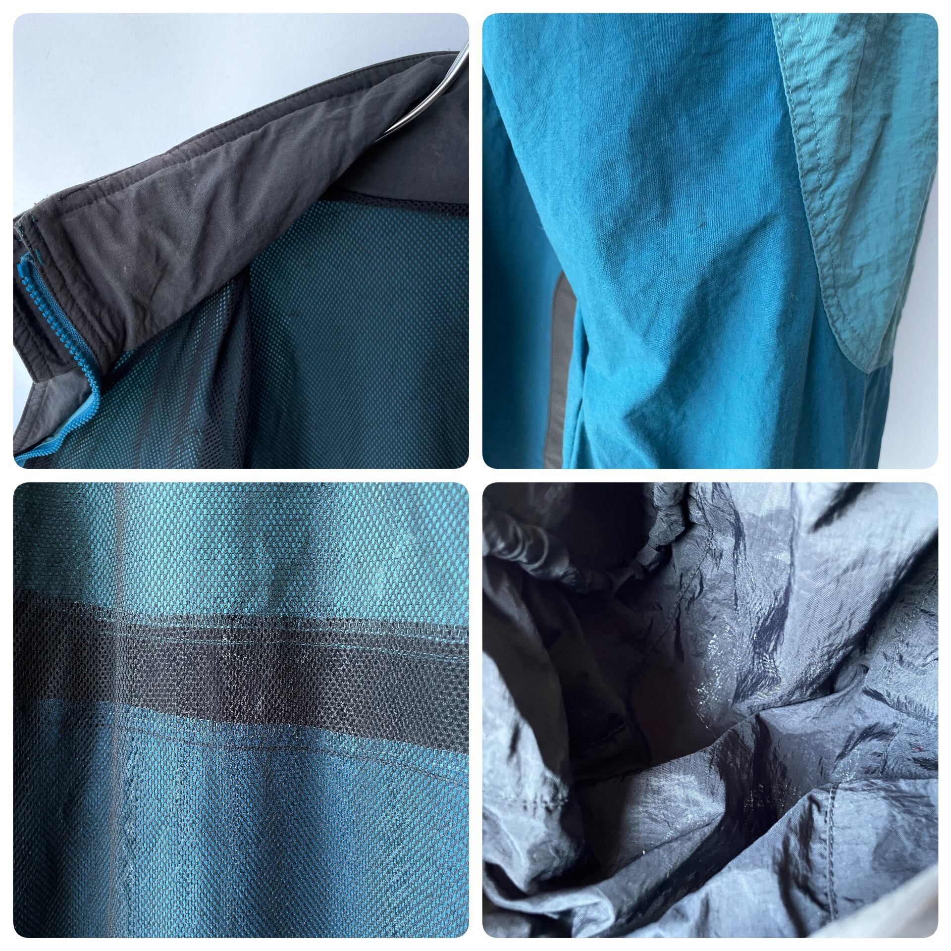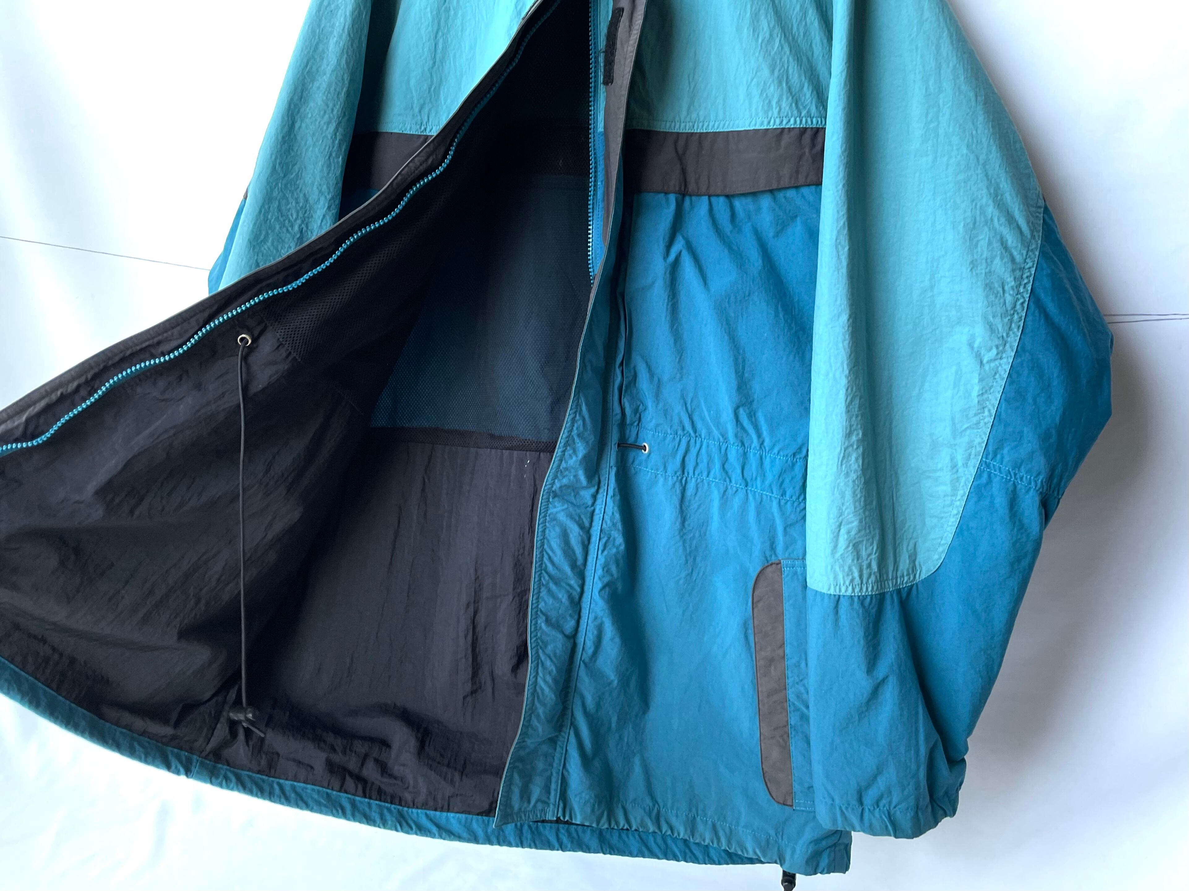 ほんのりと緑がかった色調違いの2トーンブルーに、ブラックカラーの切り替え。