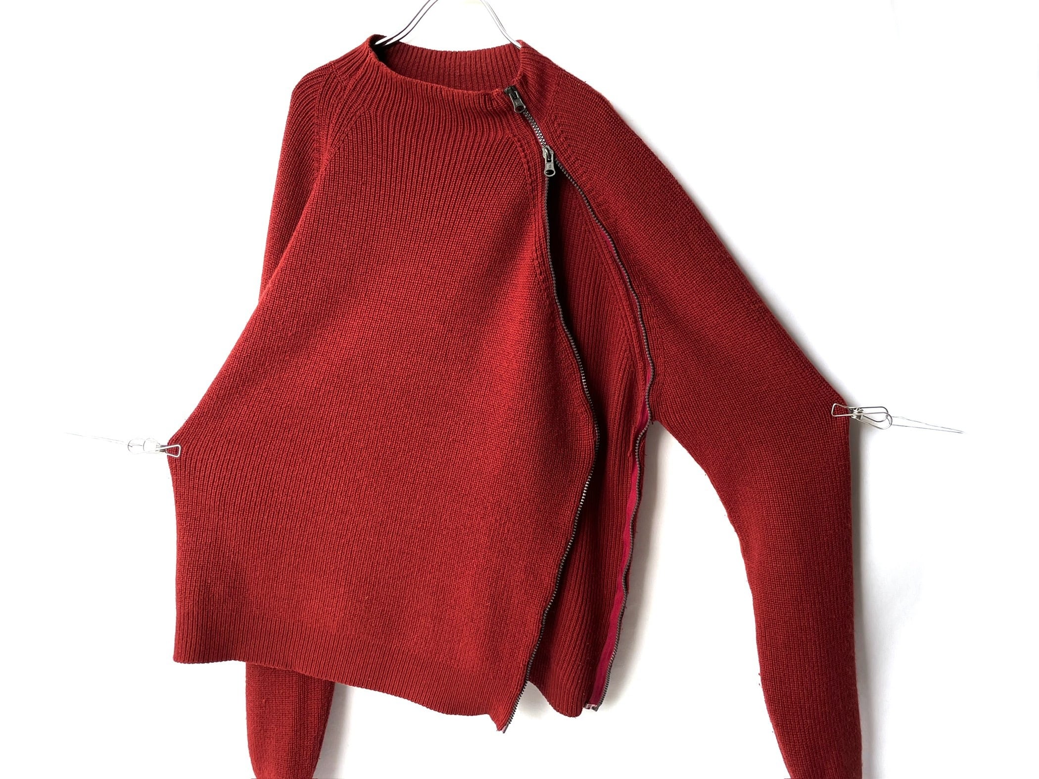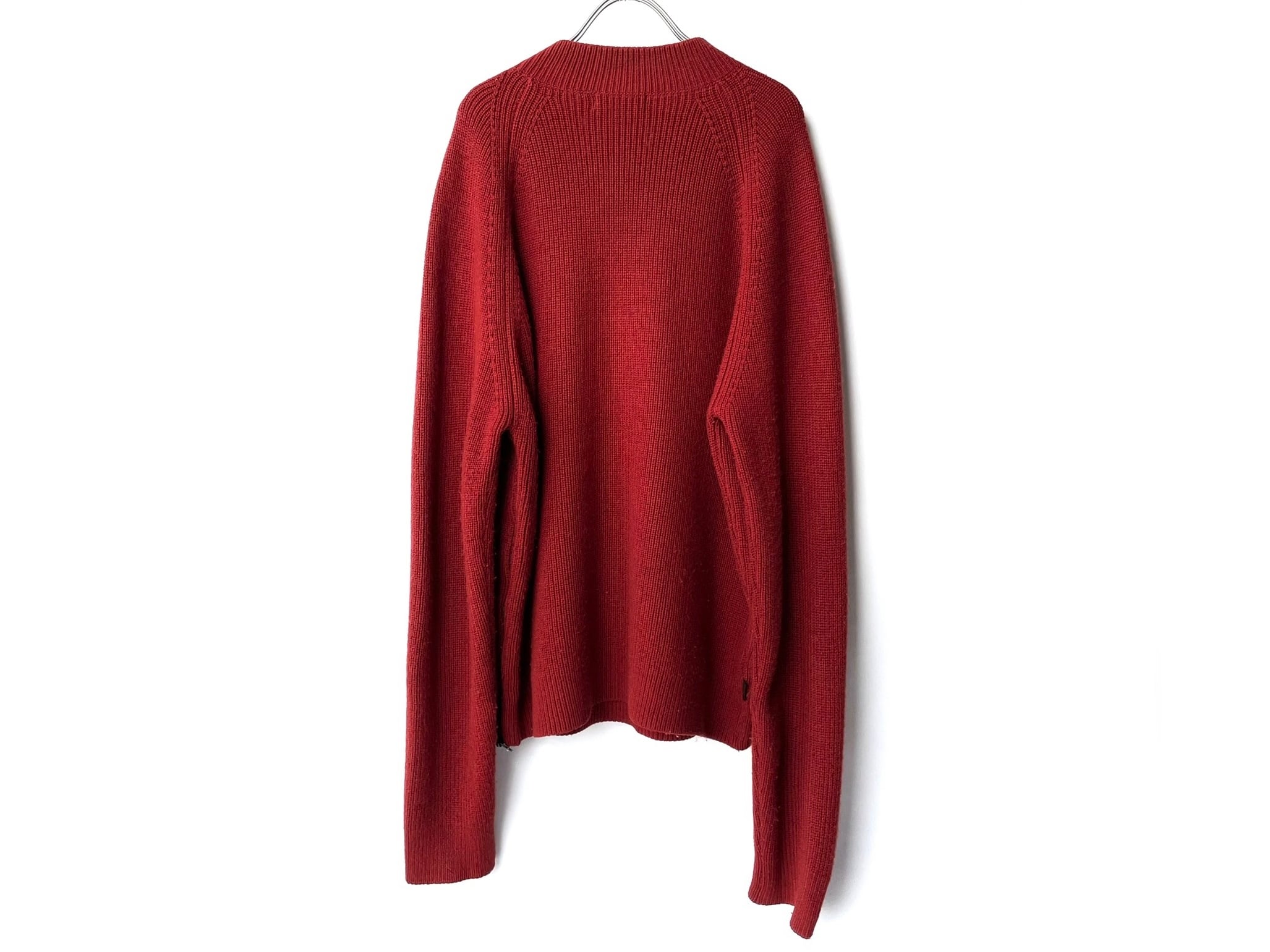 落ち着きのある朱色のヴァージンウール50/アクリル50ニット。
