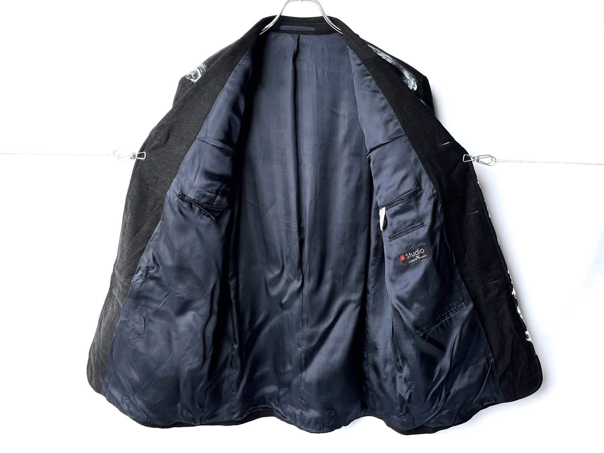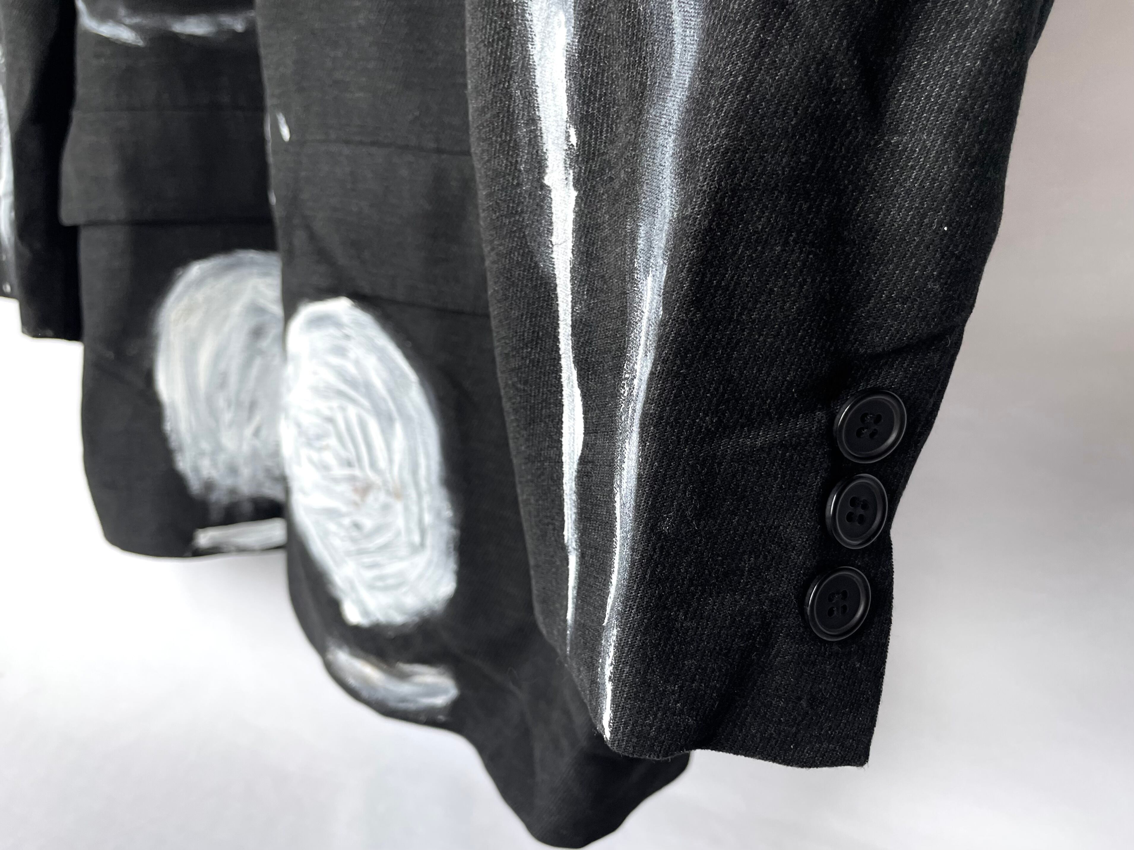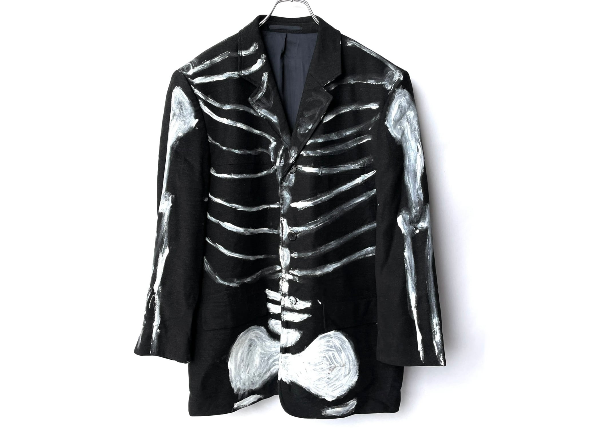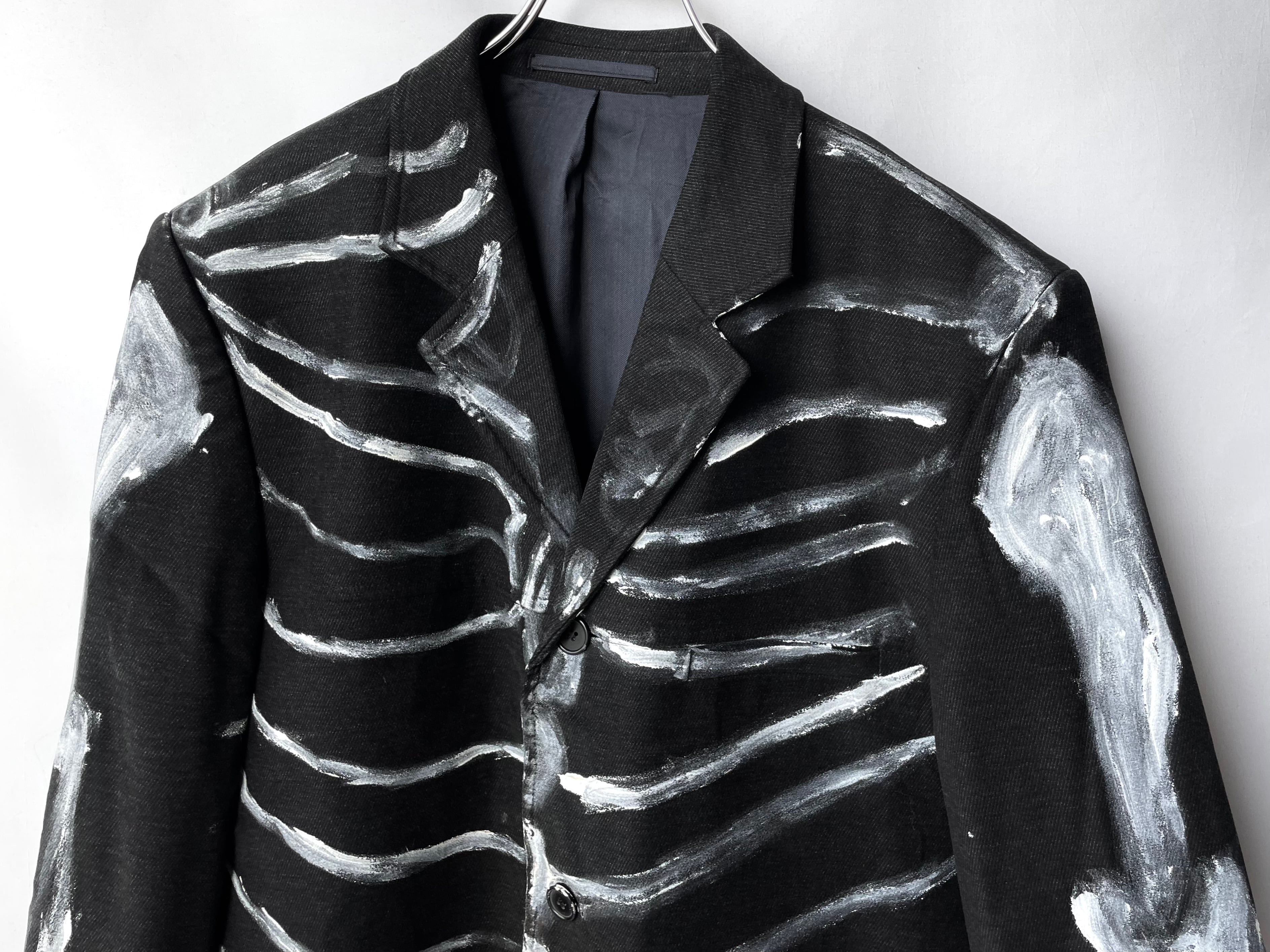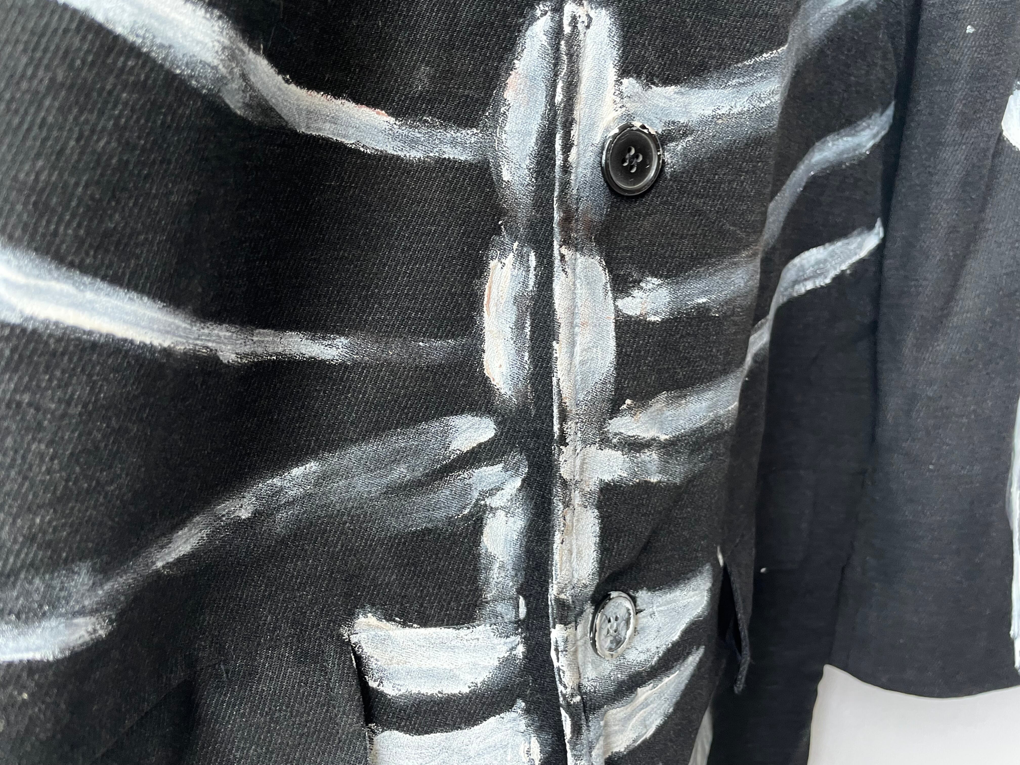 white skeleton hand-paint with a rough touch on oversized tailored jacket