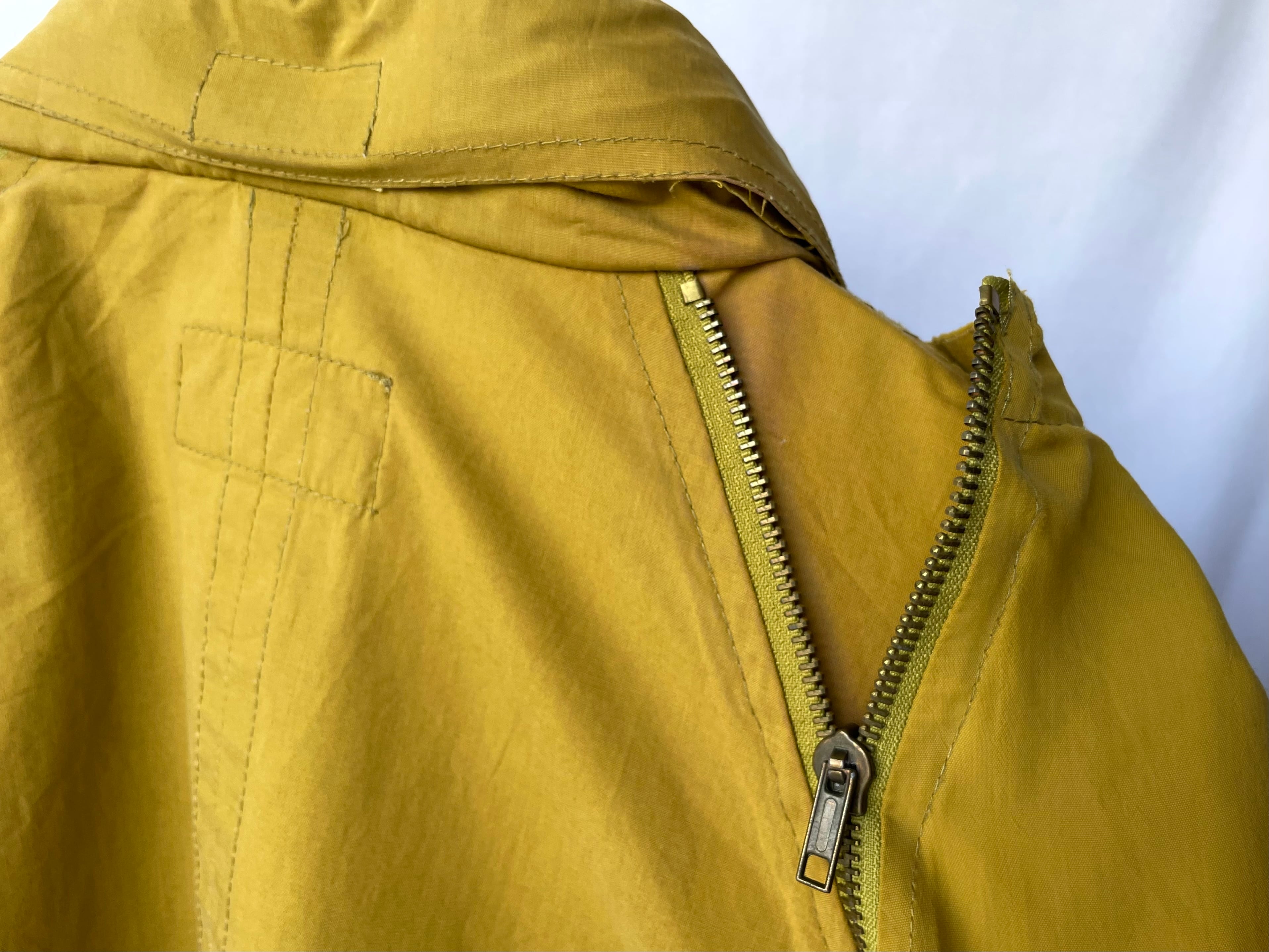 身頃/袖で僅かにトーン違いの、ライトなマスタードイエローカラー。