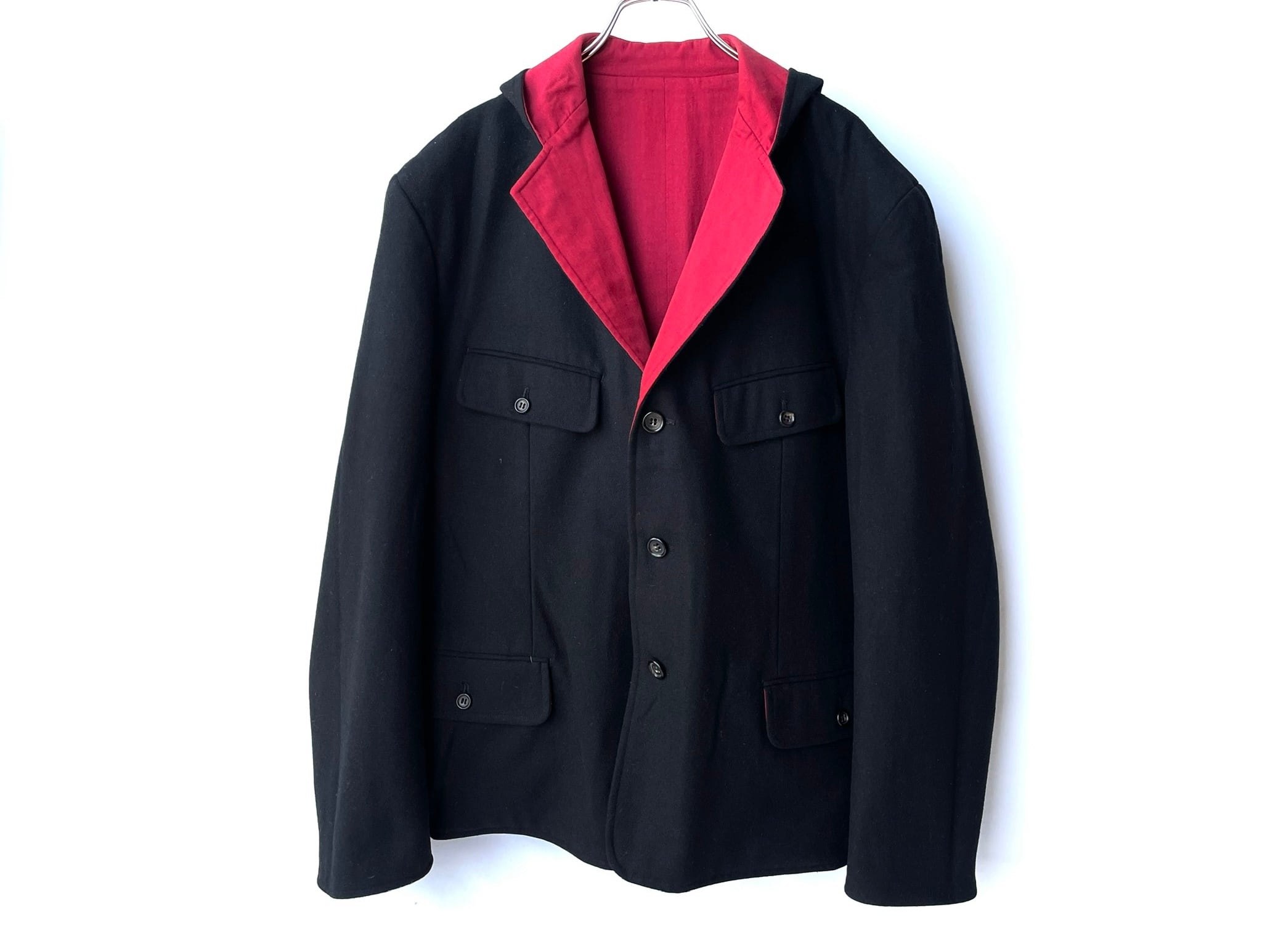 深い赤のコットンツイル×ブラックカラーのウールベース生地のリバーシブル仕様。