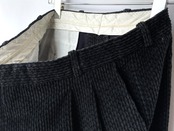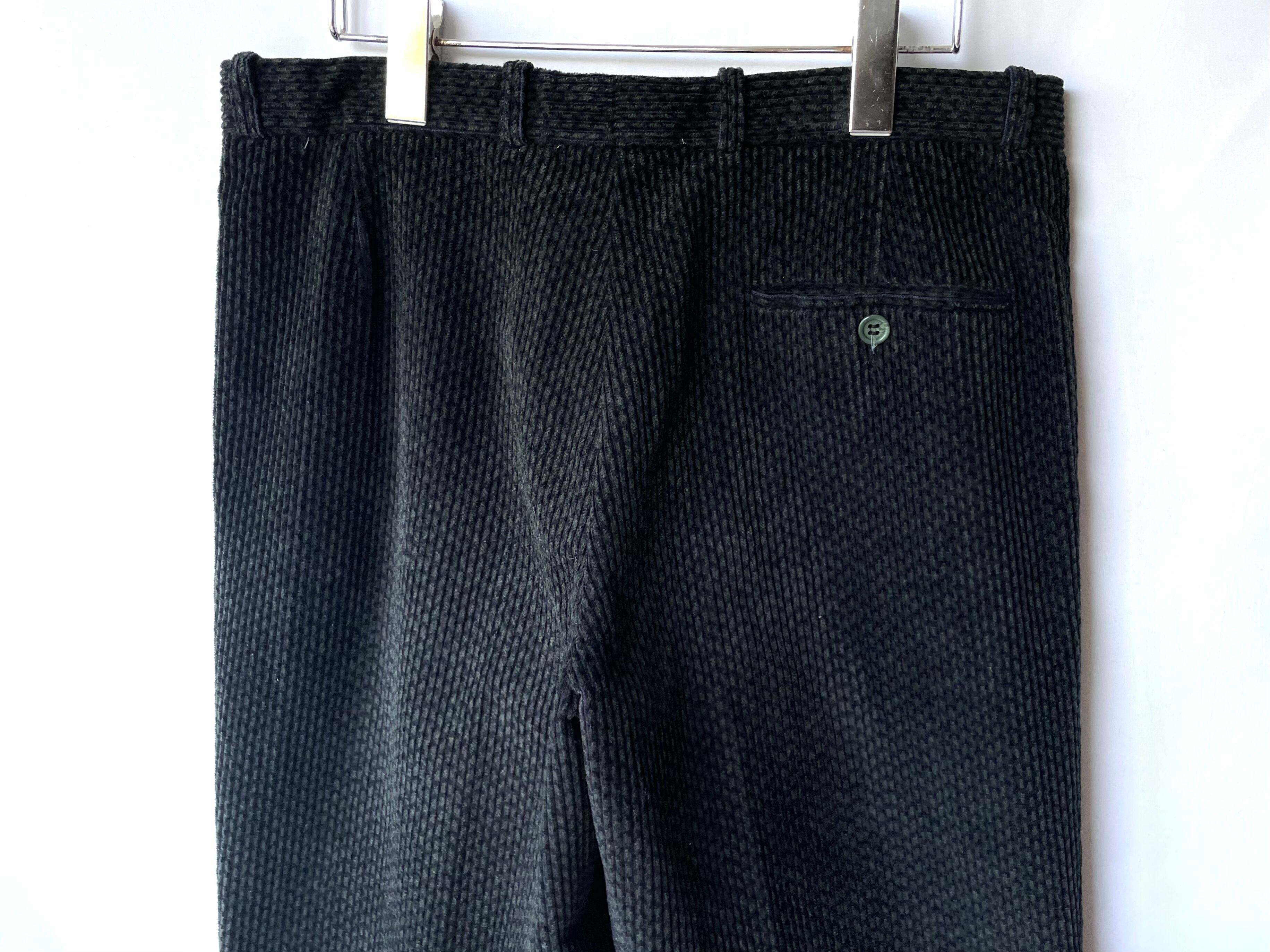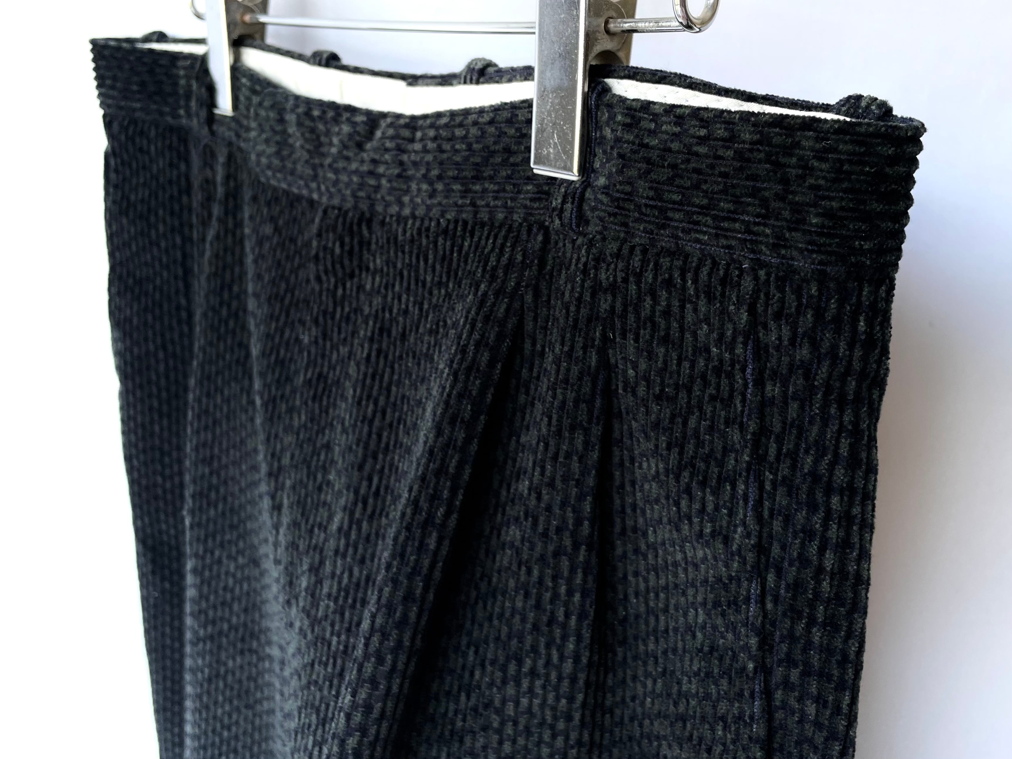 Made of irregular, thick-ribbed corduroy with a dull sheen and grainy texture.
