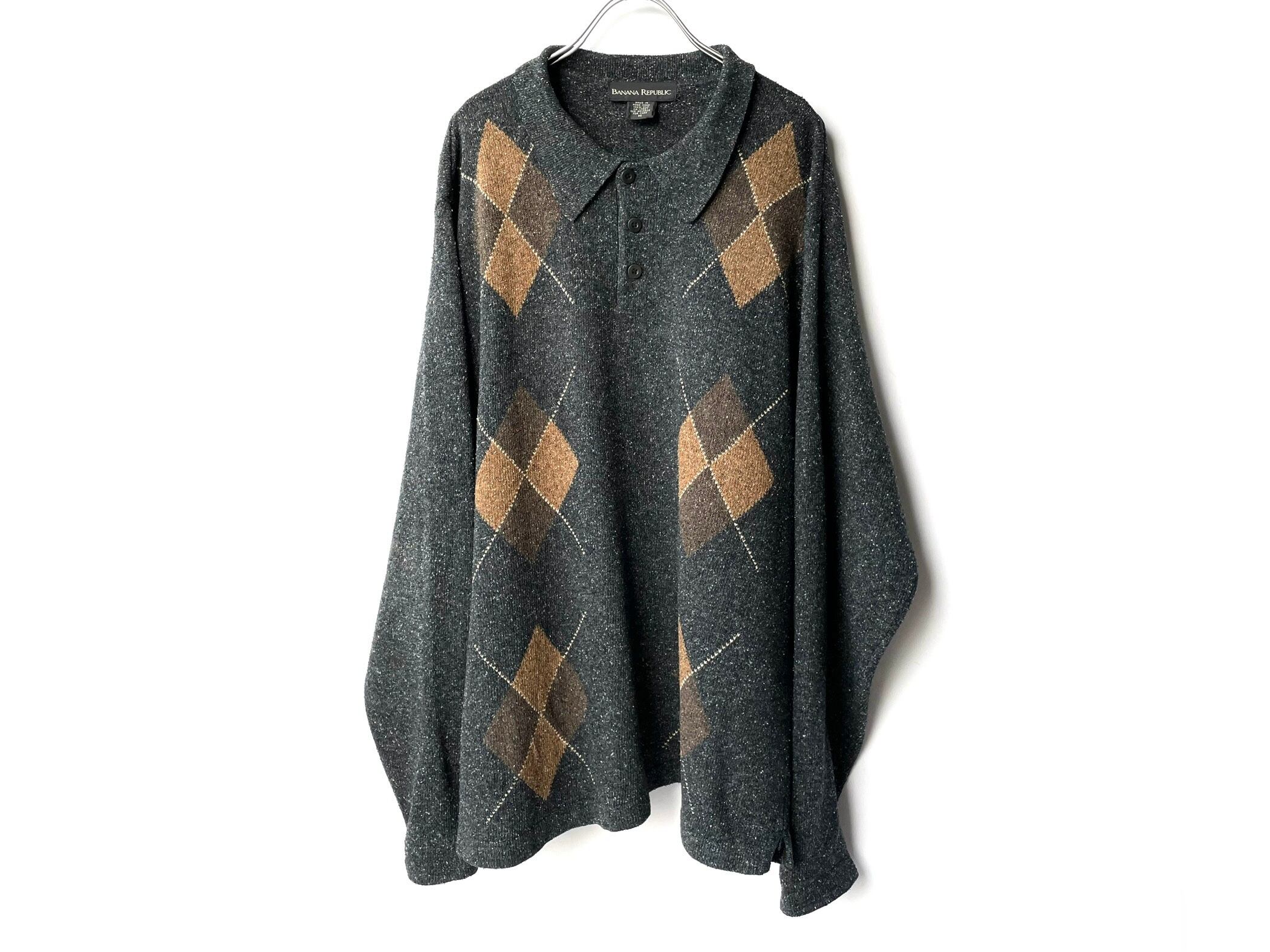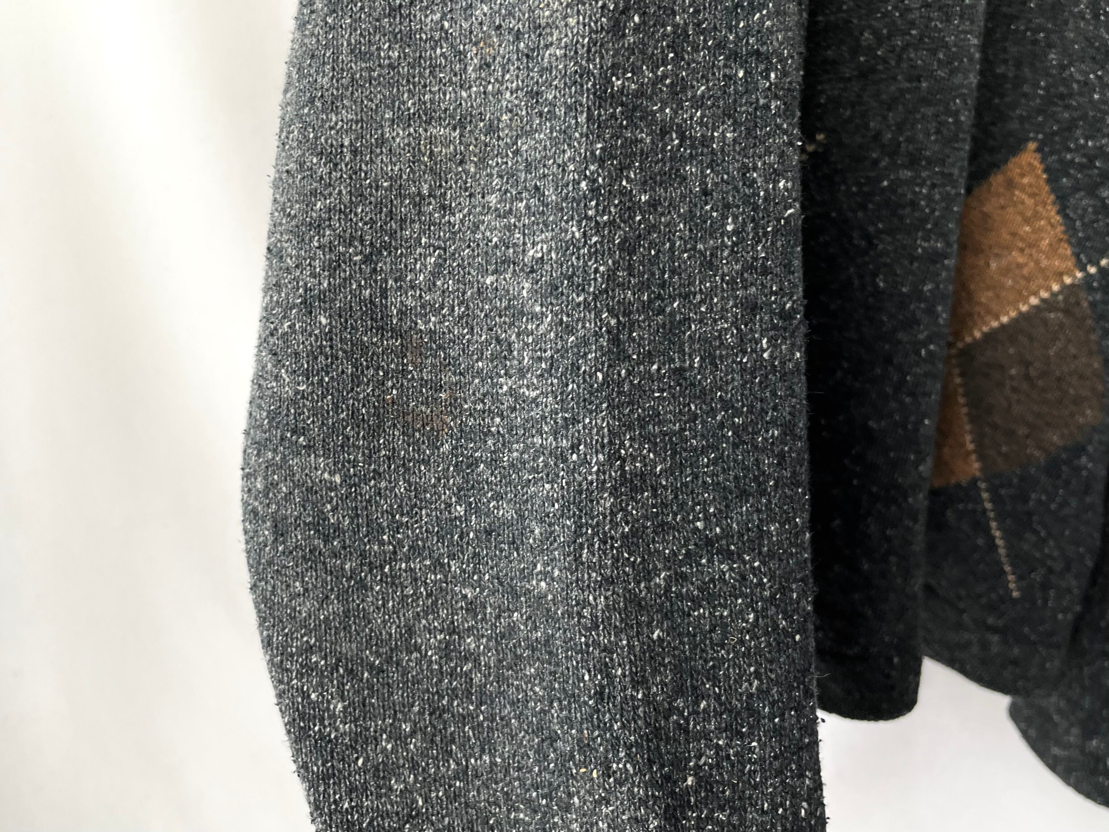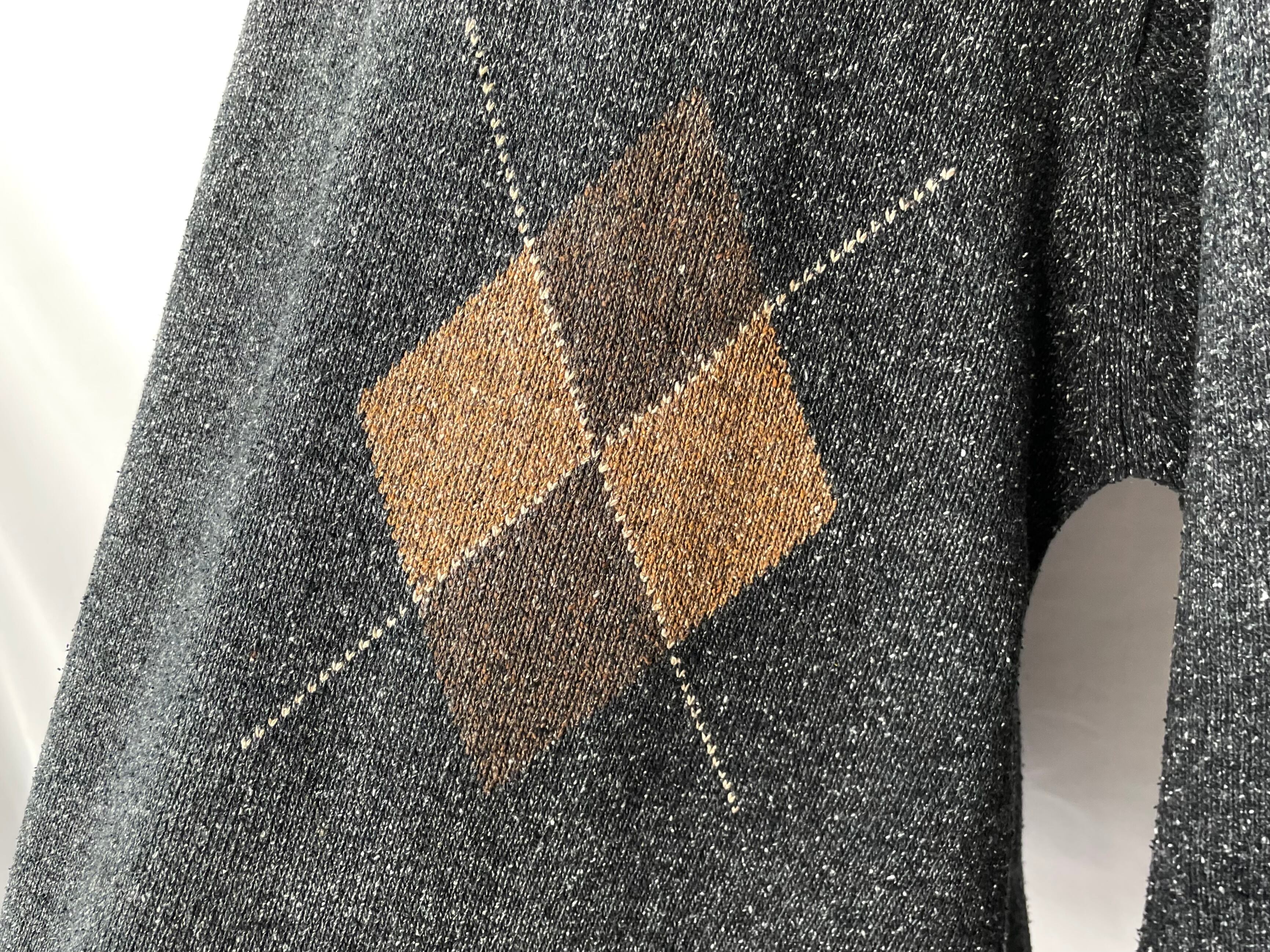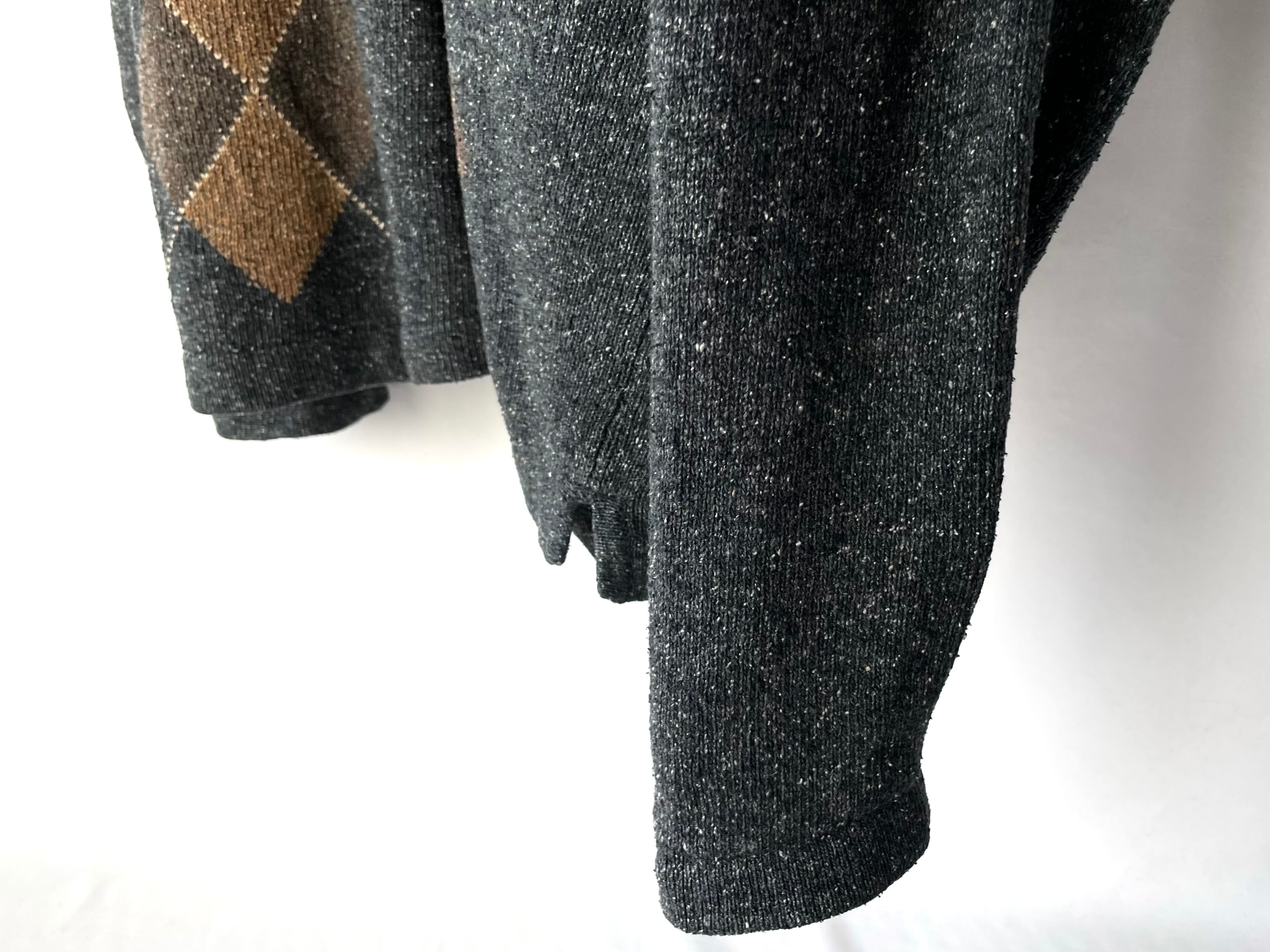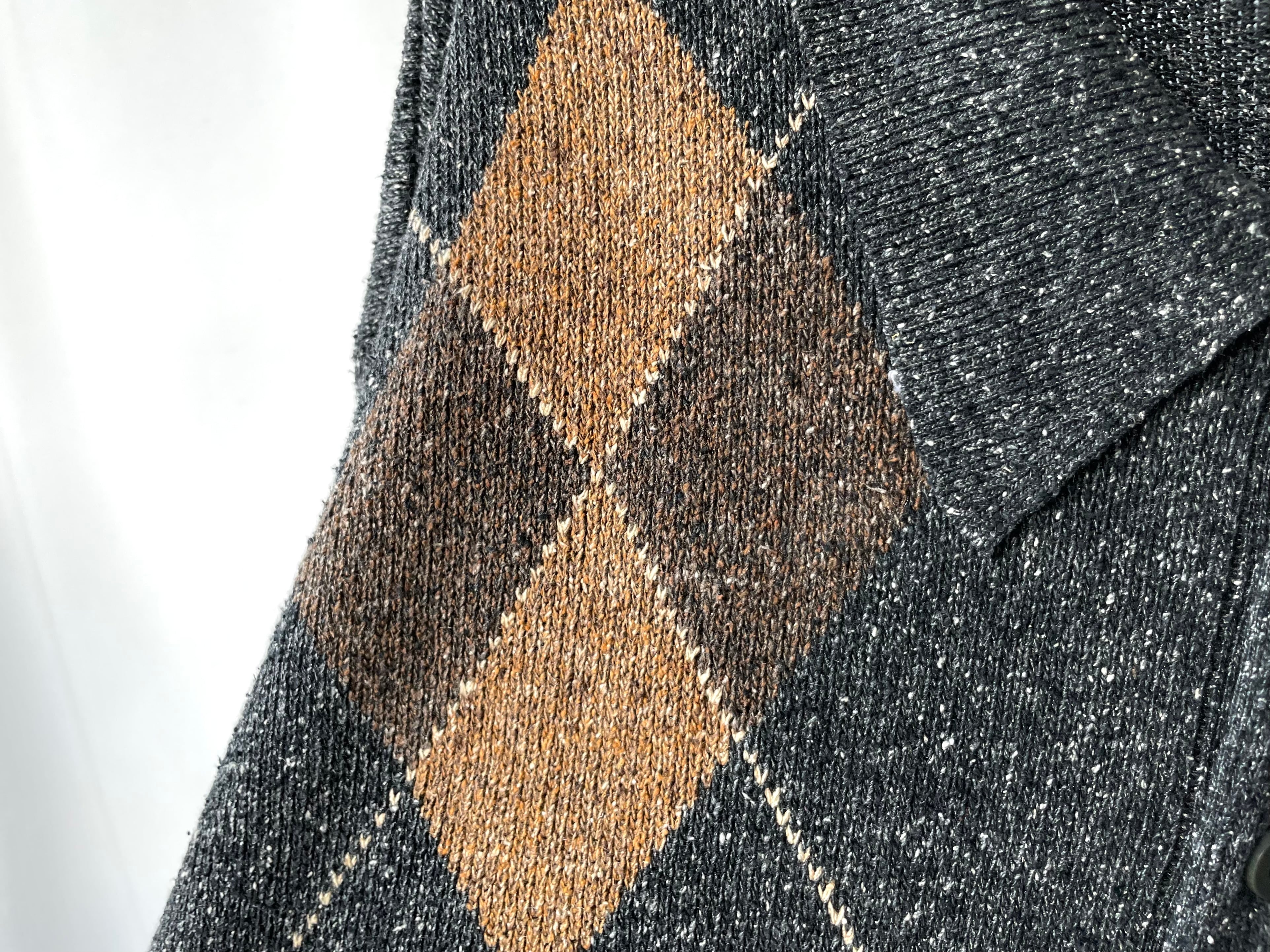 白糸が混じるグレーボディに濃淡ブラウンの大判なアーガイル柄。