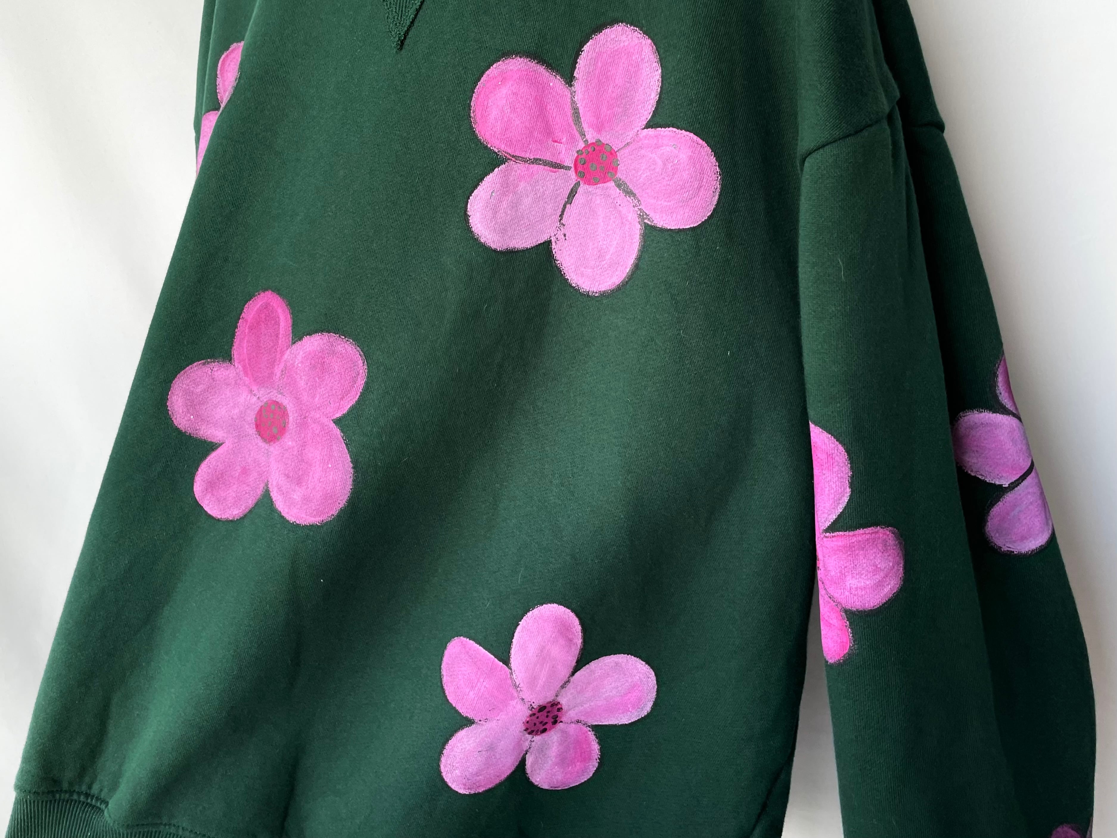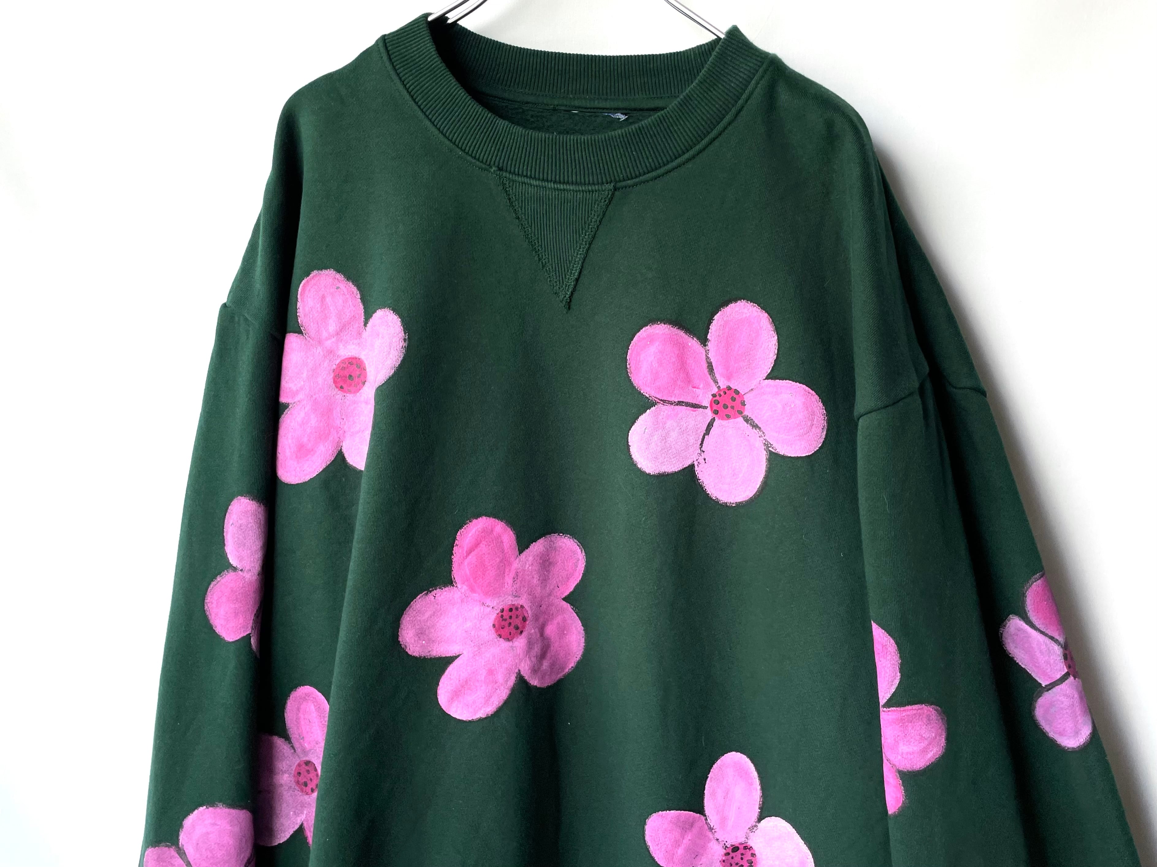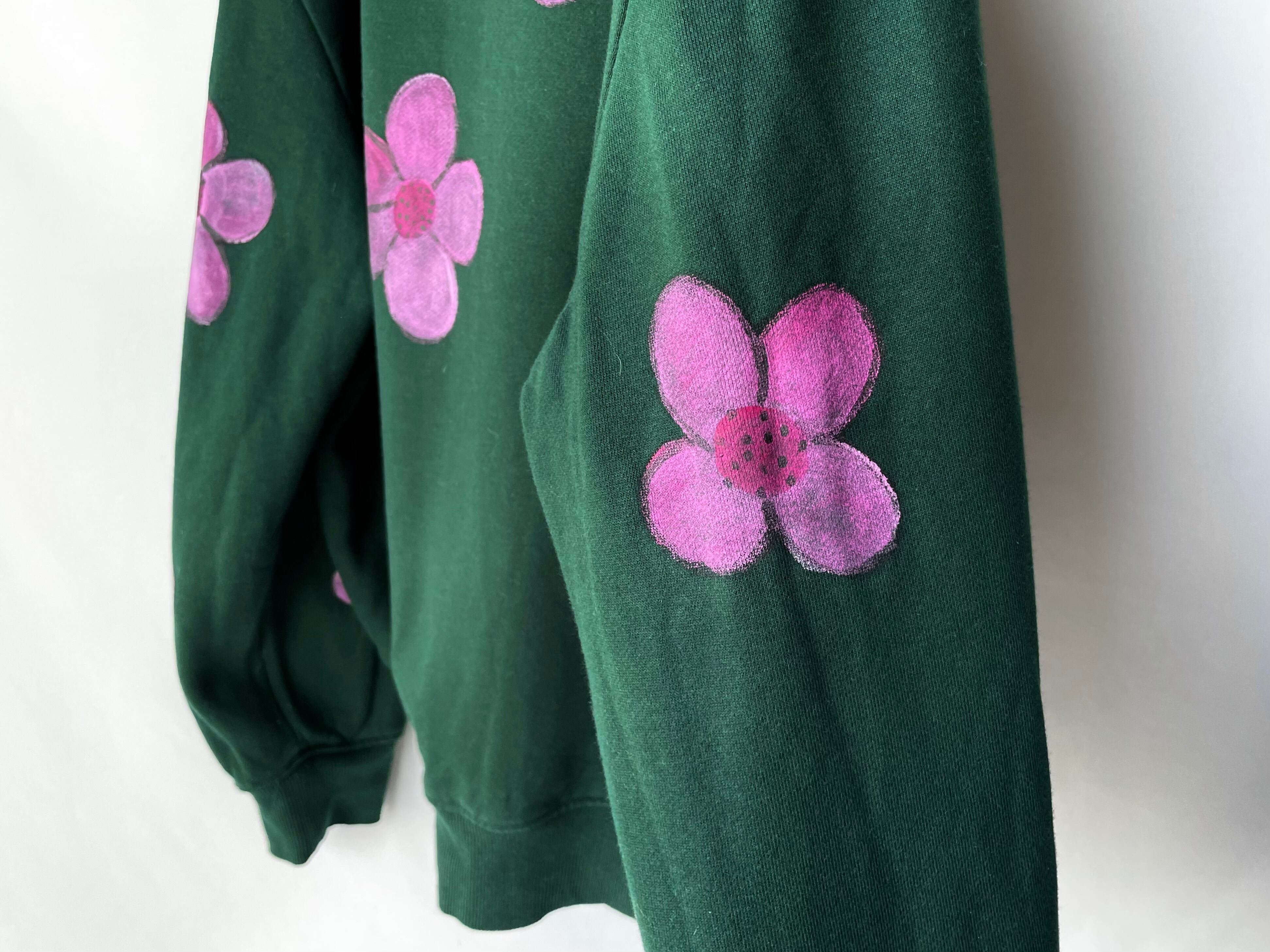 発色の良いピンクの染料で大判な花柄を描いた当時のアートペイント。