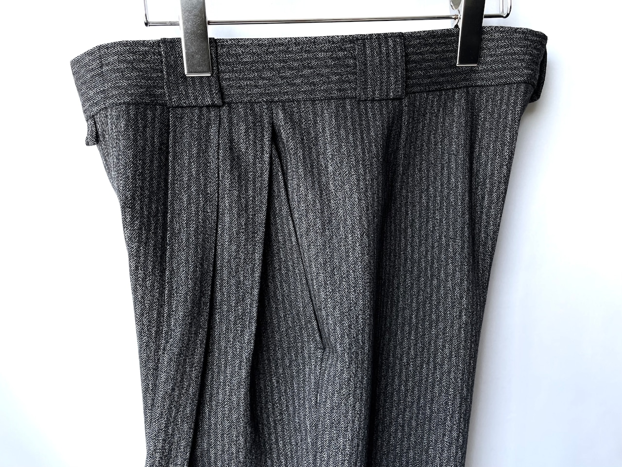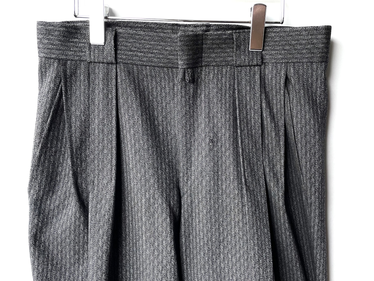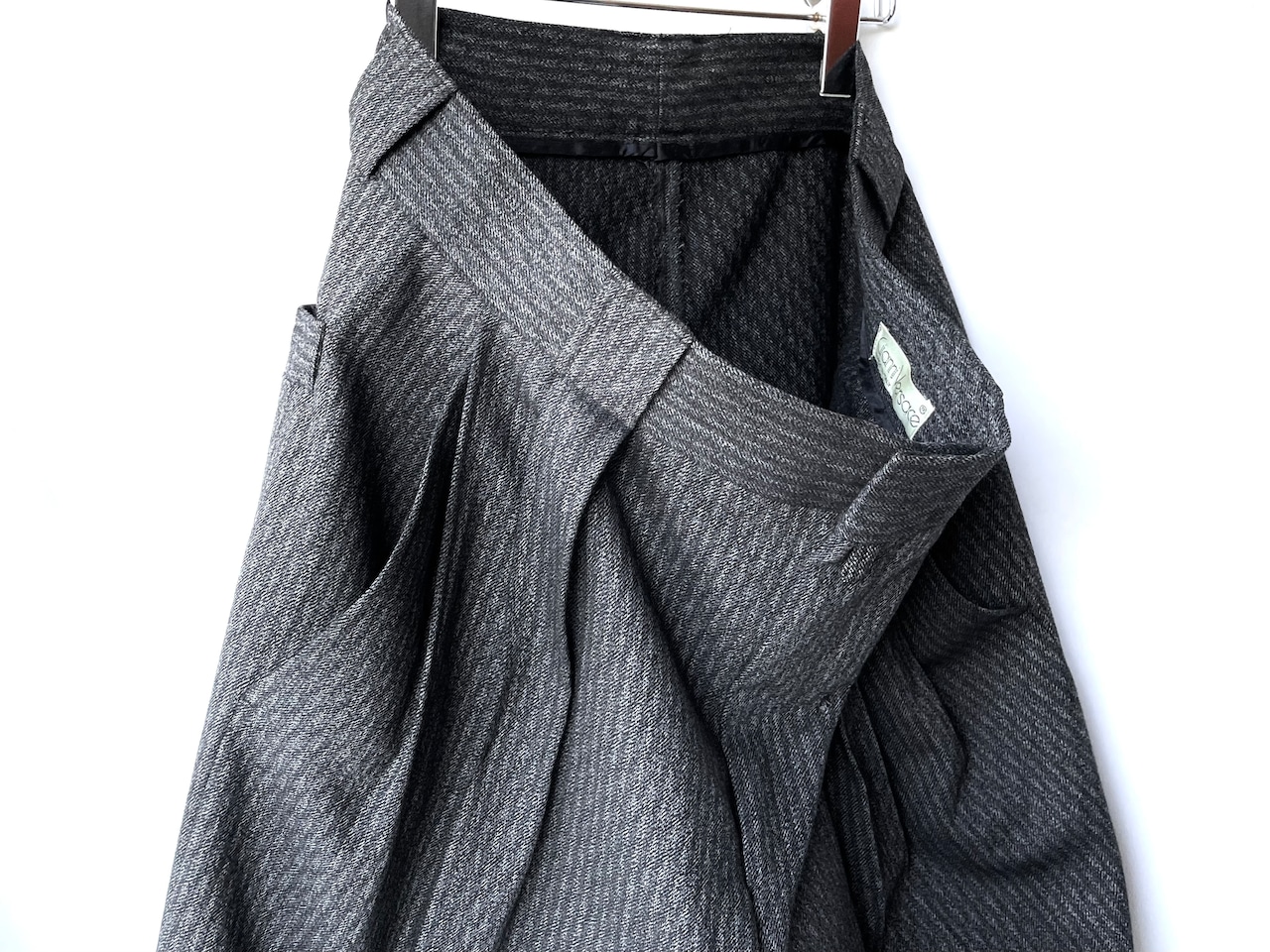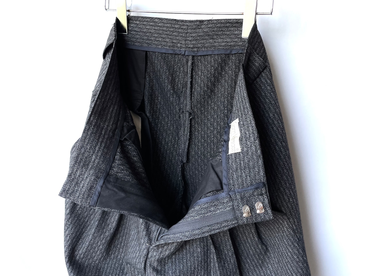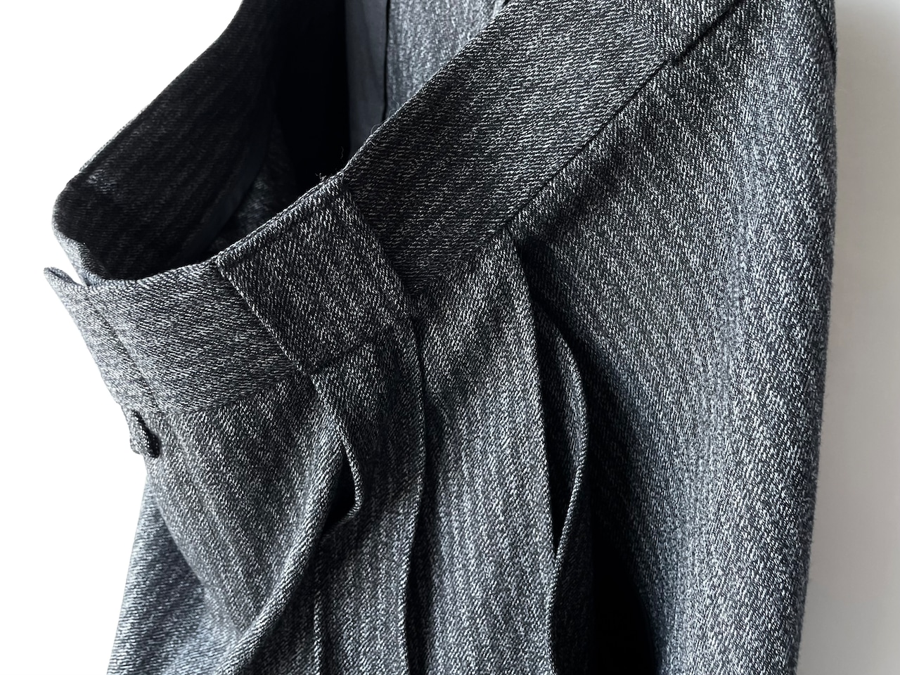 ボトムスは広い渡りから緩やかなテーパードがかかるワイドシルエット。