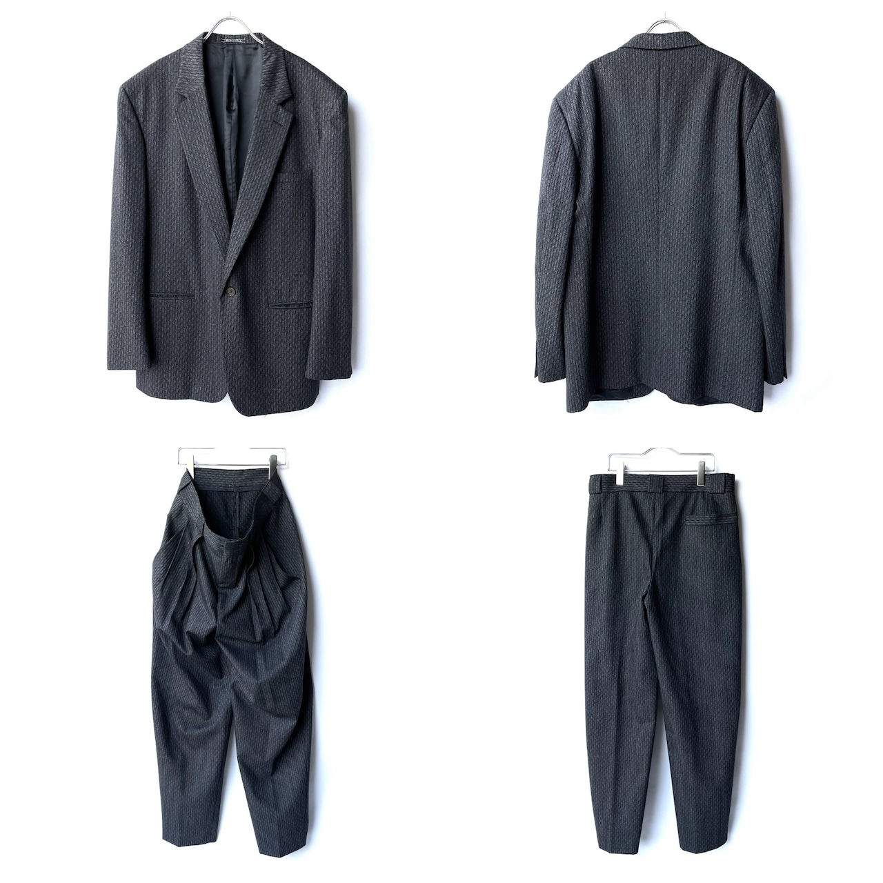 このブランドらしい上質な生地、パターンから構成されたセットアップスーツ。