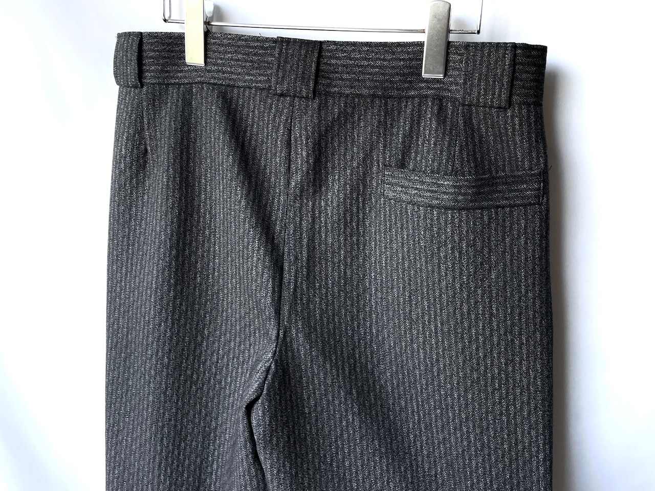 腰脇のサイドシームが排除され、ウエストポケット縁へ続く細かな違いも着用時の見え方は全くの別物です。