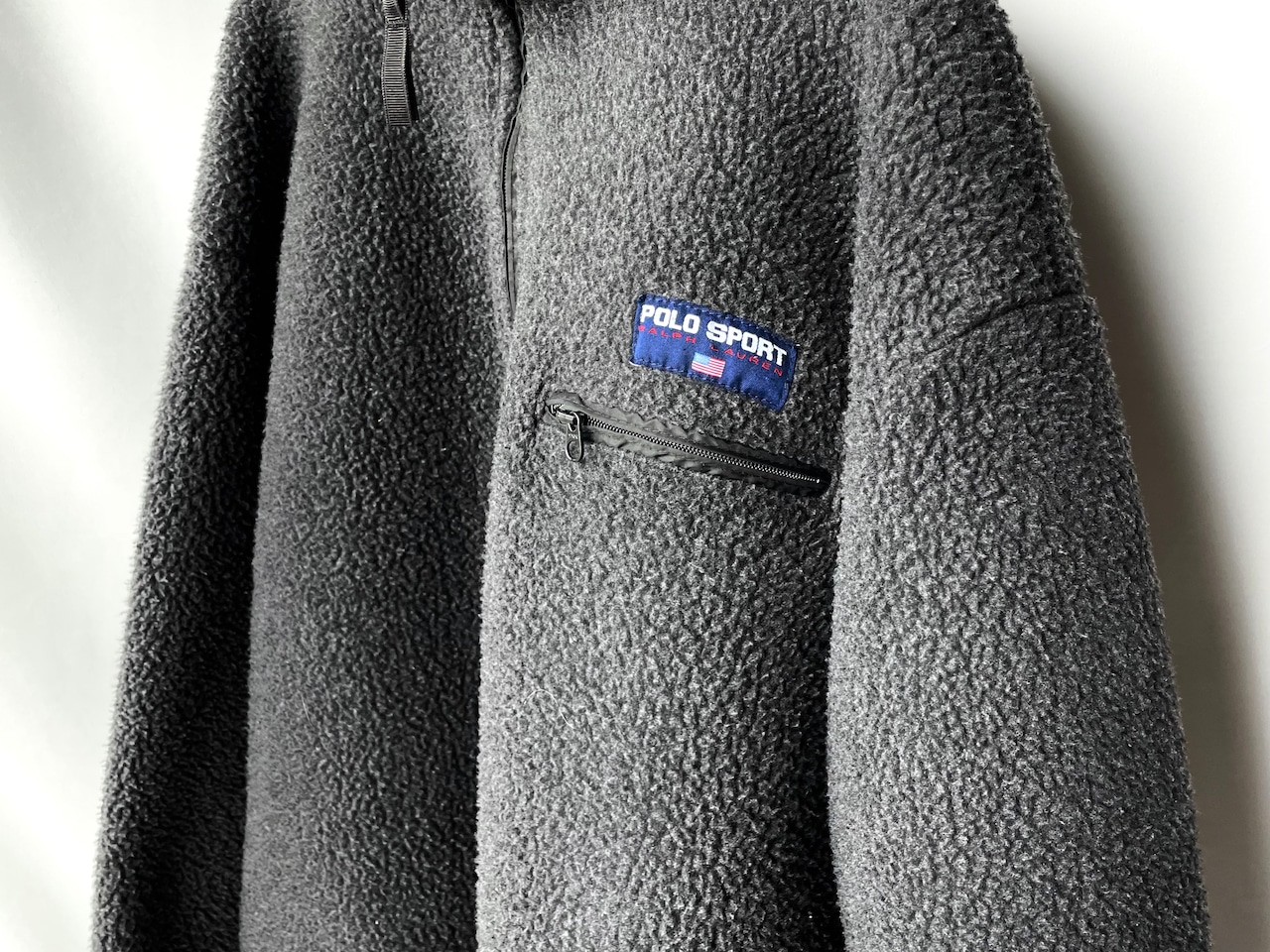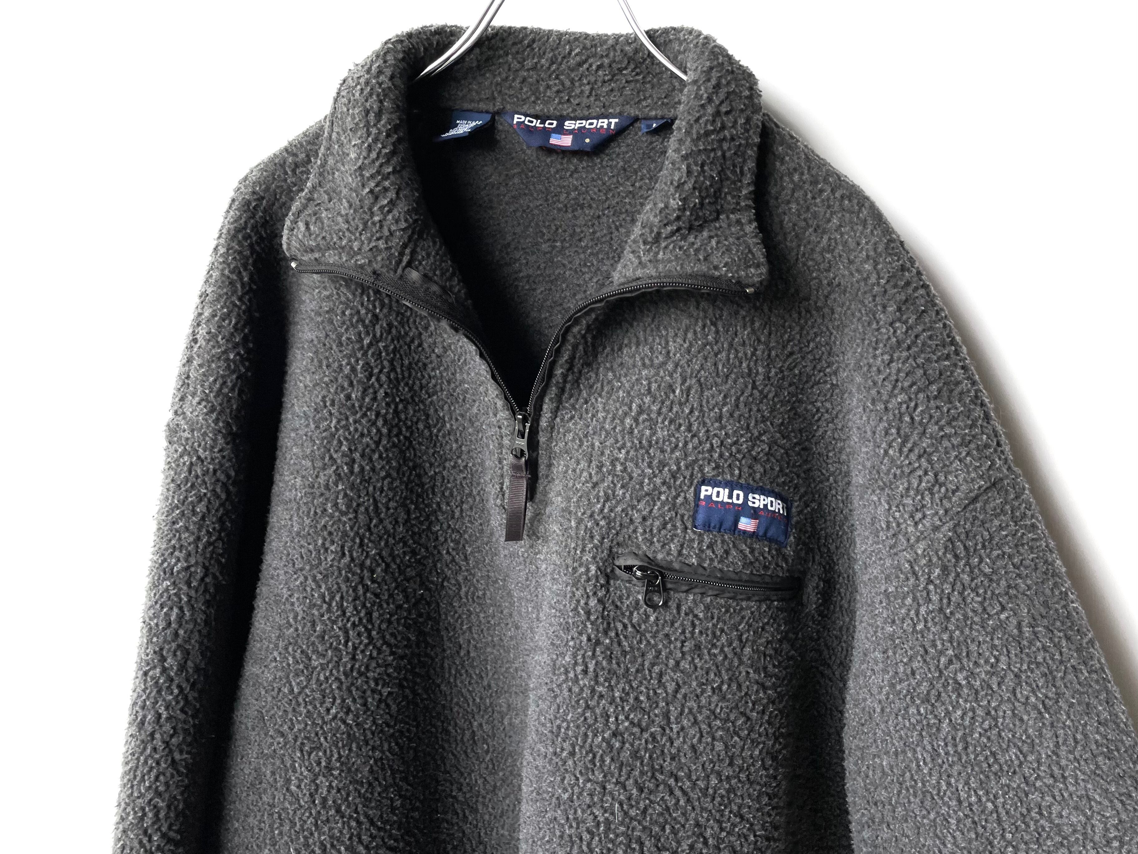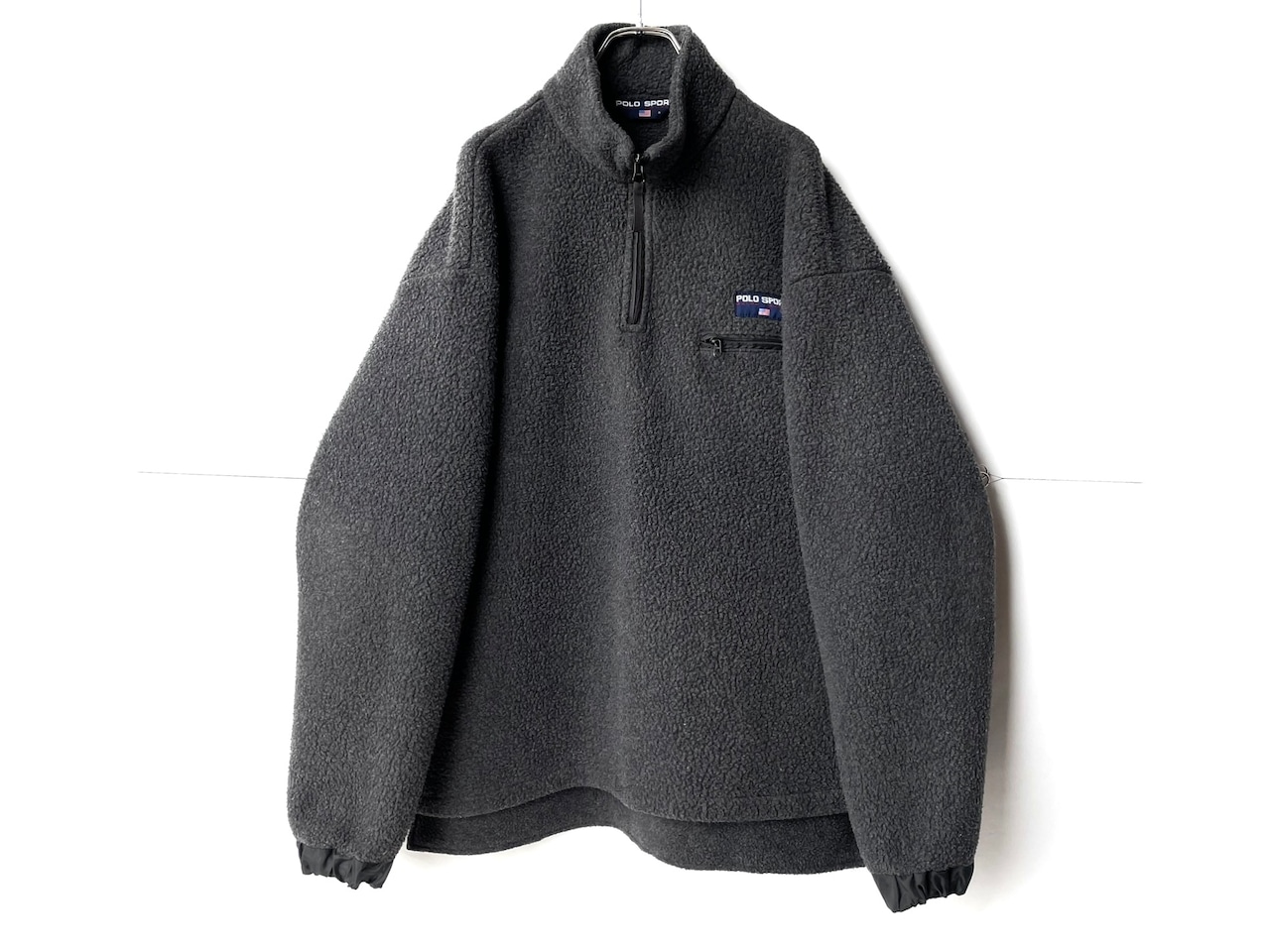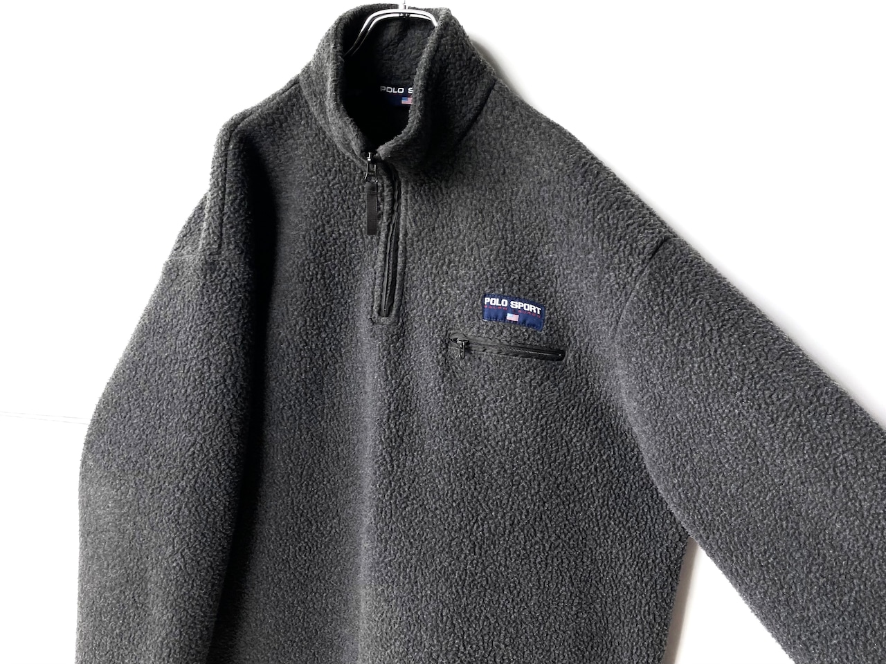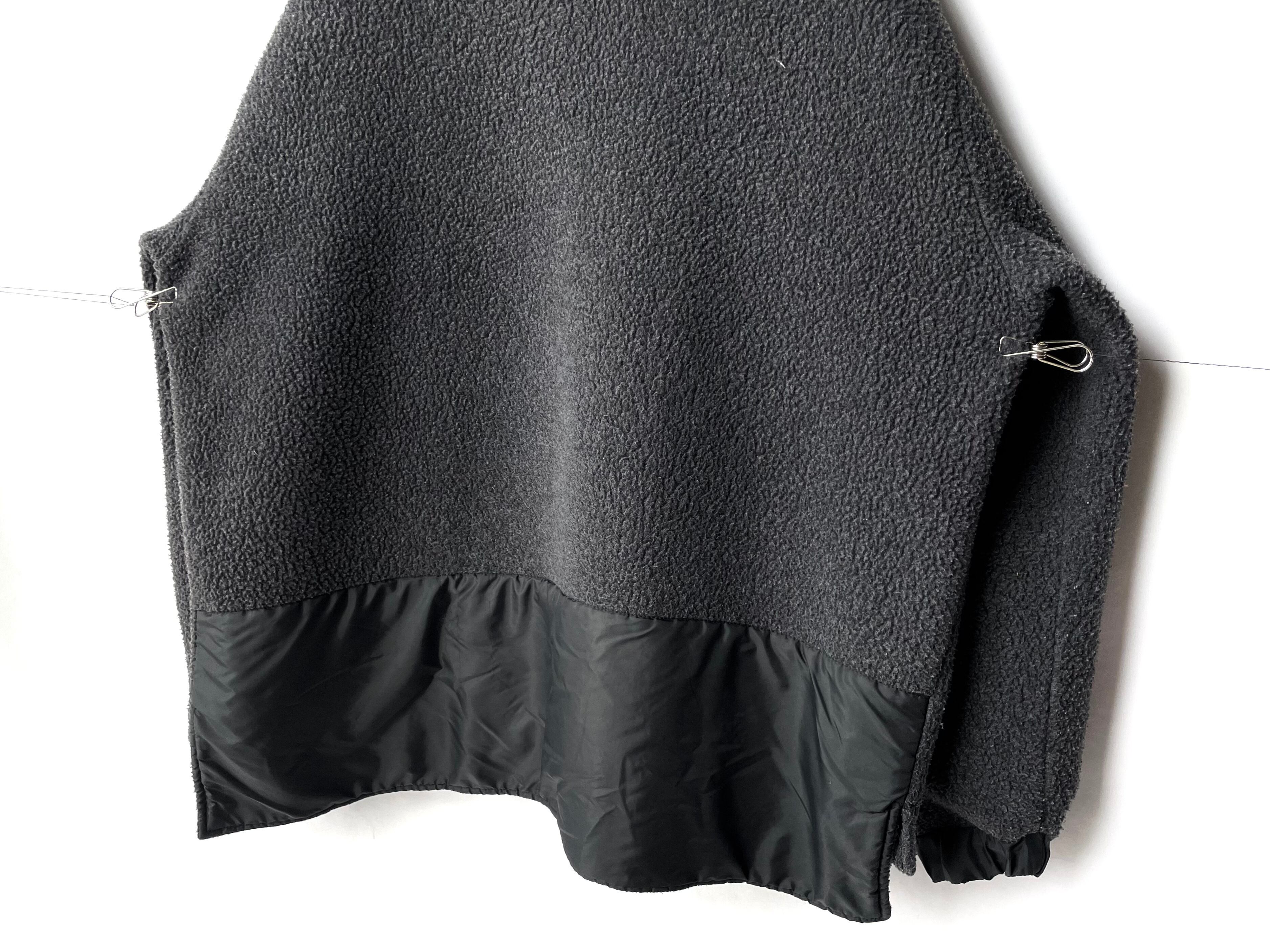 ハーフジップのハイネックに、前後差のあるボックスカットヘム。