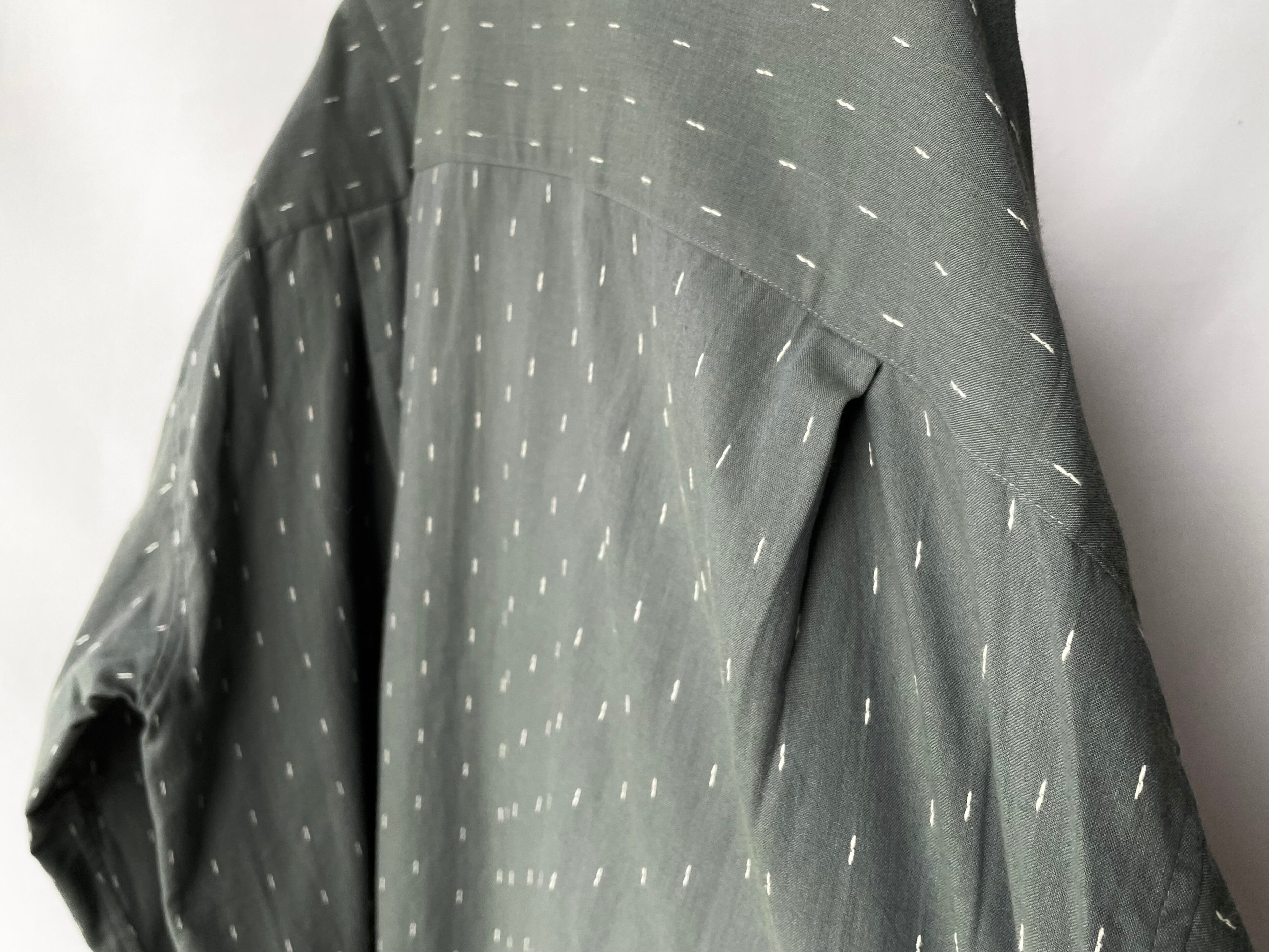 刺し子の様な伝統的な手仕事を思わせる、表情豊かなファブリックデザイン。