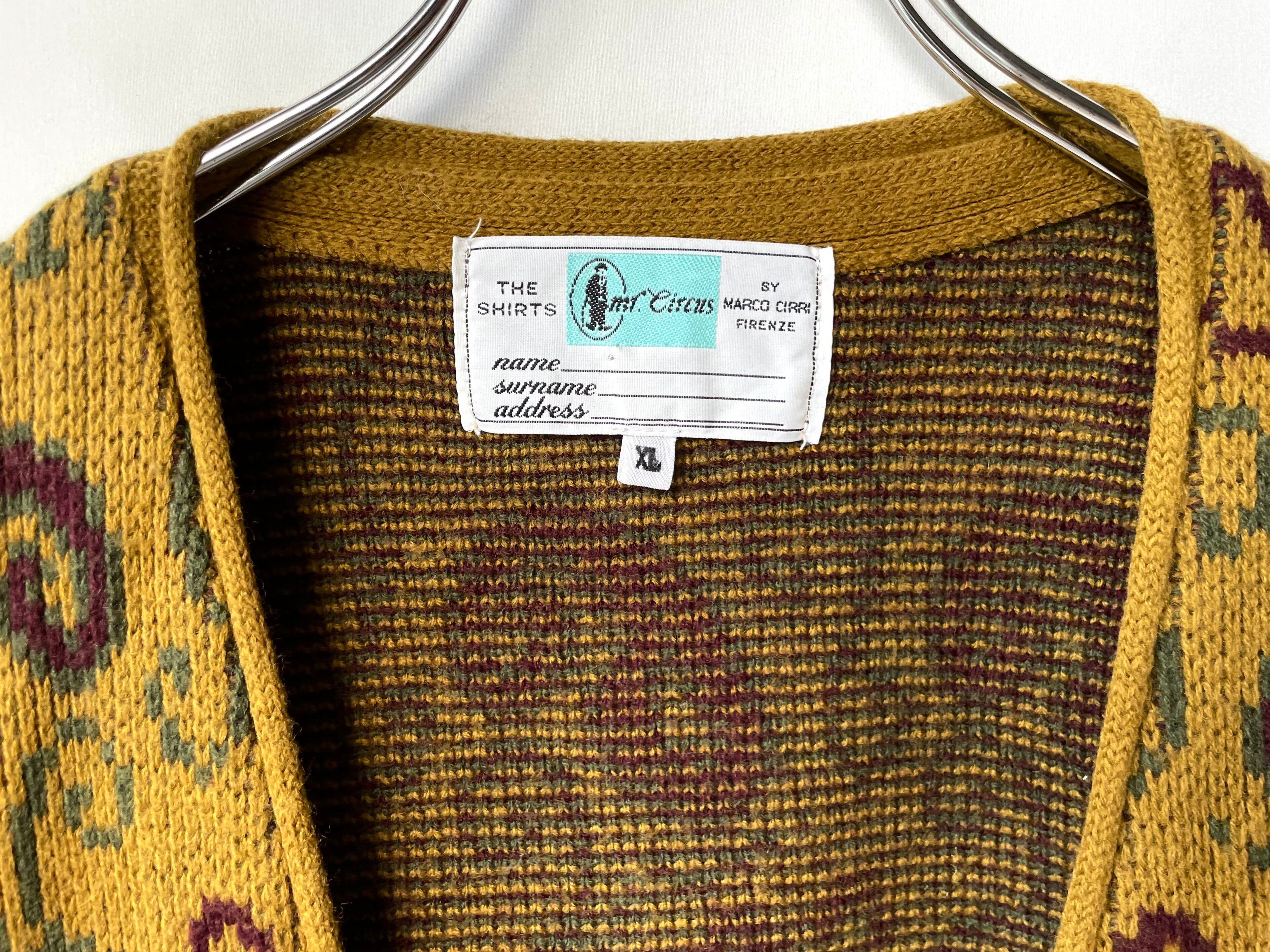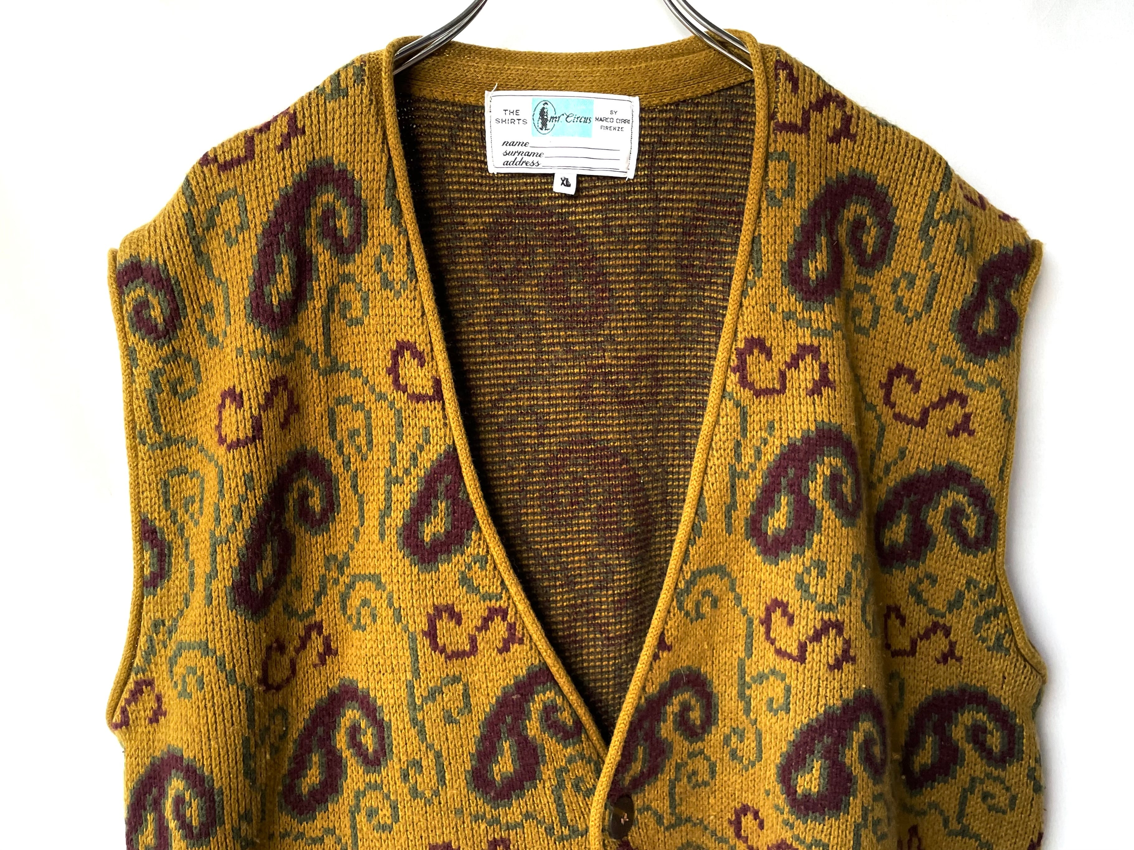 XL表記のゆったりサイズ、ボタンオープン式の総柄ニットベスト。