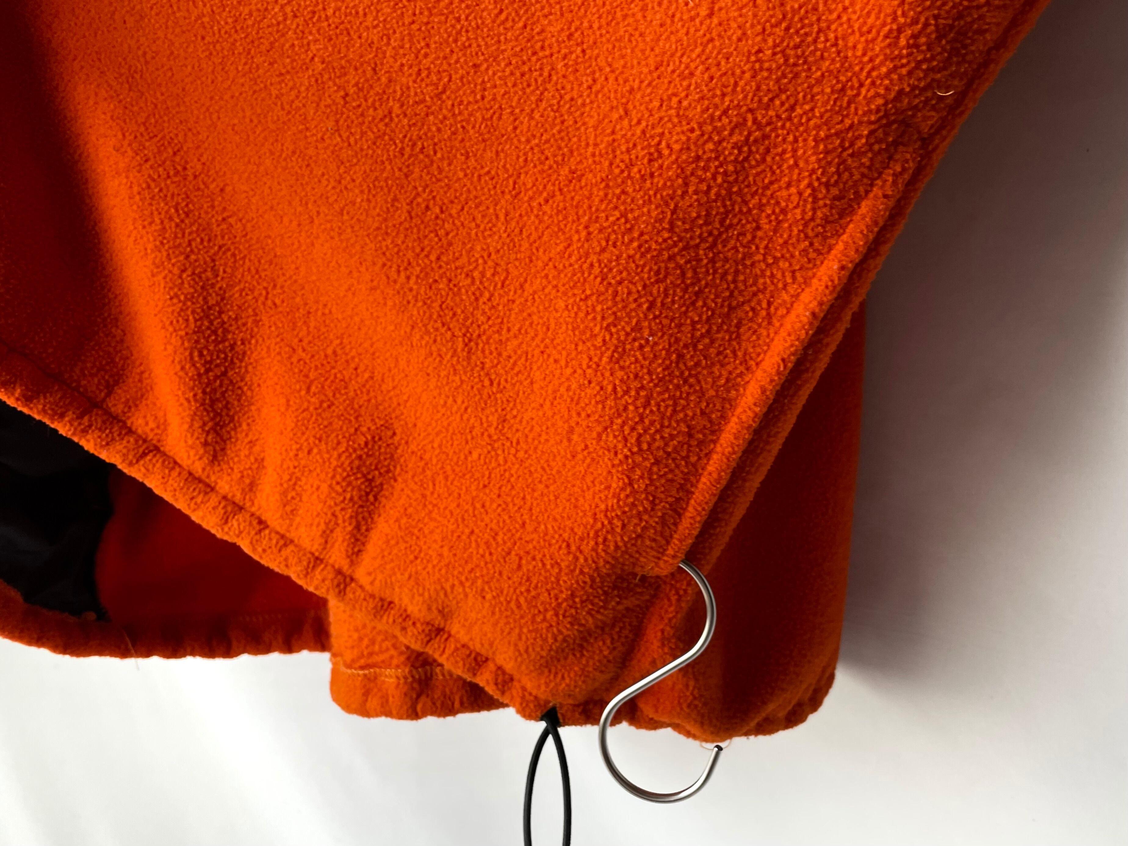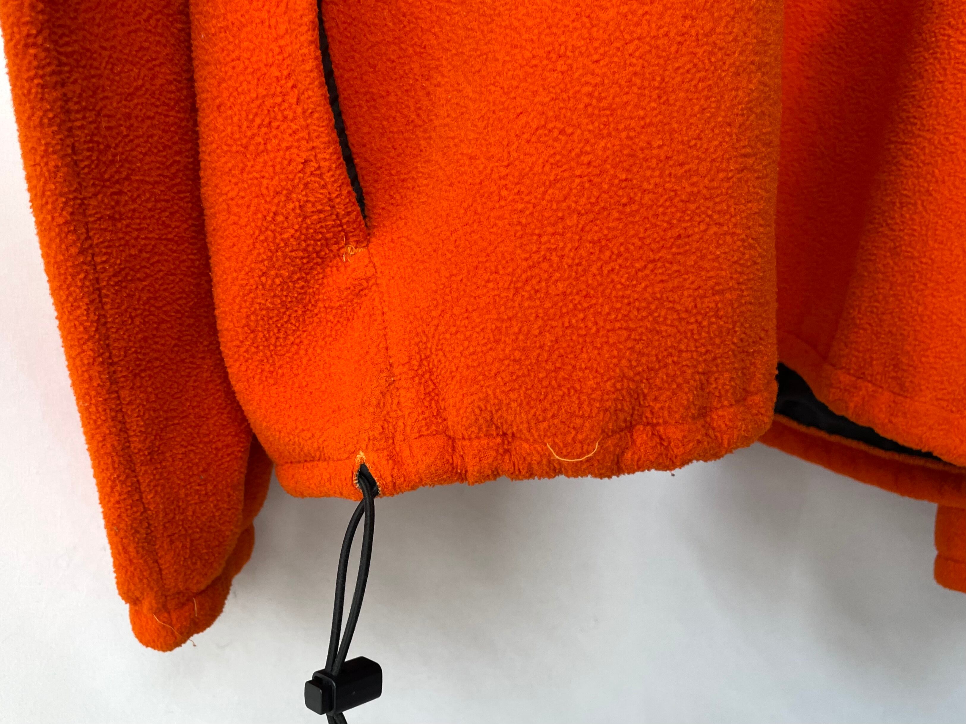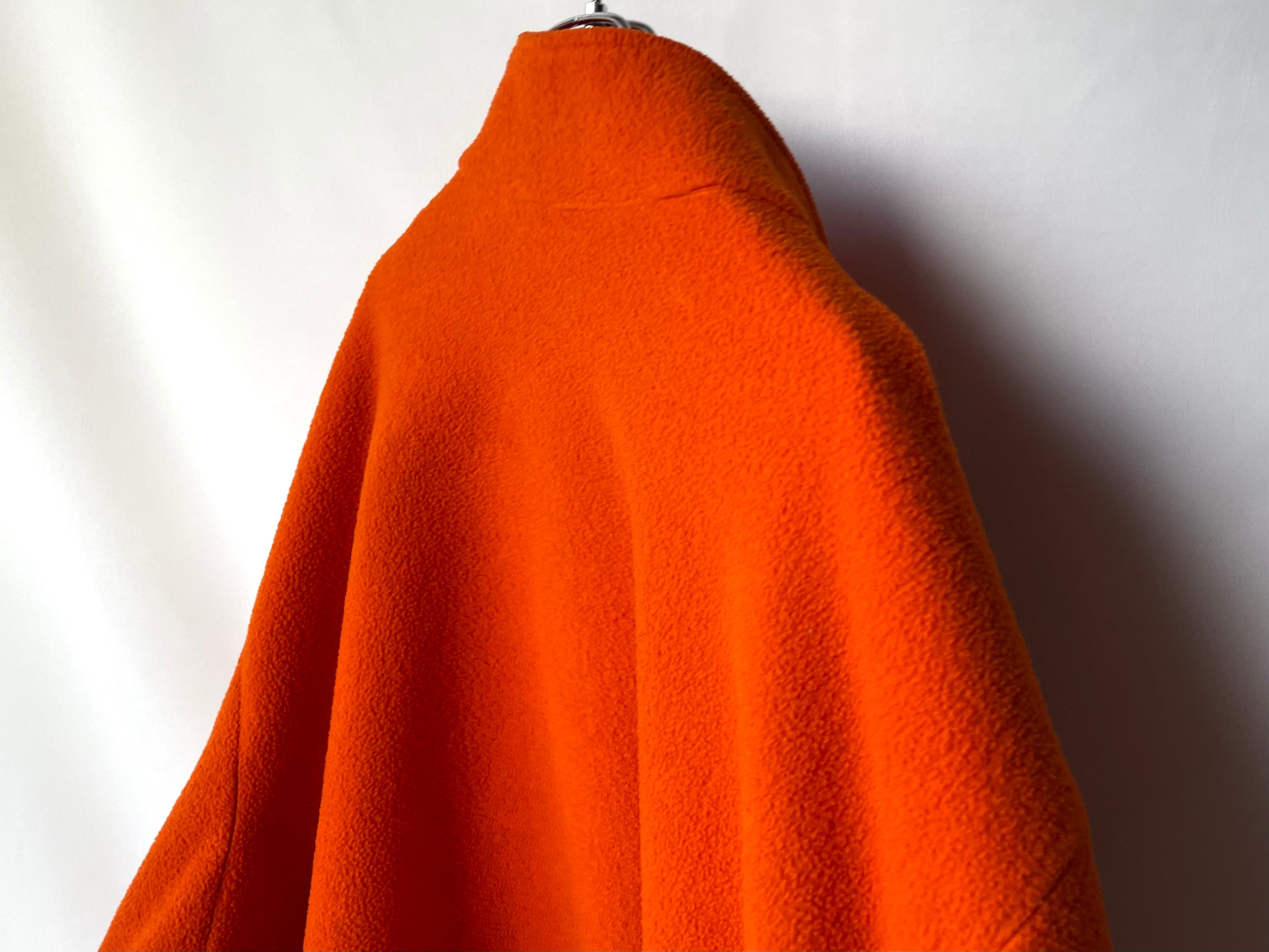 襟高のあるハーフジップ、表記XXLの縦横が逆転したビッグシルエット。