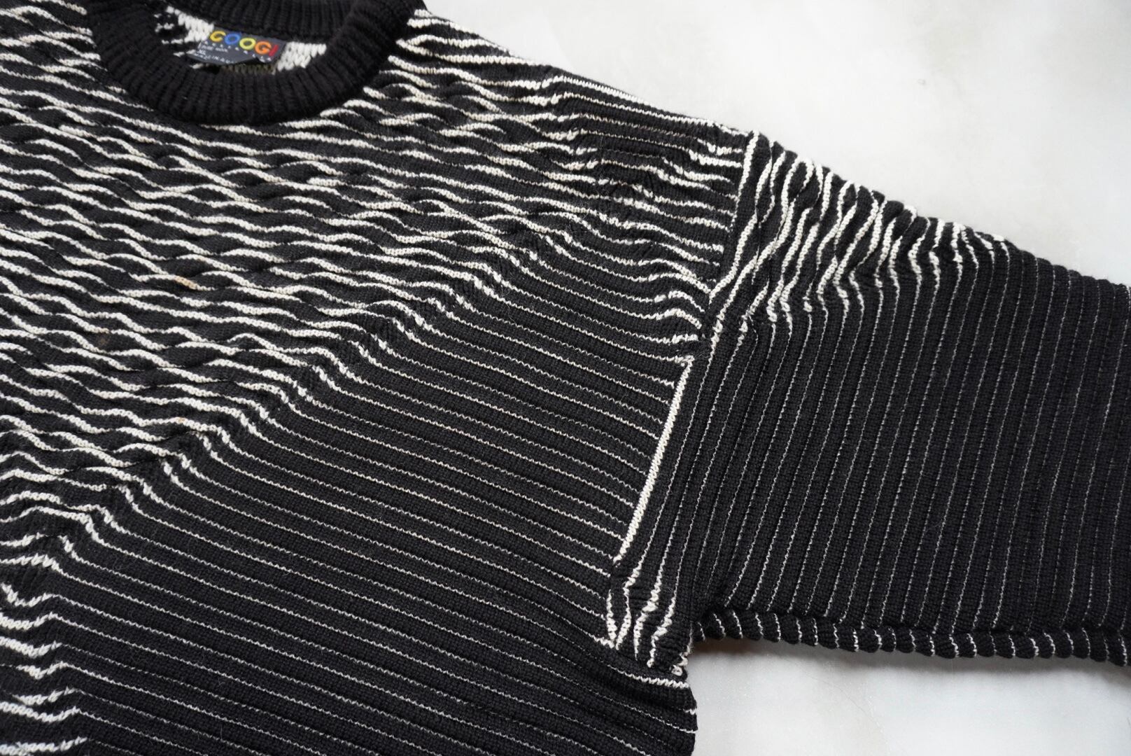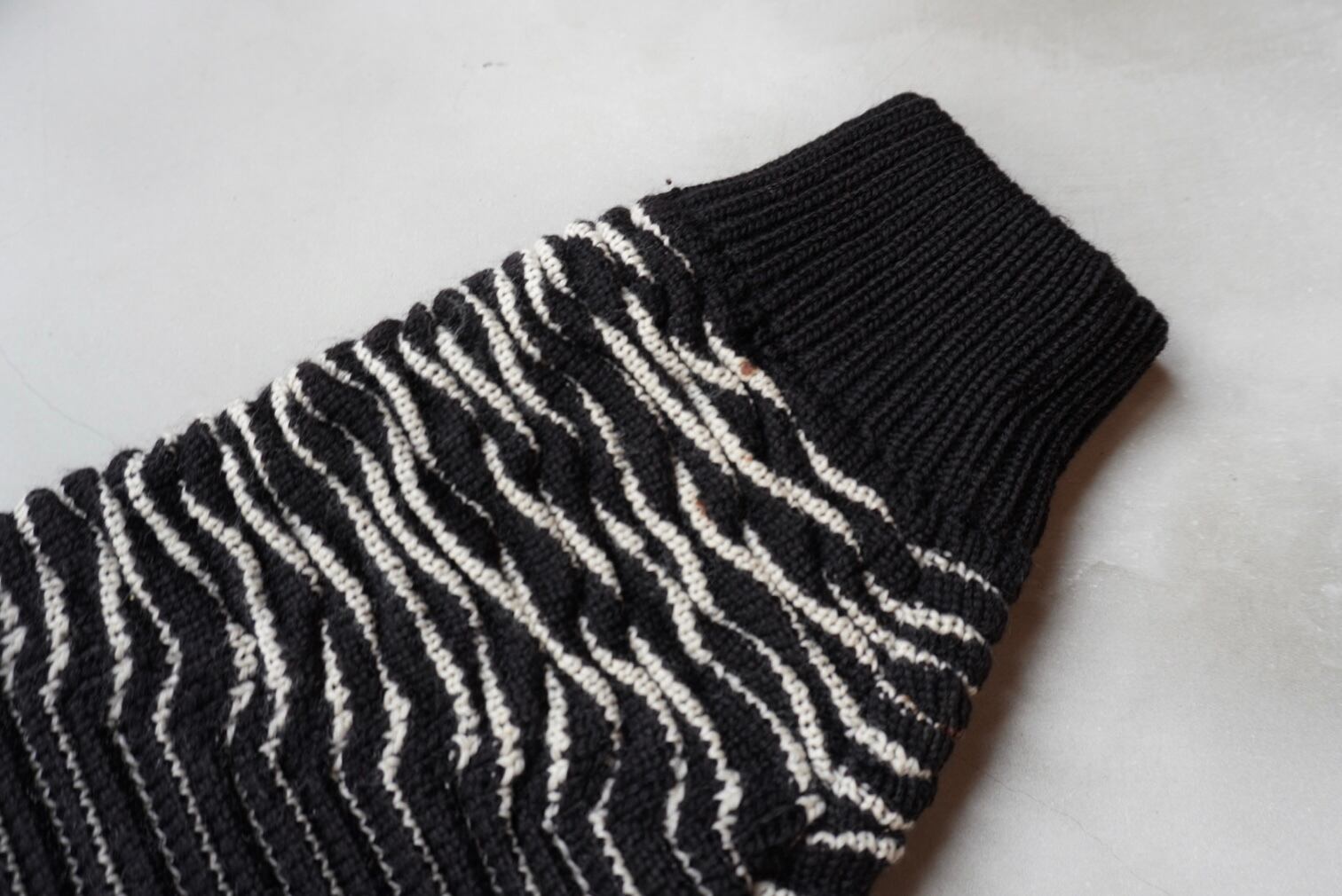 迫力のある黒×白モノトーン、2種の編み柄による切り替えデザイン。