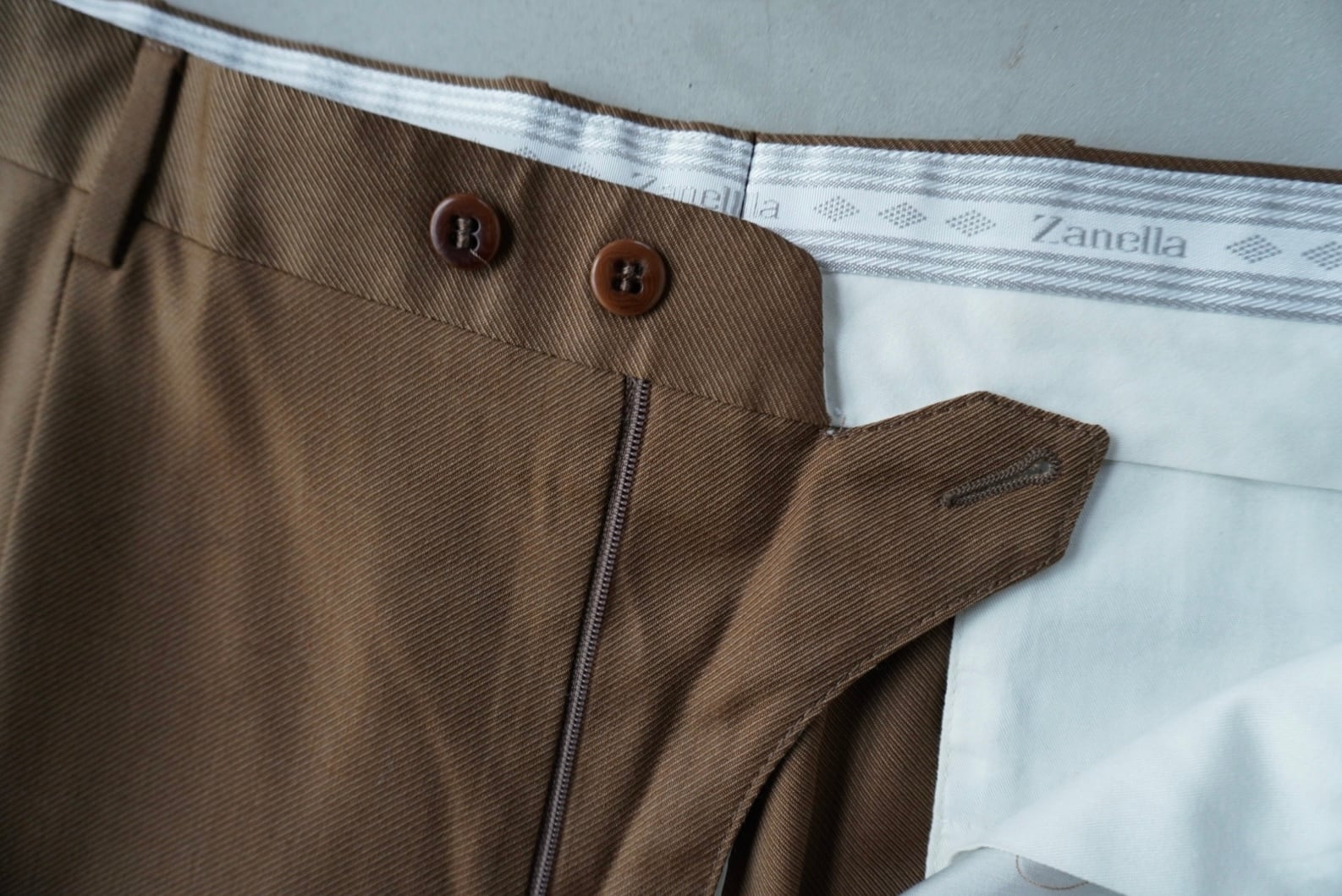 メンズのボトムスでありがちなキャメル/ベージュに近い茶ではなく、