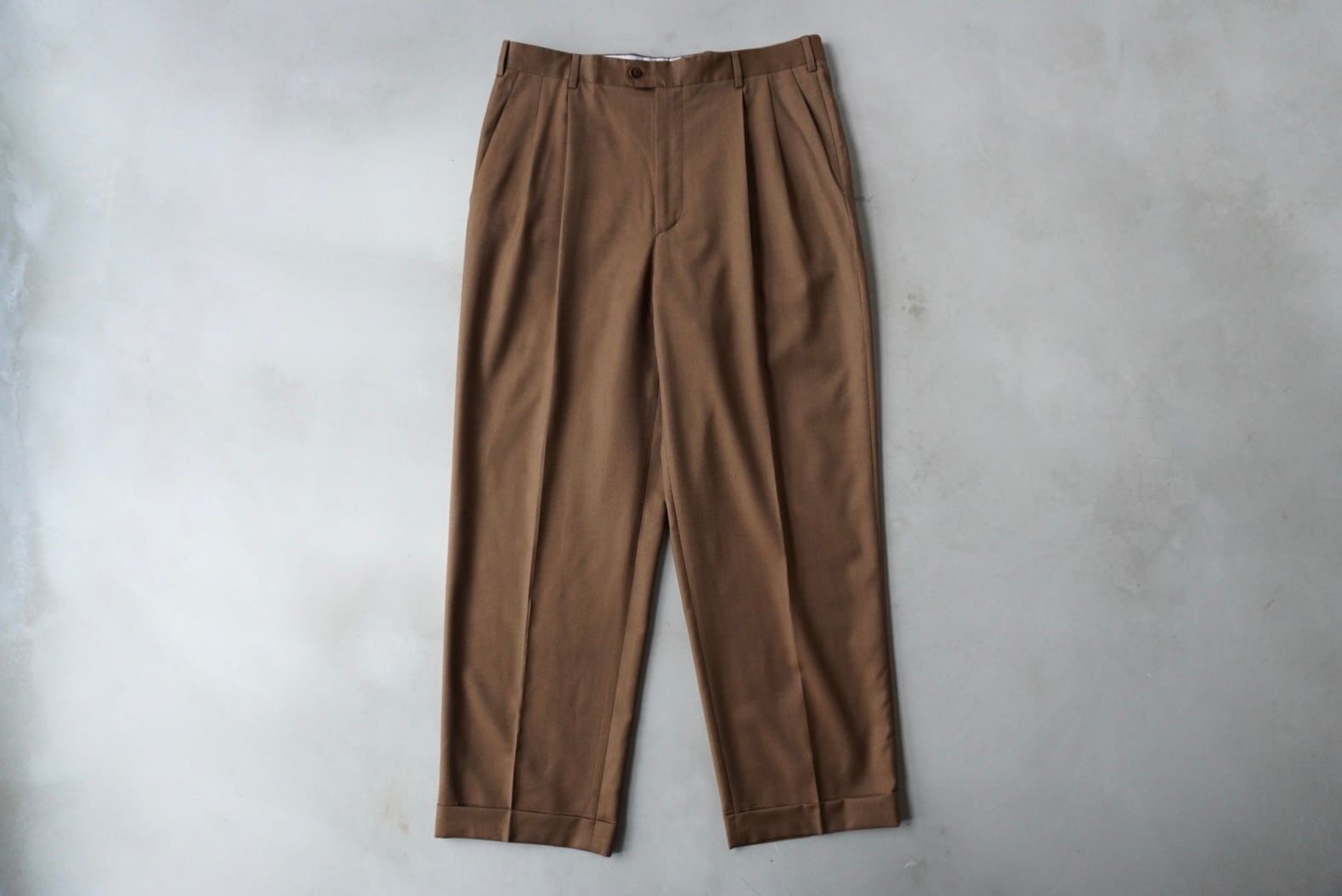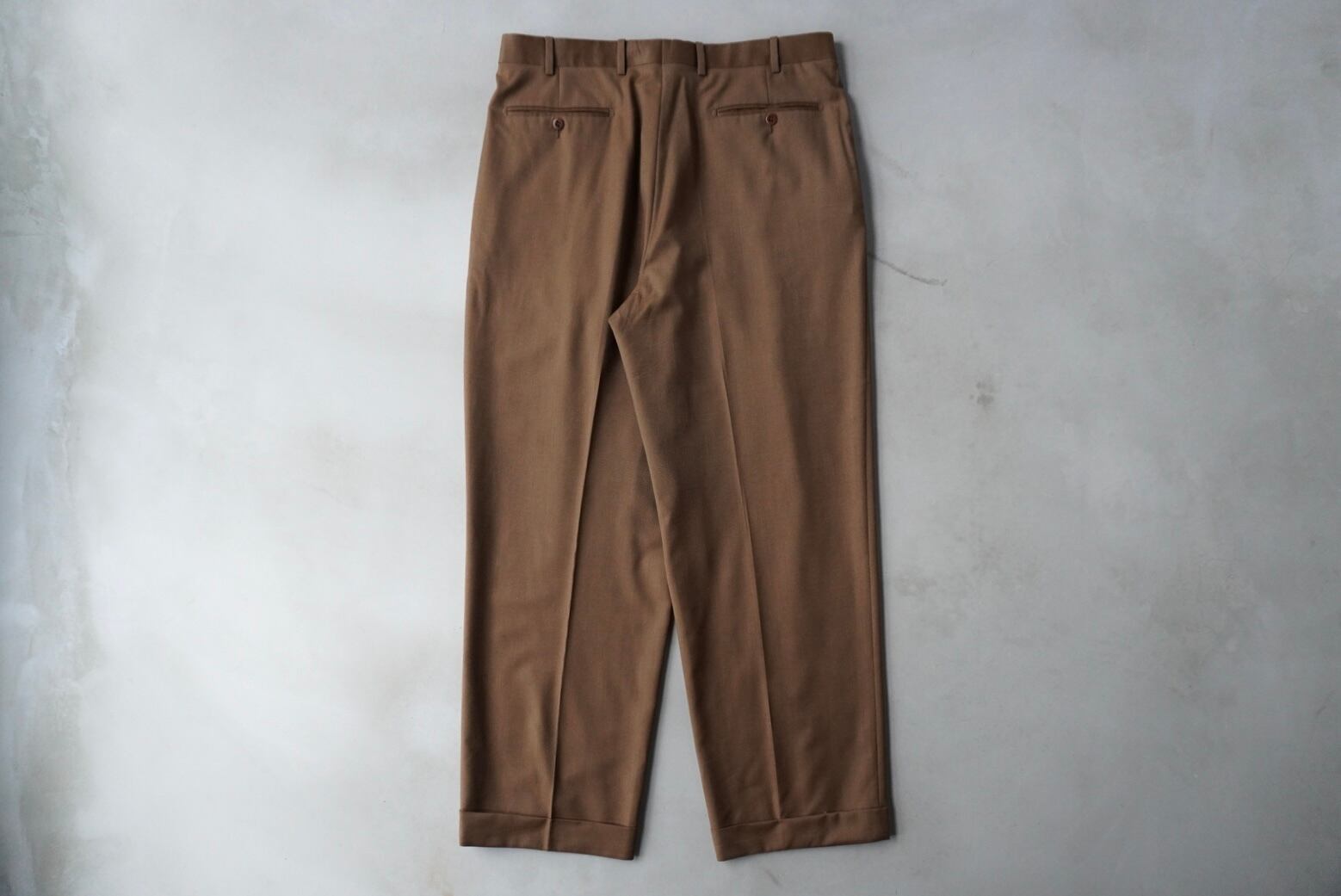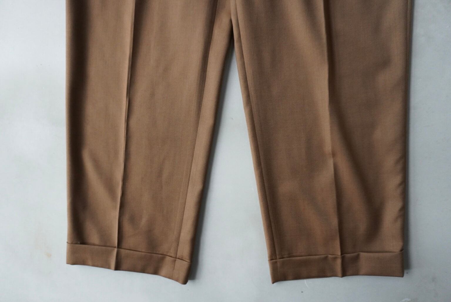 広い渡りから緩い絞りが効いた、綺麗なワイドテーパードシルエット。