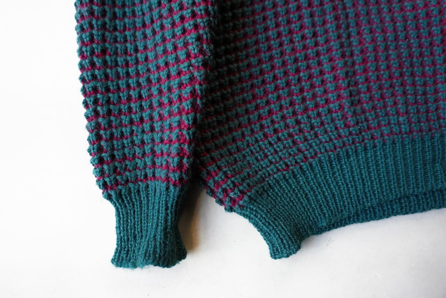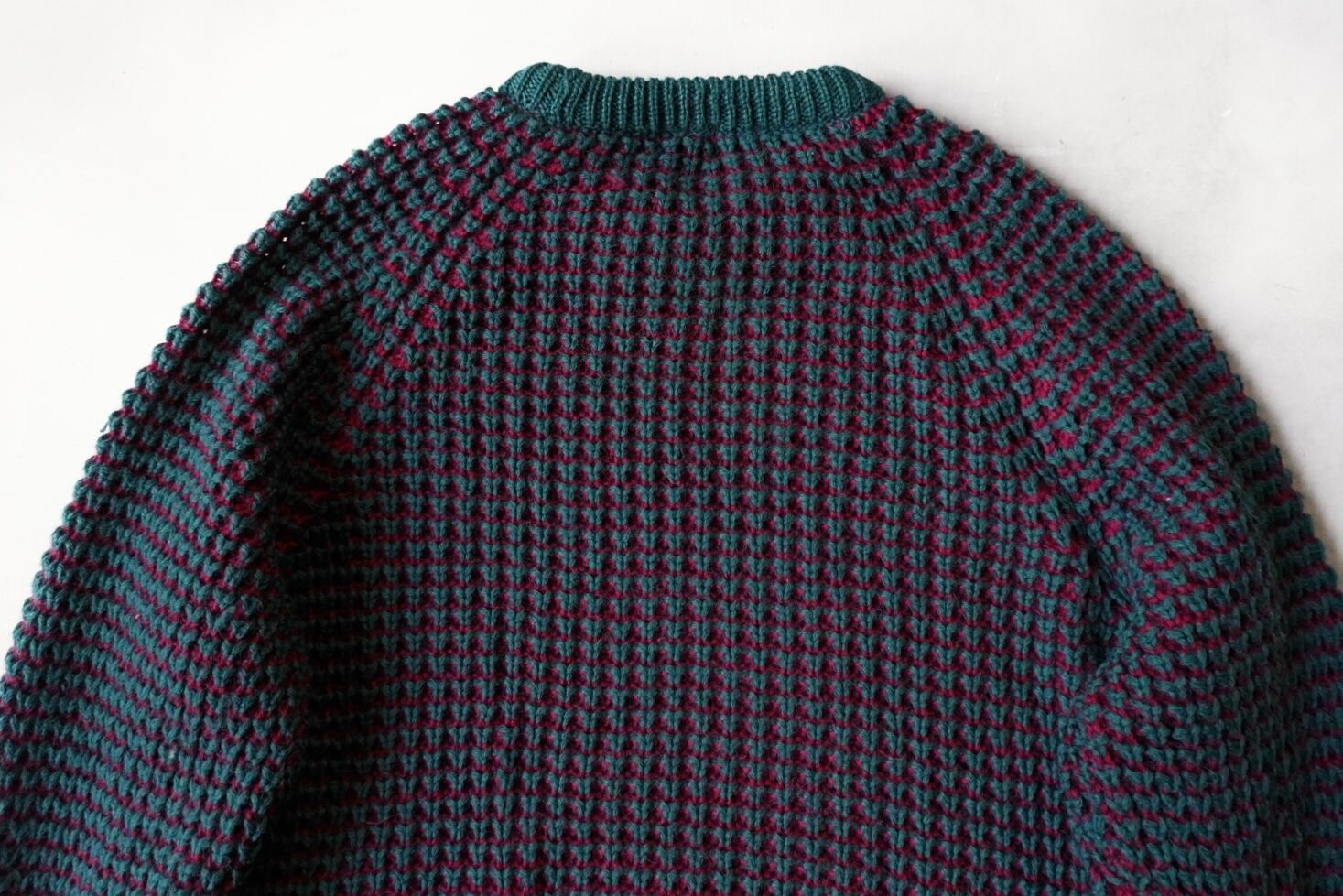 ざっくり太い毛糸で編まれた、凹凸のある肉厚なピュアウールニット。