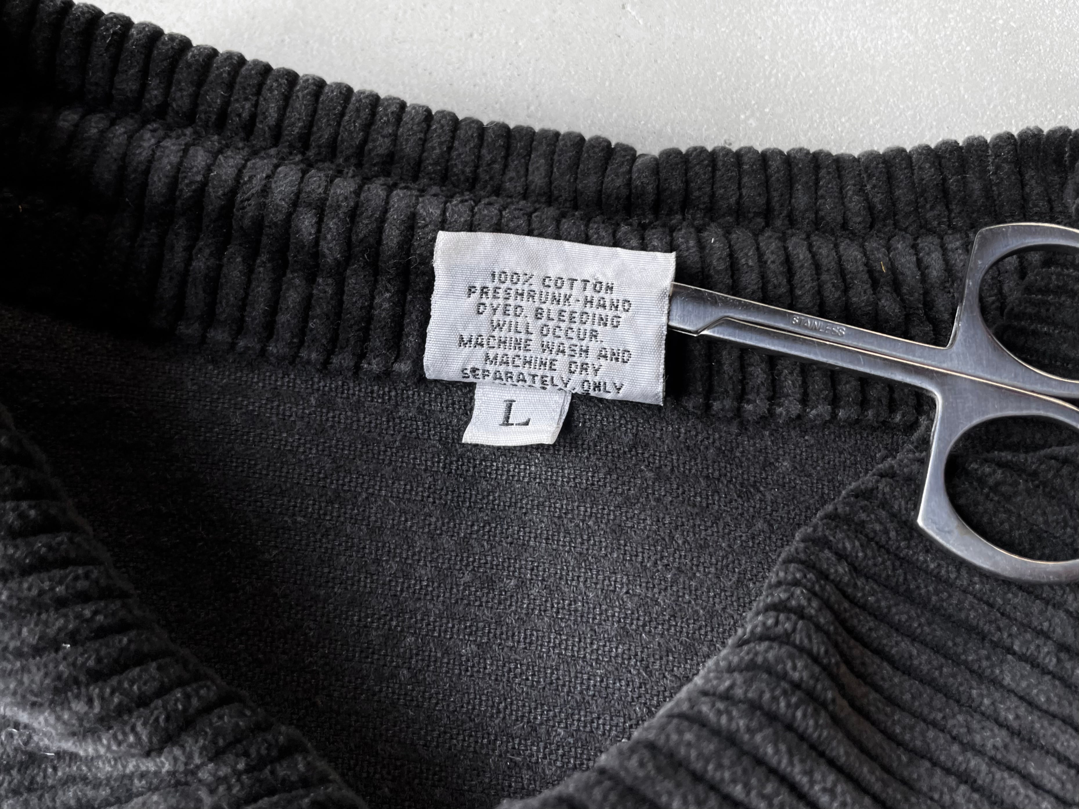 雰囲気の良い墨黒の太畝コーデュロイ。
