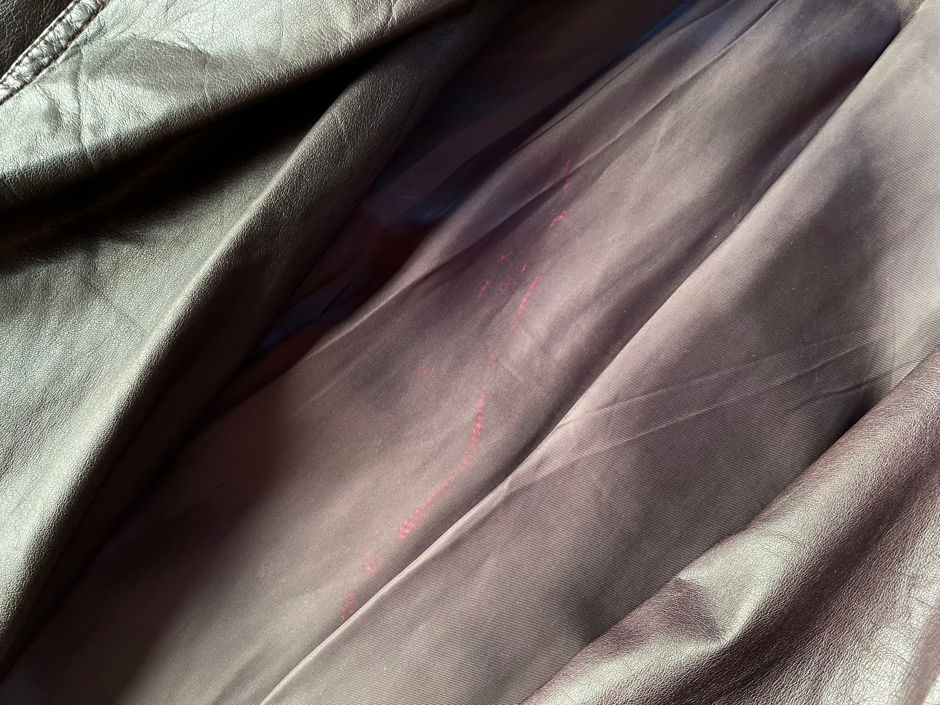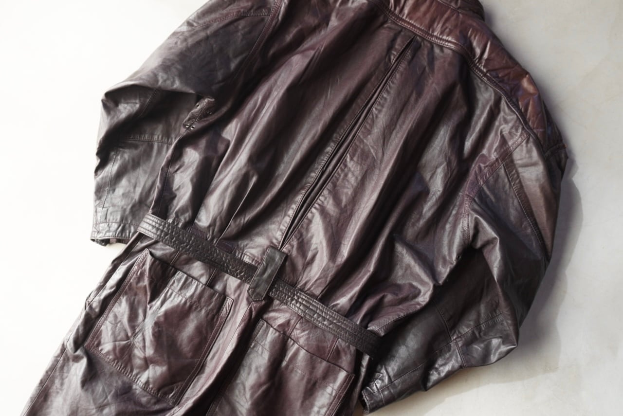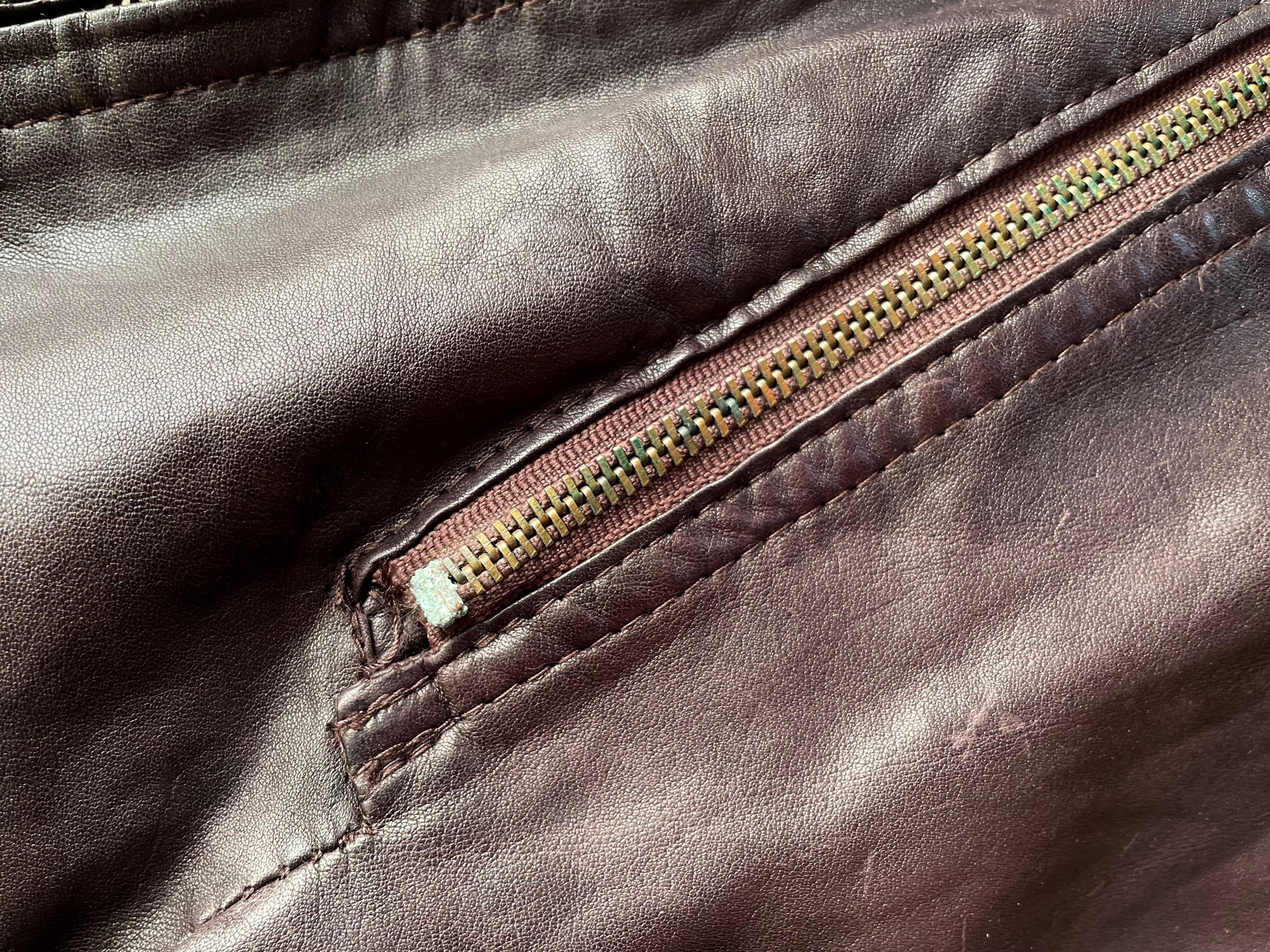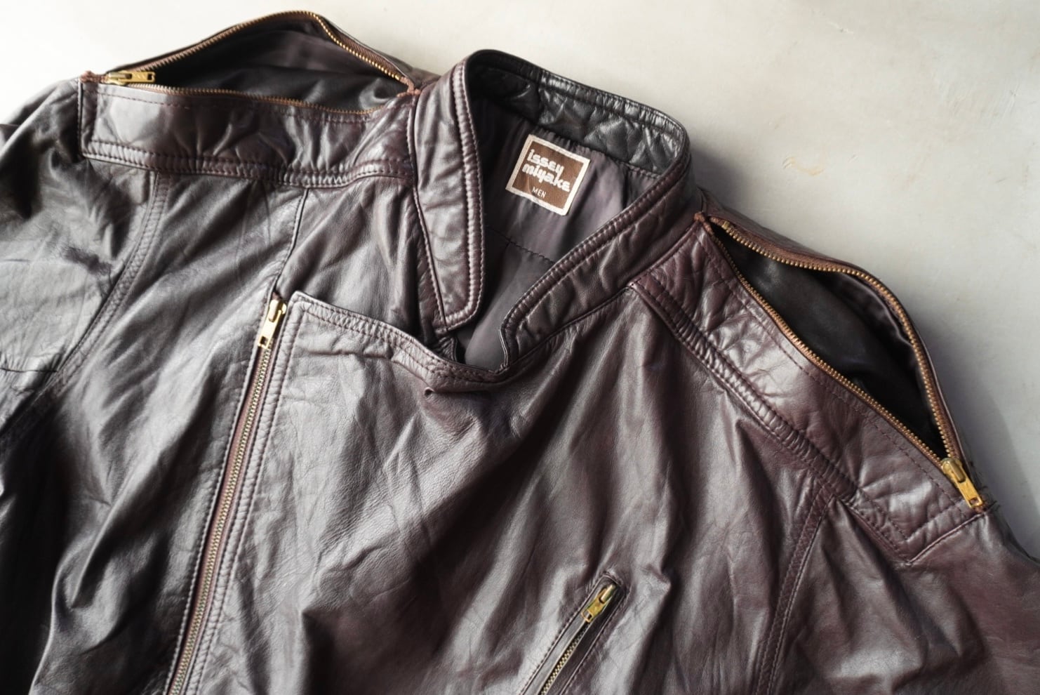 ほんのり赤みのあるブラウンレザーが使用された、ダブルのライダース仕様のスペシャルなジャンプスーツ。