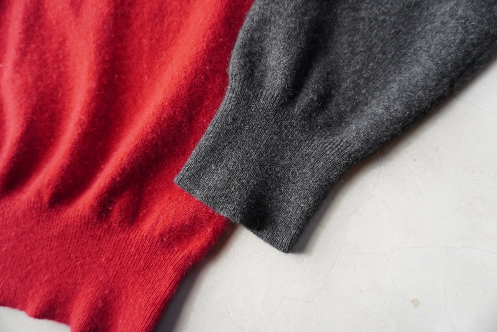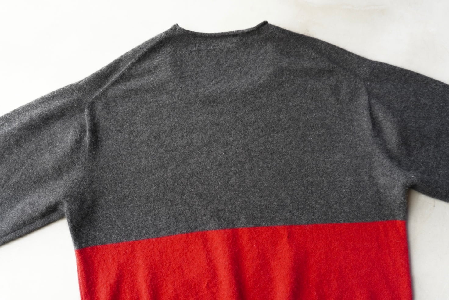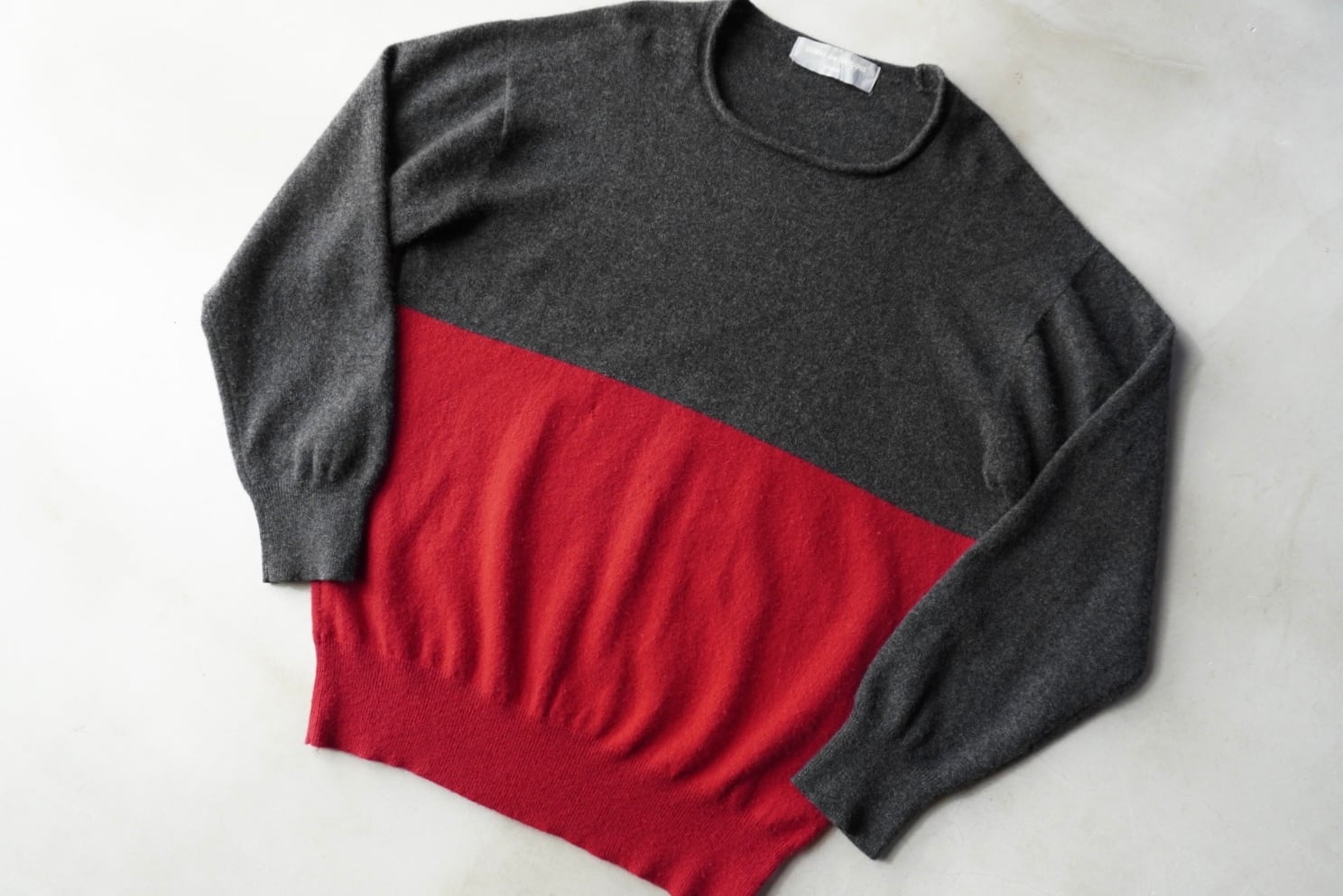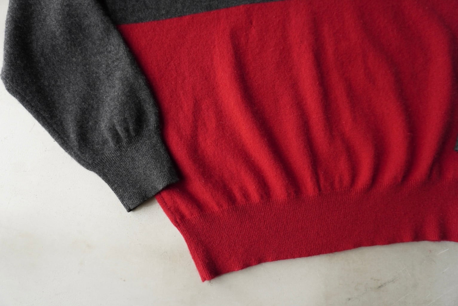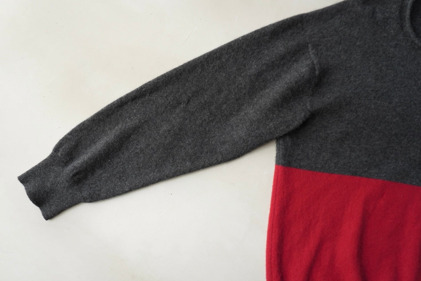 深みのある赤×グレーのバイカラー。