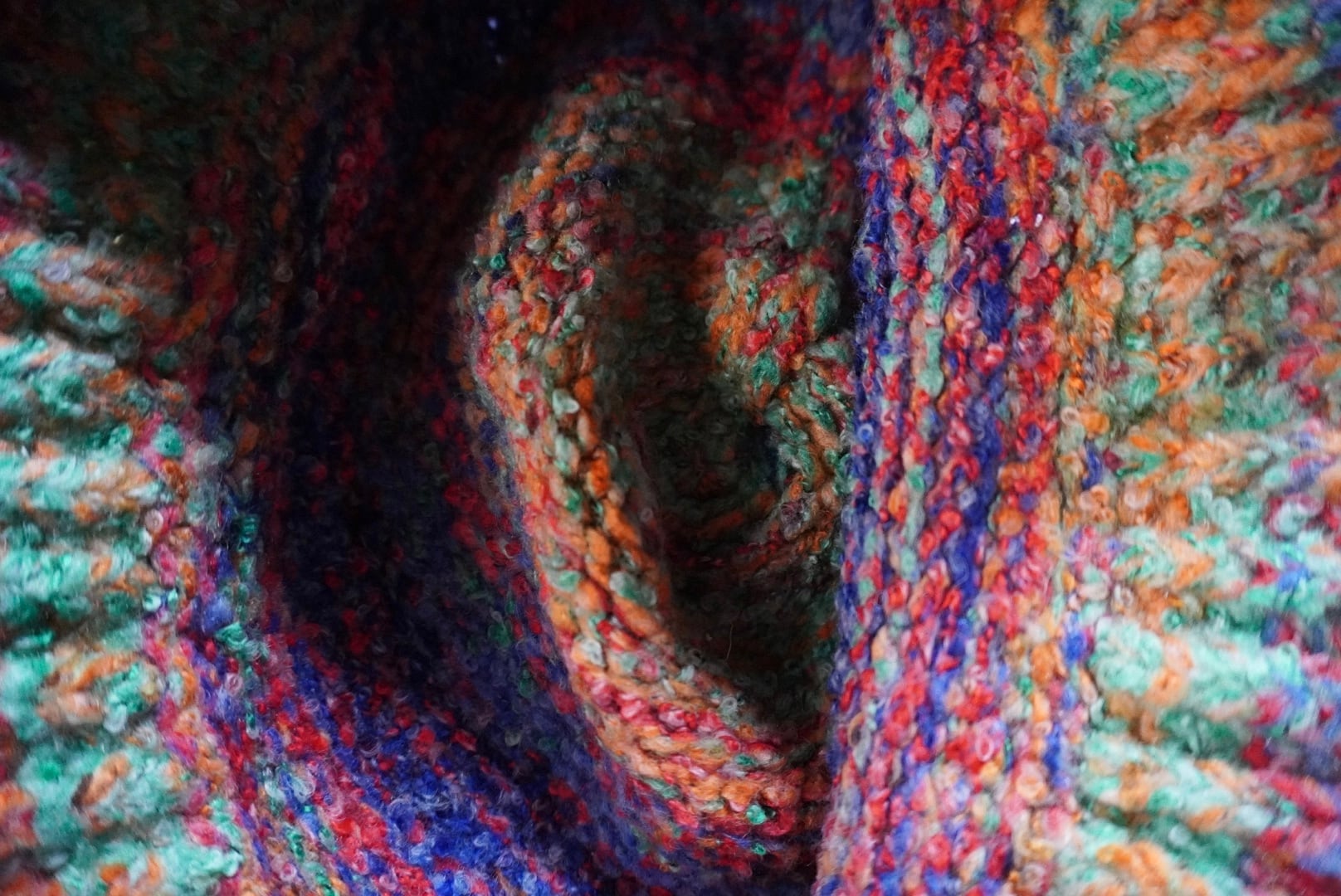 恐らくアクリルだと思われる、肉厚で滑らかな手触りのニット生地。