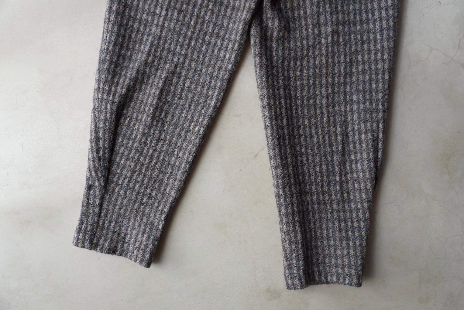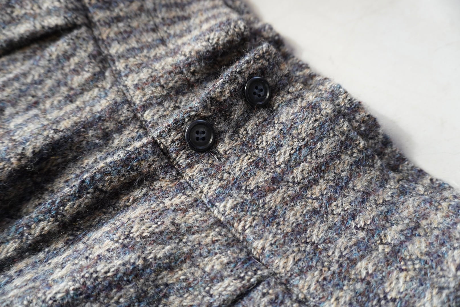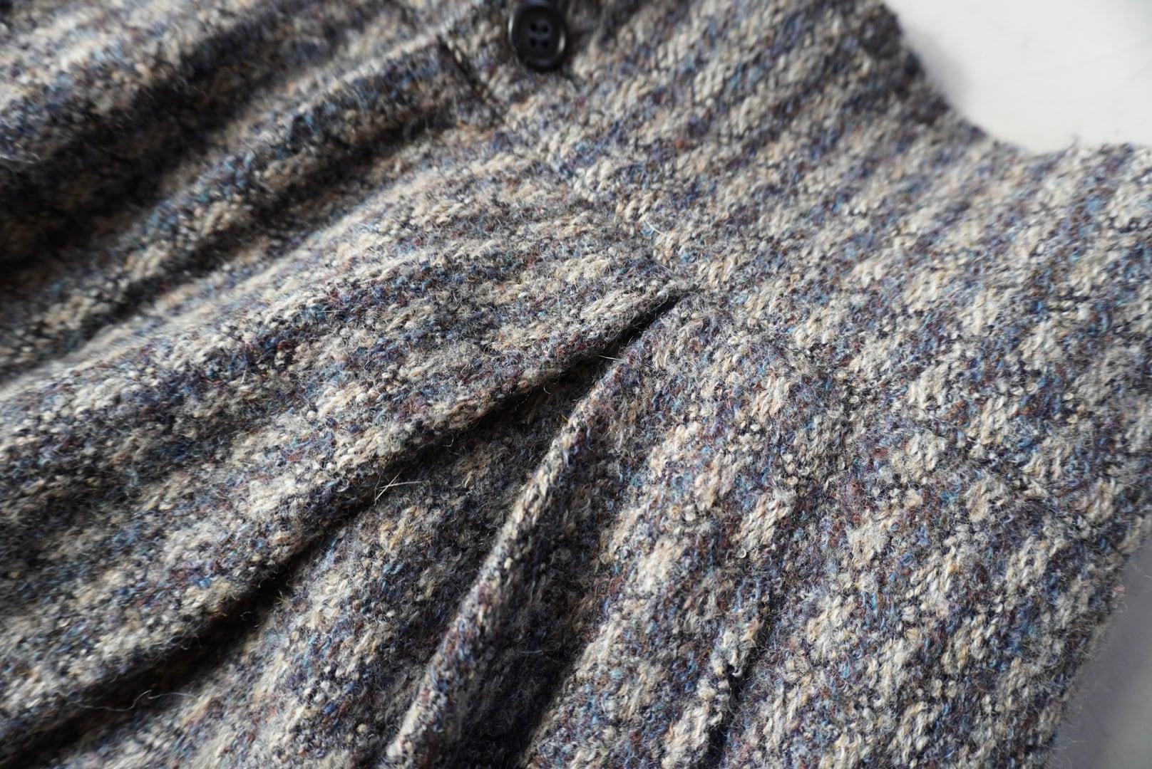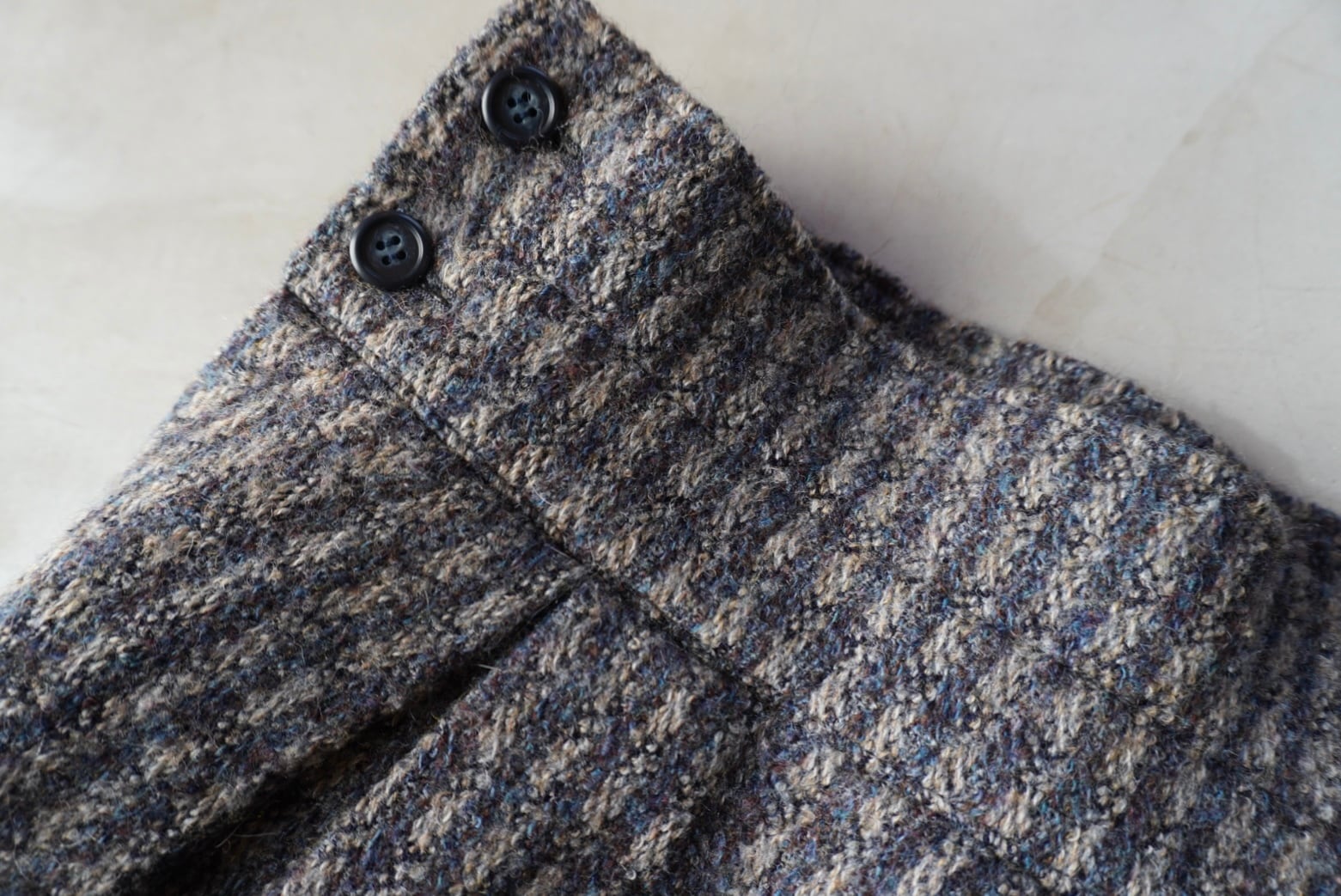 ぼやけたグレーベースに彩度を抑えた多色の糸が混じる表情豊かな編み生地。