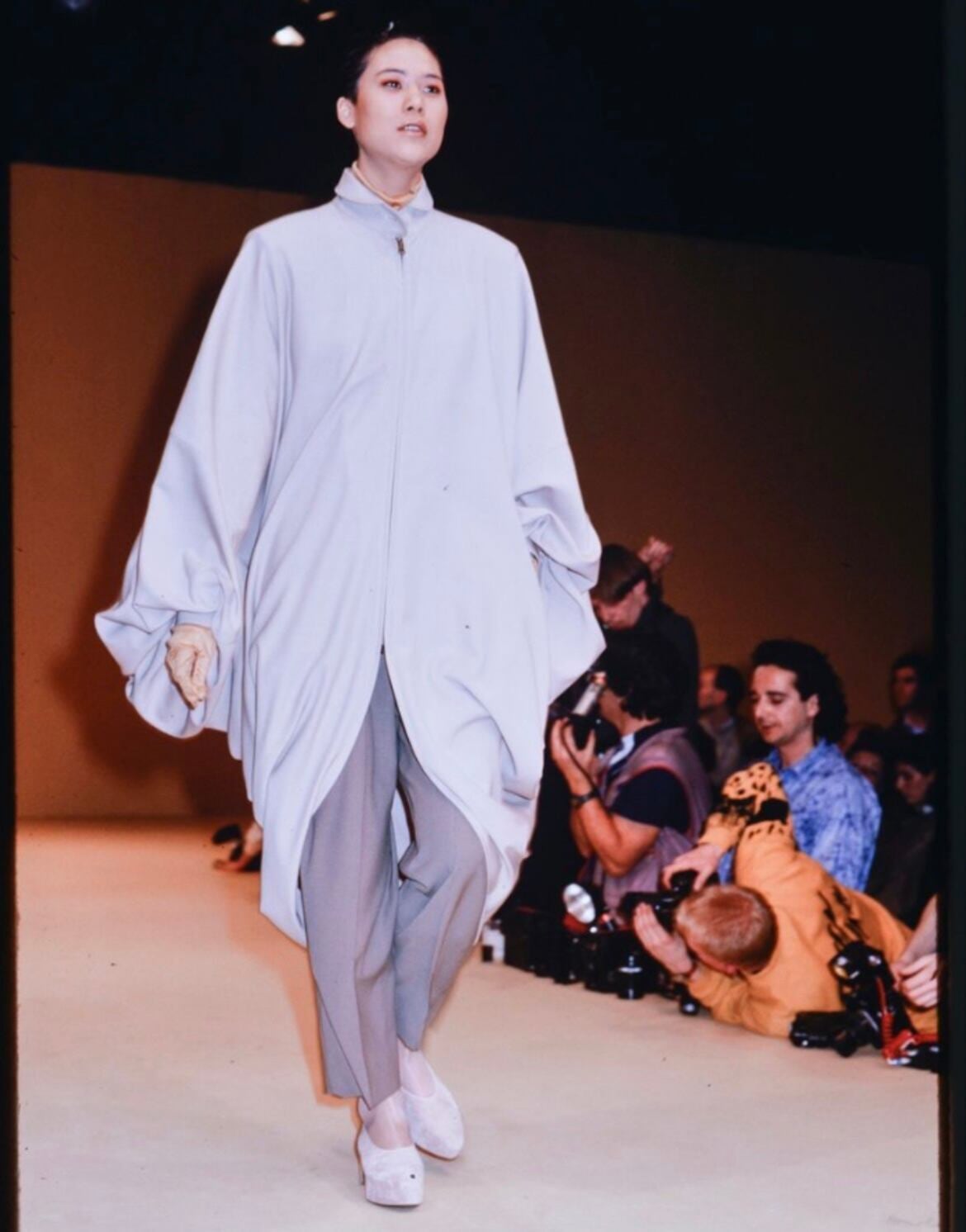 当時のランウェイにて色違いが2点登場した、名作のバルーンコート。