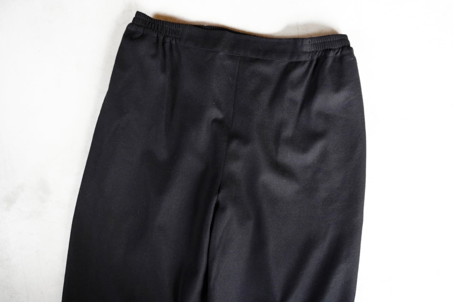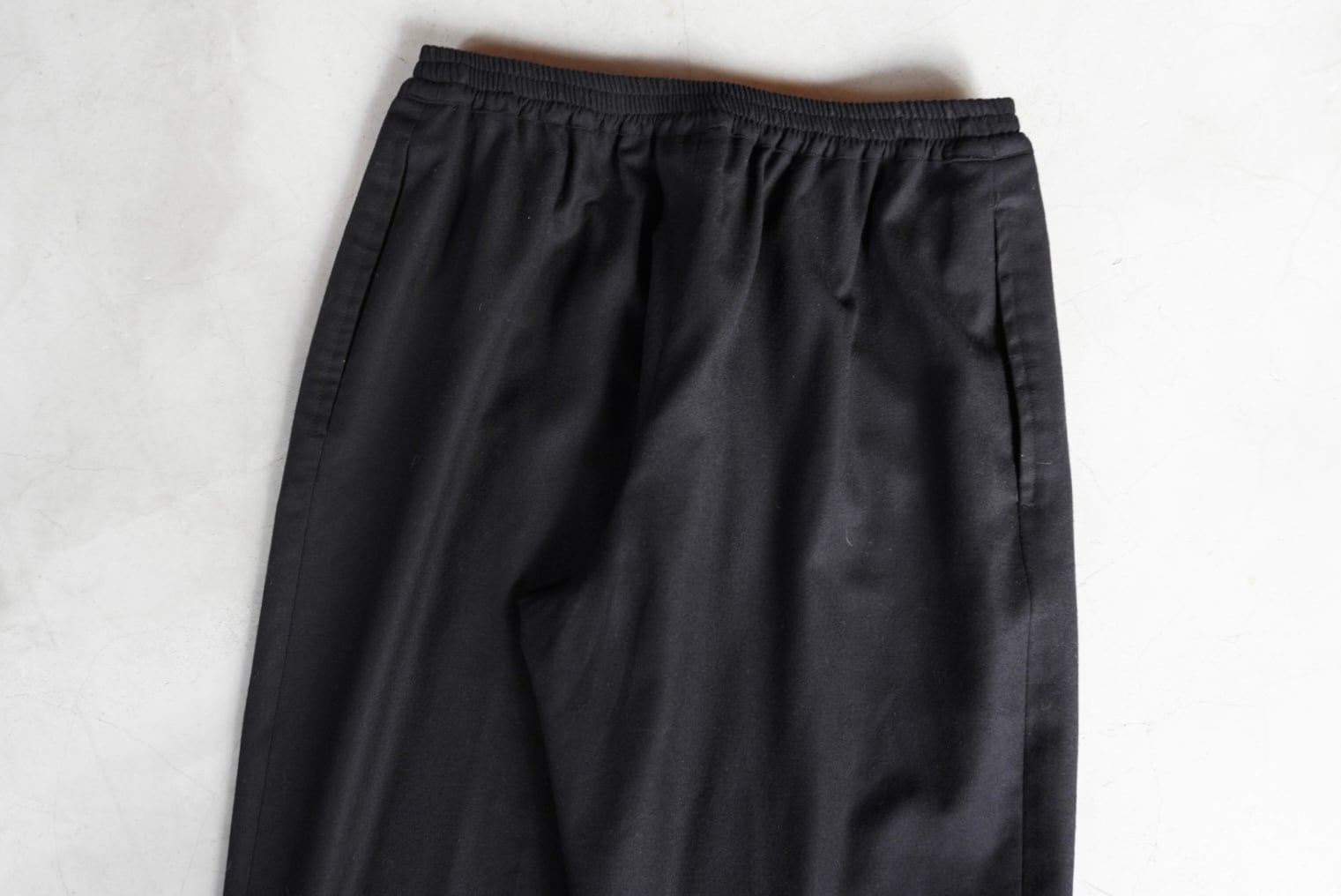 ボトムスはたっぷりな生地量が使用されたワイドシルエットのイージースラックス。
