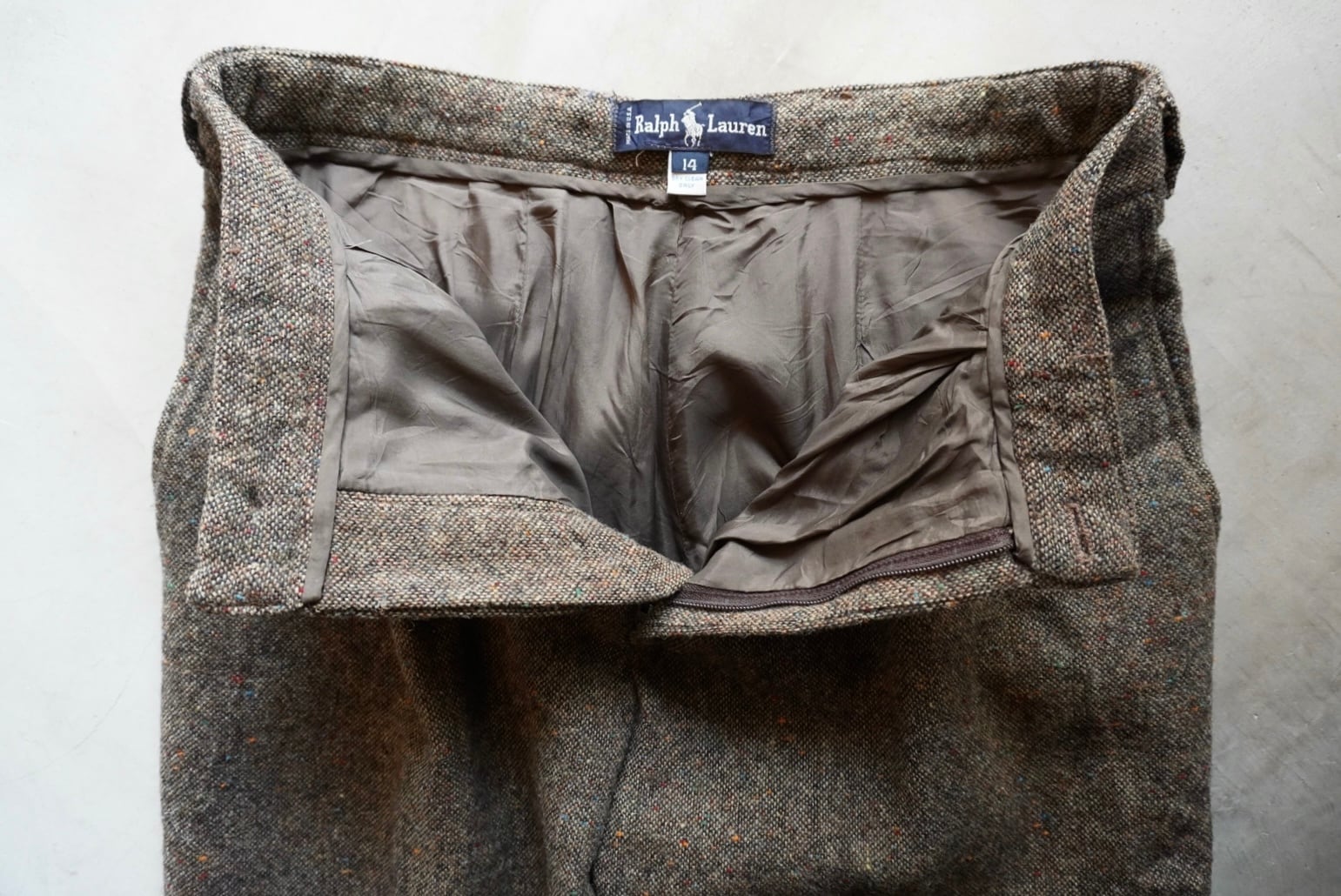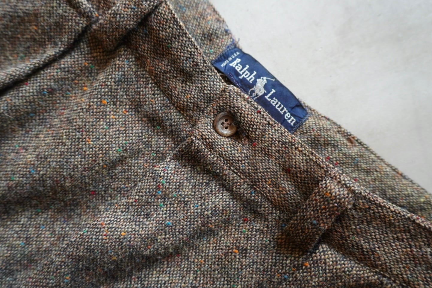 広い渡りから緩やかな絞りが効いた、この年代らしいワイドテーパード。