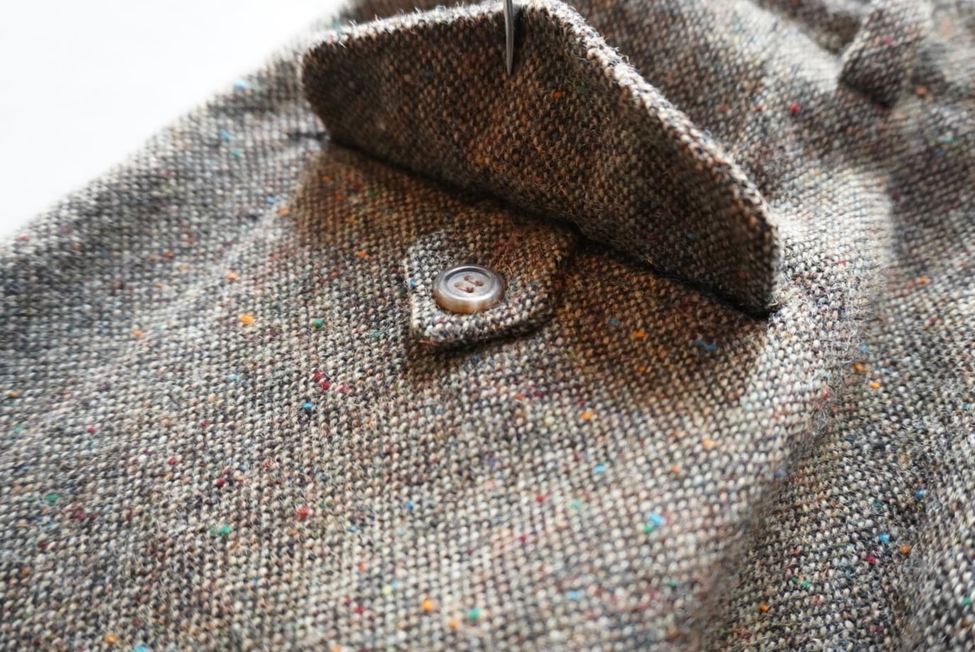 彩度を抑えたカーキブラウンボディに、色鮮やかな赤/緑/黄/青/オレンジ等の大粒ネップが乗った素晴らしい表情。