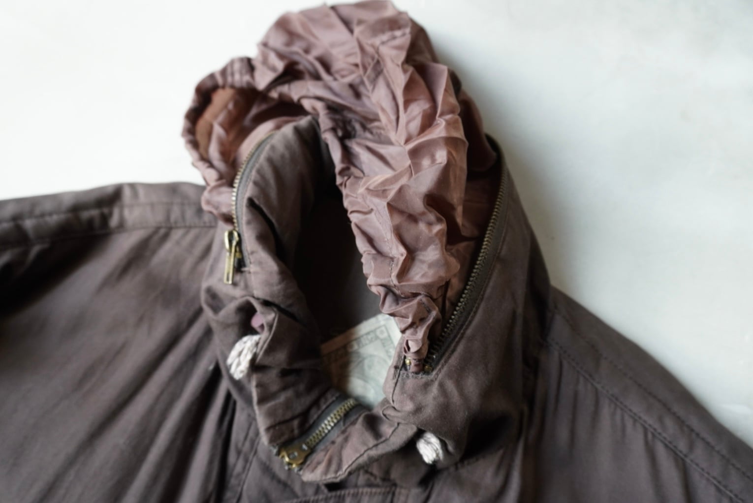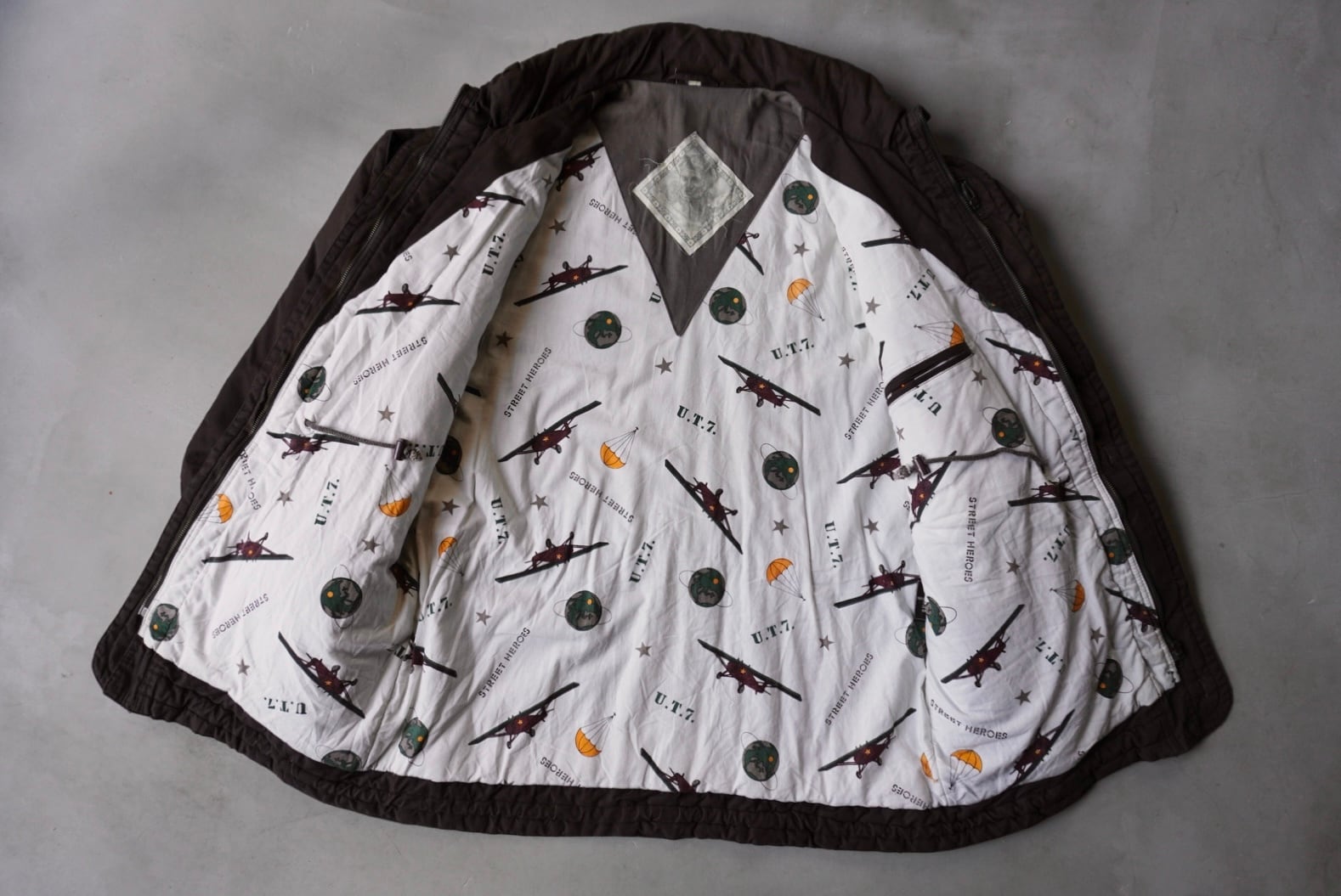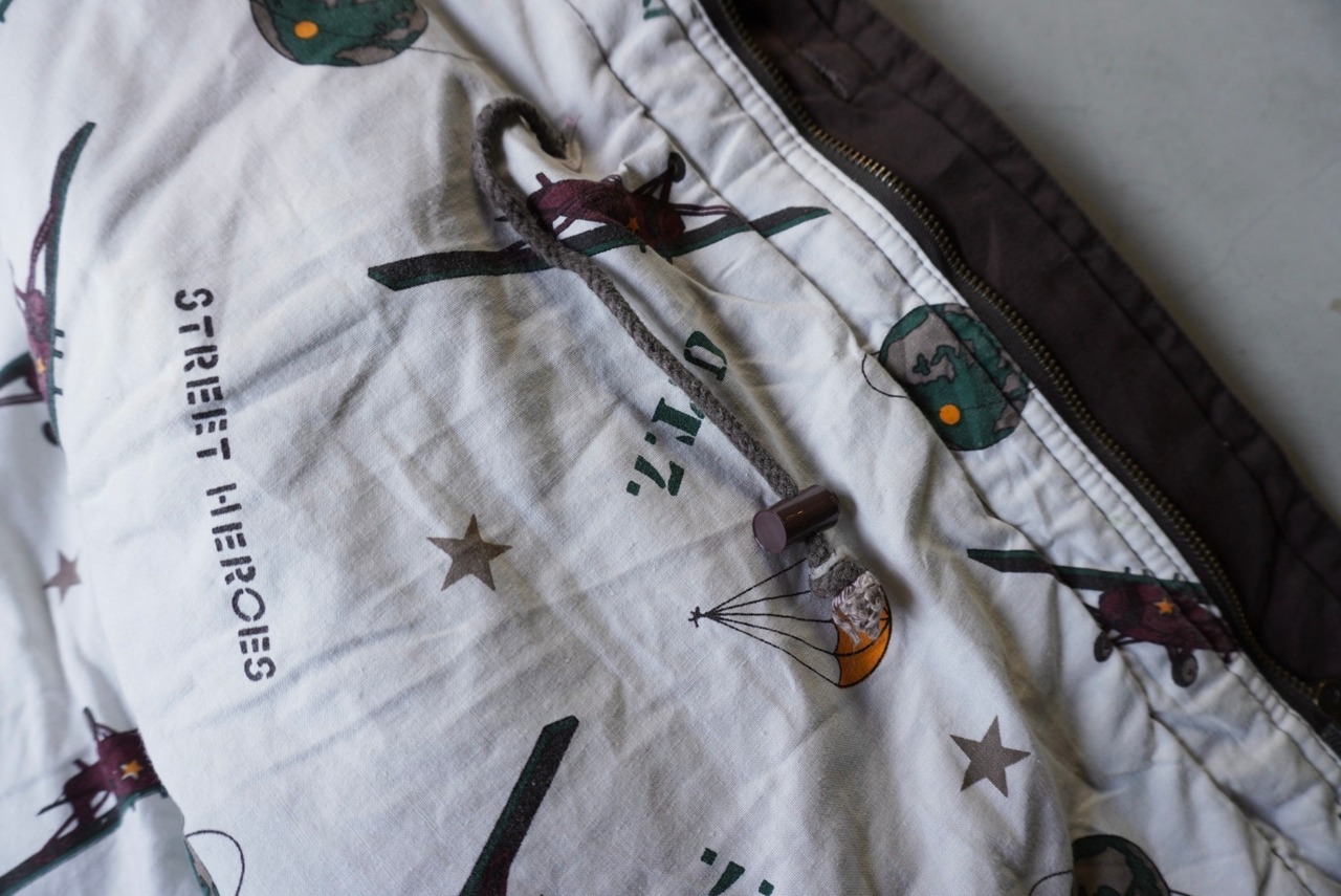 デザインソースやコンセプトにあるであろうミリタリー/フライトジャケット等に引っ張られた、良いタッチの総柄コットンライニング。