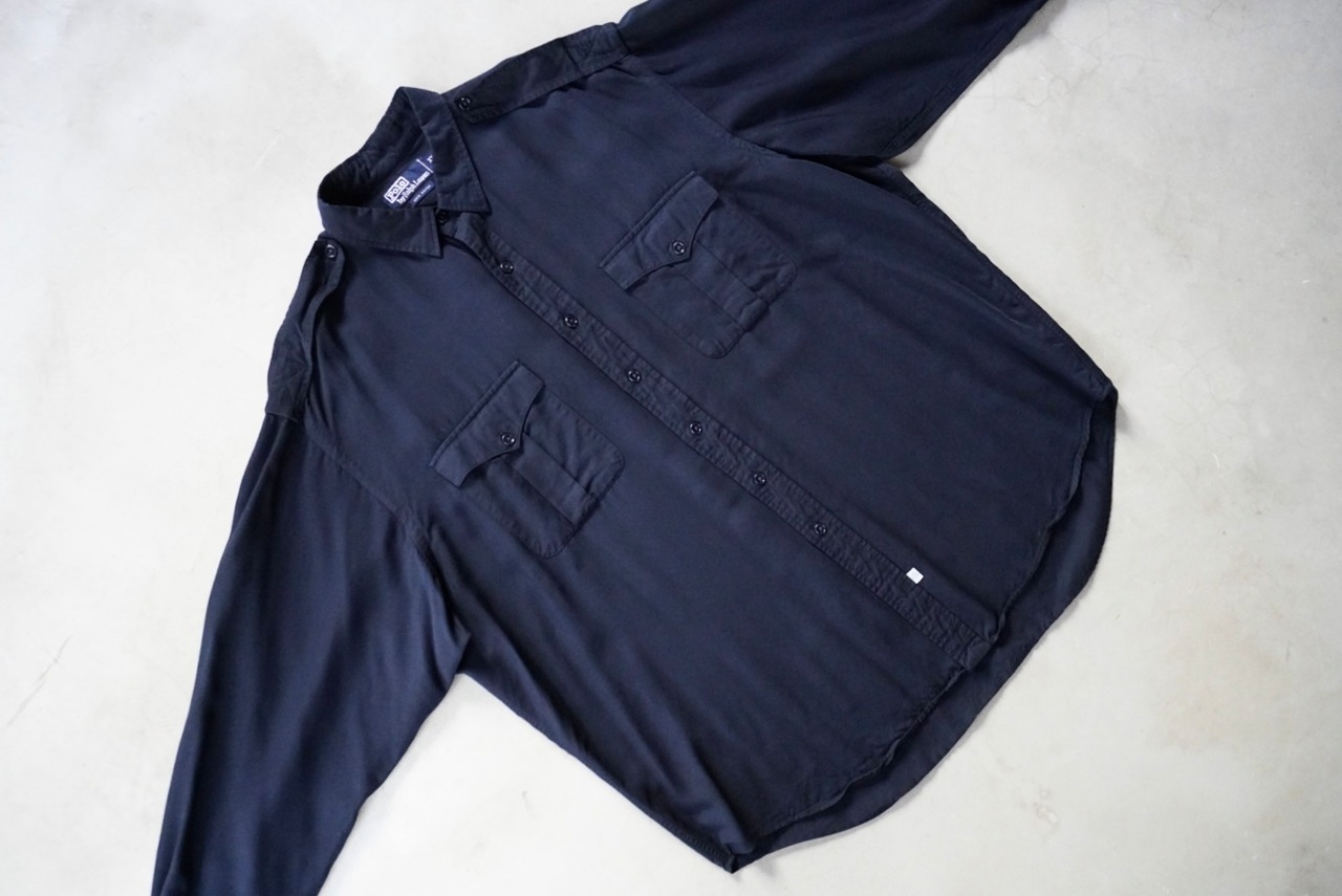 素晴らしい質感の、上質なヘヴィレーヨンで仕立てられたサファリシャツ。