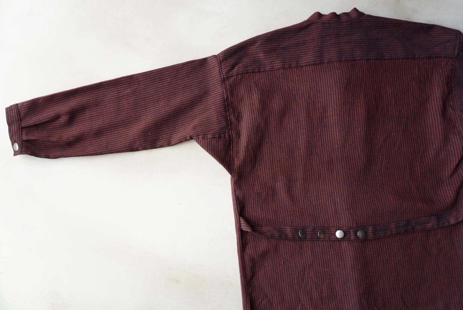 赤茶に黒の細かな縞模様、荒く良い表情のウールの一枚地。