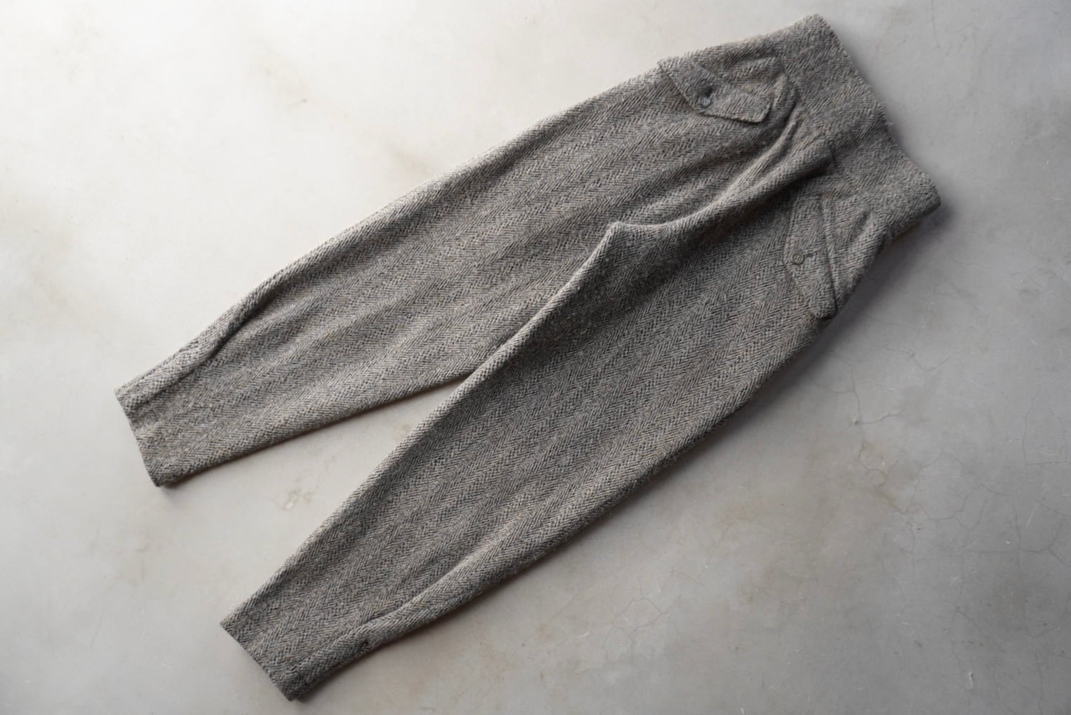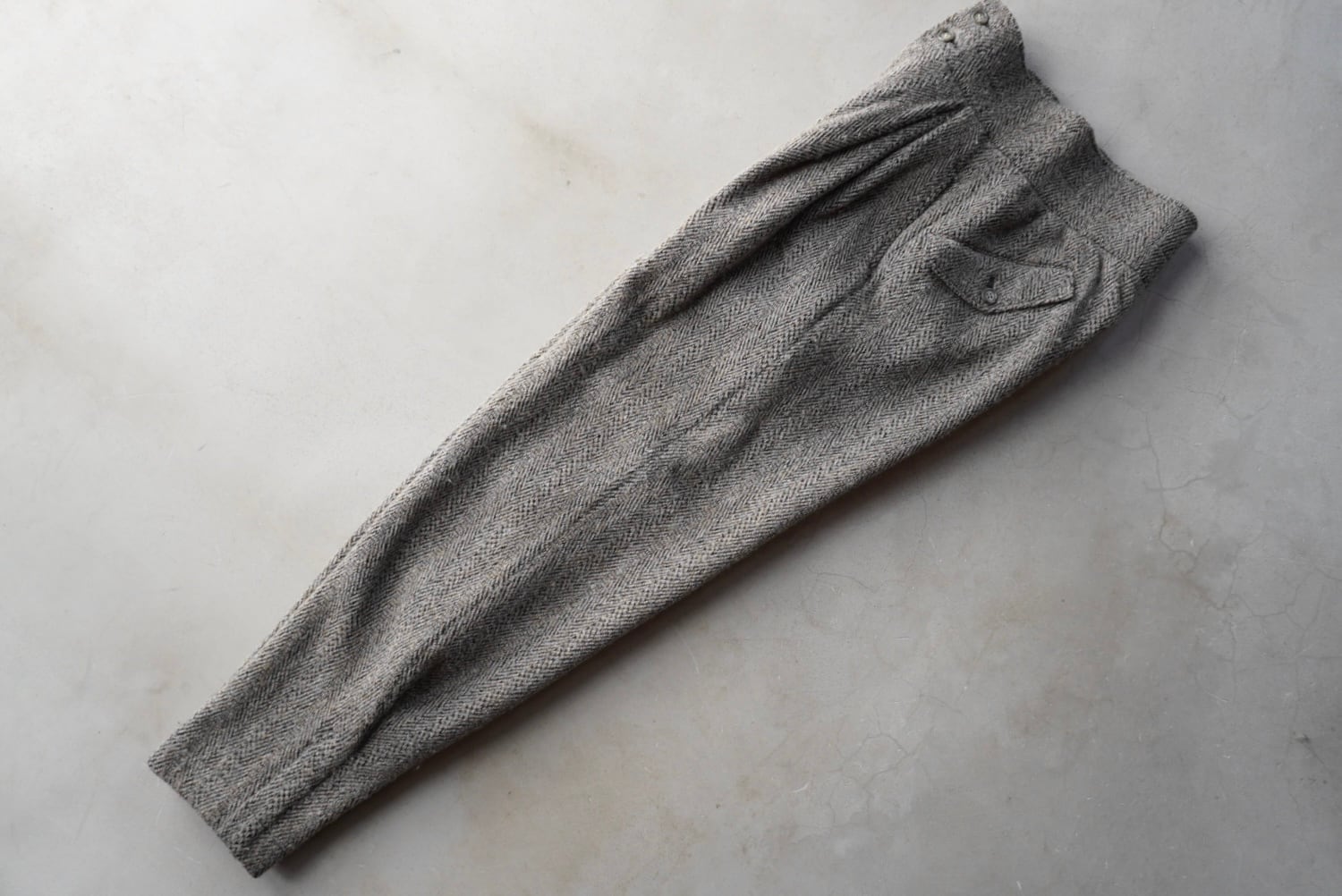 ボトムスは2連のトップボタンが付く特殊なハイウエスト。