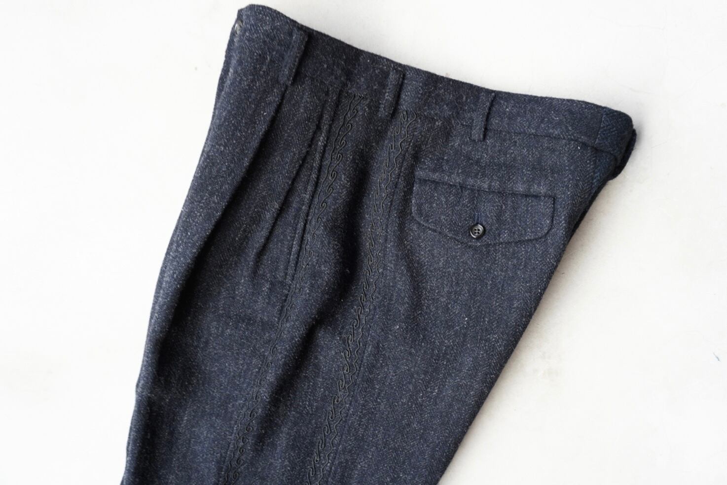 このパンツのデザインソースである古い衣服と同じ様な扱いを受けている事がなんだか新鮮に見えたので、譲り受けたままの状態で紹介いたします。