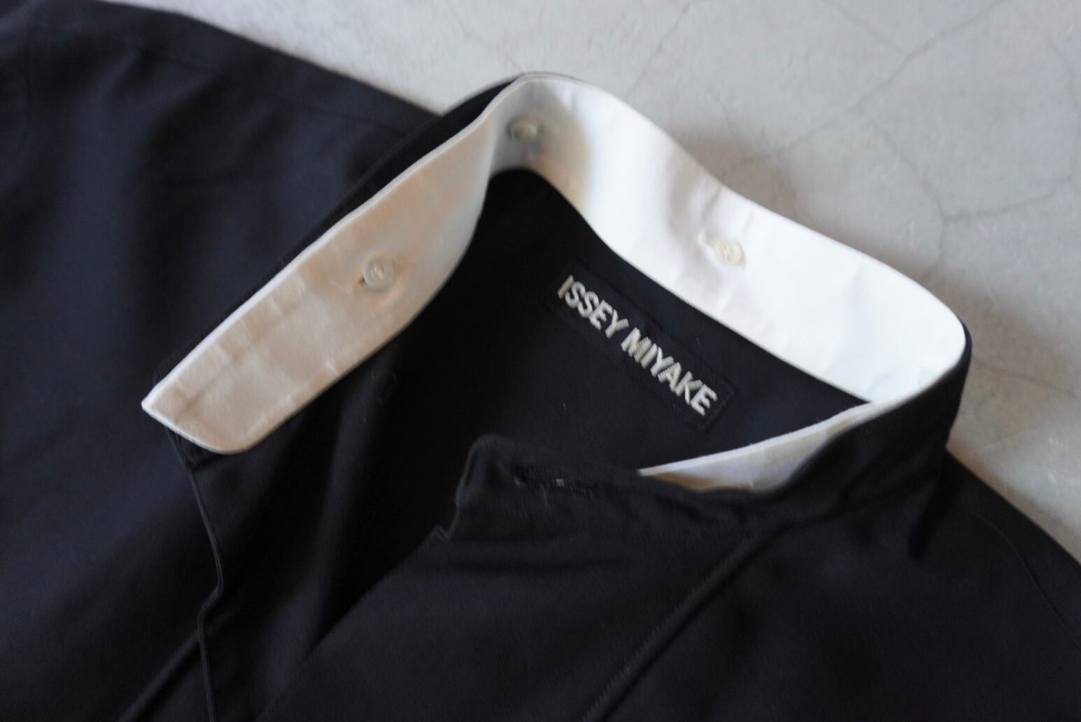 ドレスな前立て/癖の無いバンドカラーに、恐らくコットンベースと思われるボタン着脱式の白生地が付属する、特殊なデタッチャブルカラー。