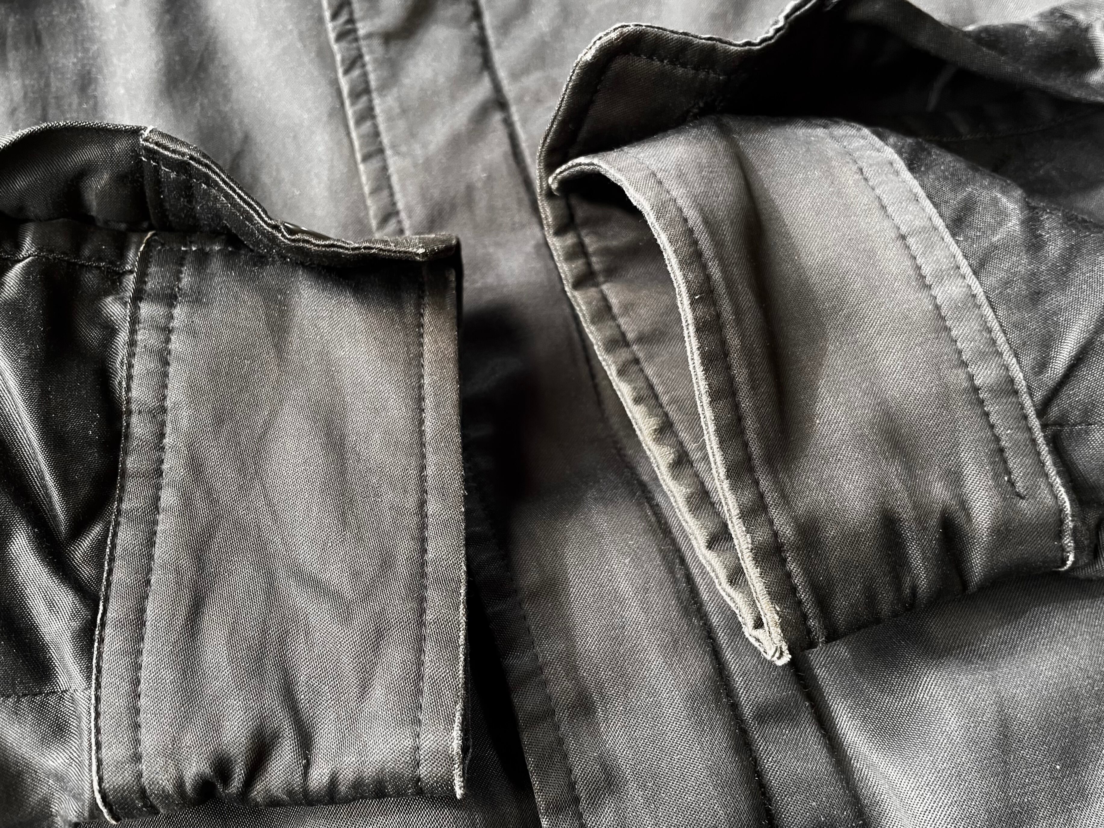 滑りのある高密度な織生地は、表記が付きませんがレーヨン/ナイロン辺りの化繊生地だと推測します。