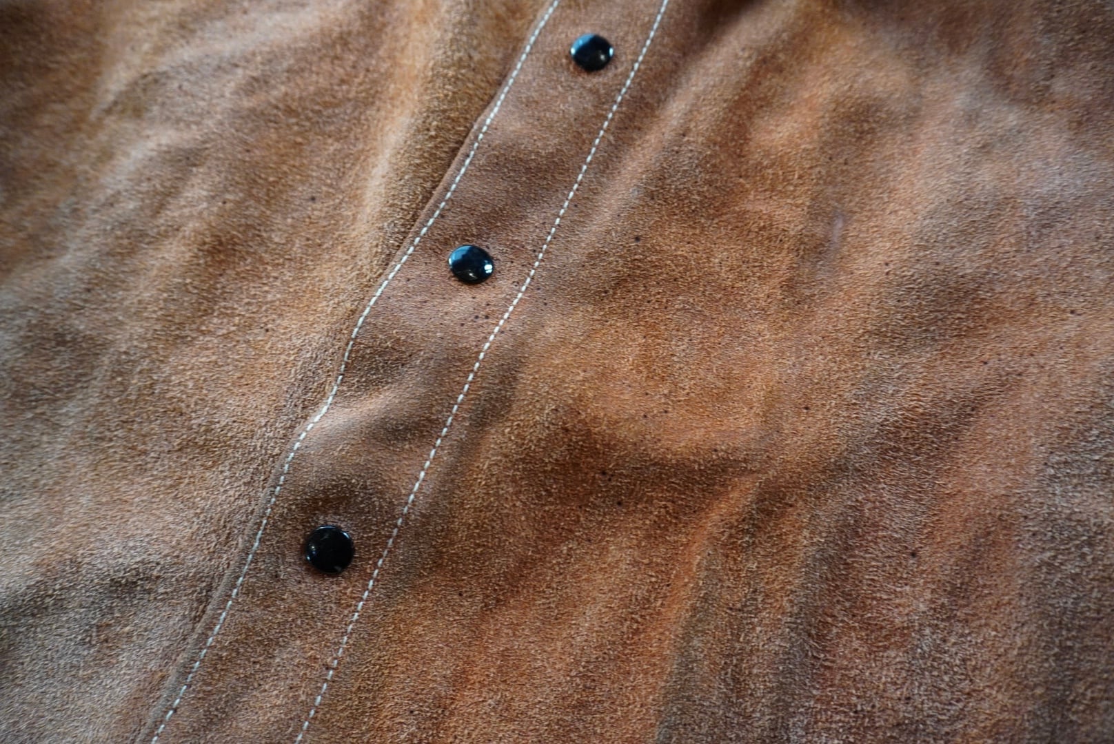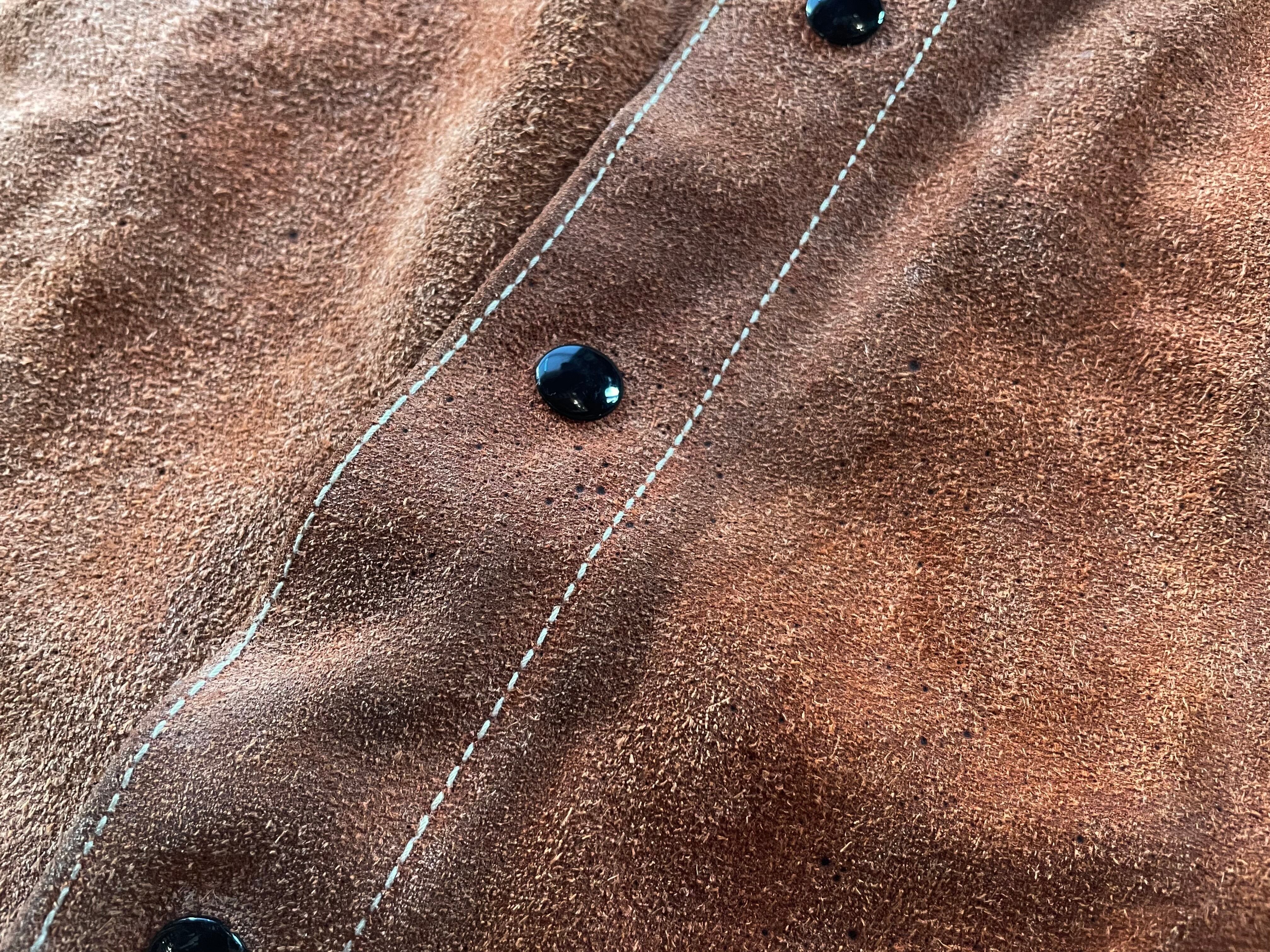 ブラックカラーのスナップ/リベットが映える、むらのあるブラウンカラー。