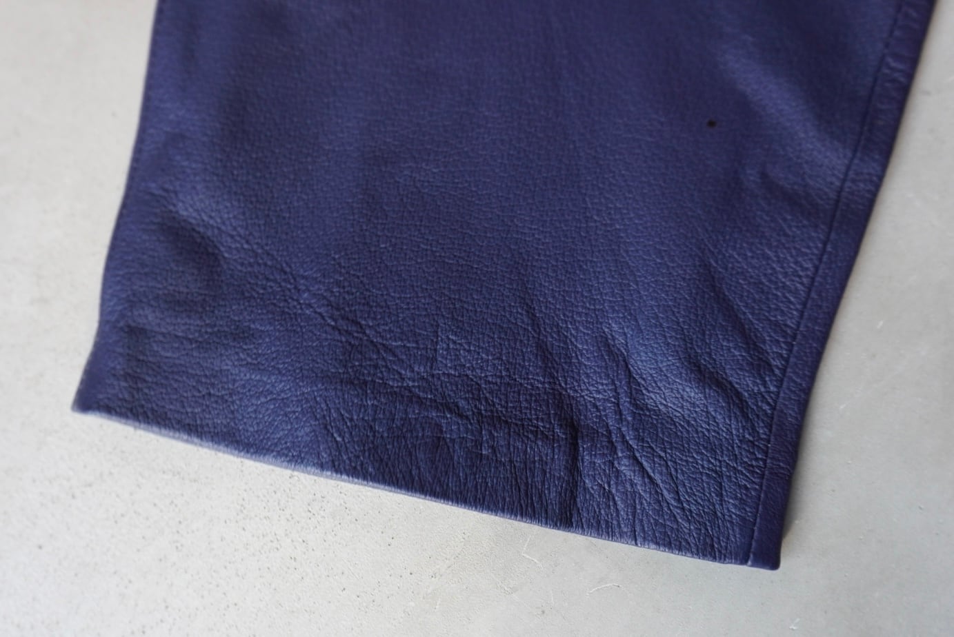 柔らかくも適度な張りのあるレザー生地で仕立てられた、太さのあるワイドイージーパンツ。