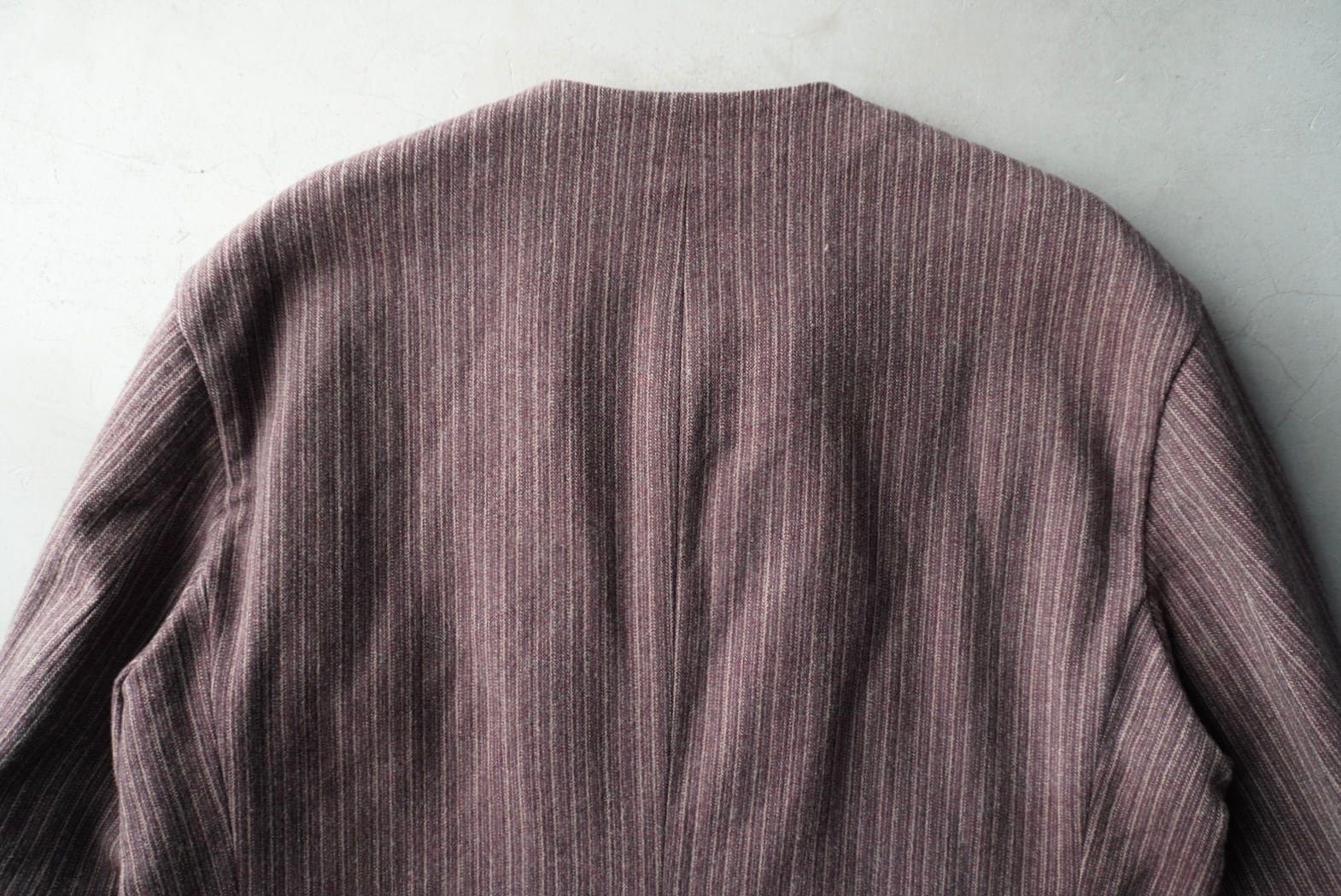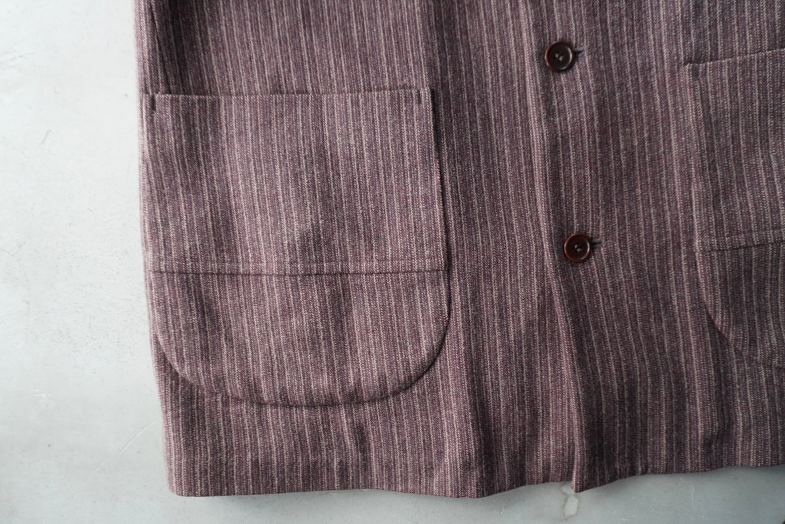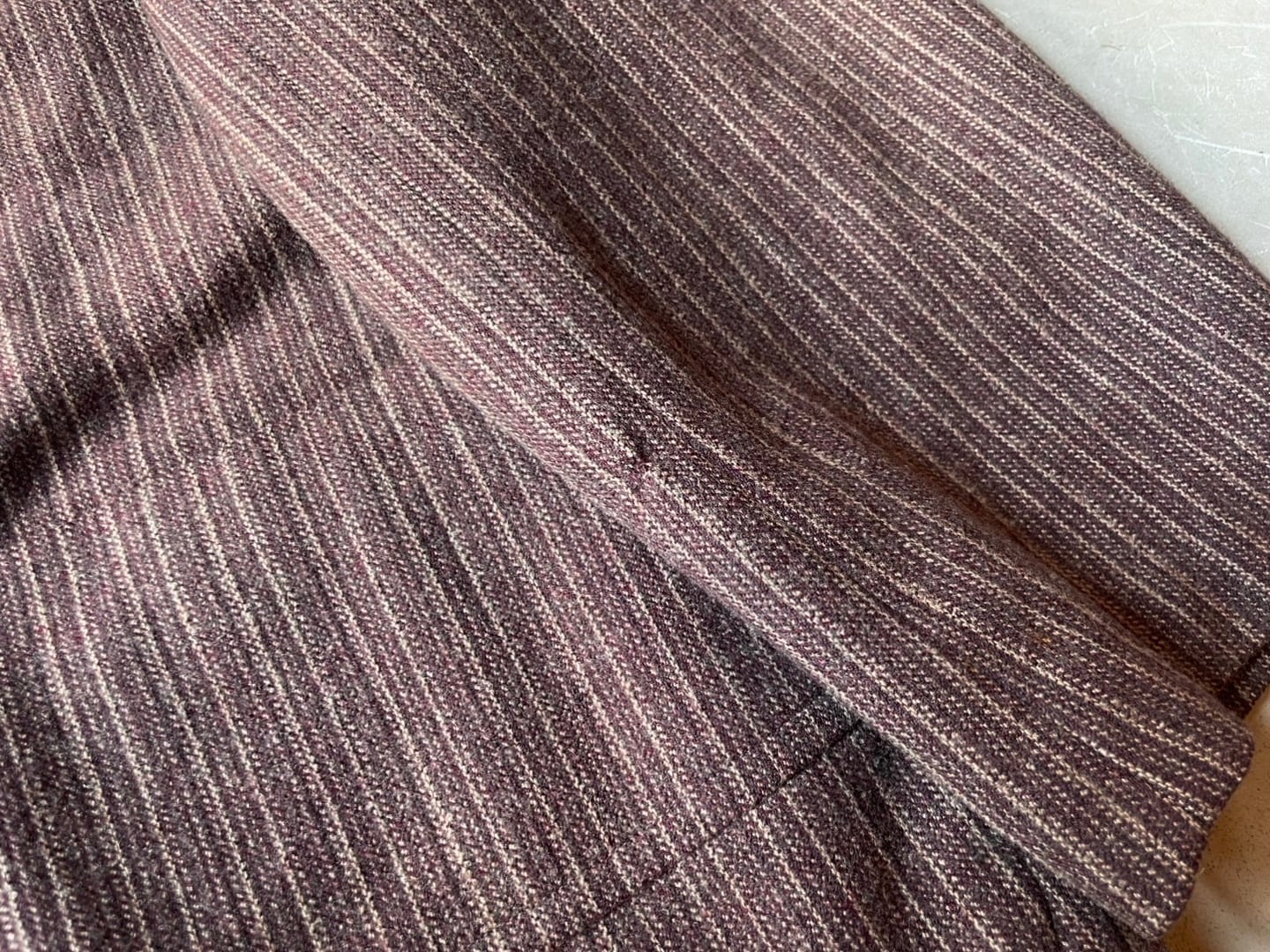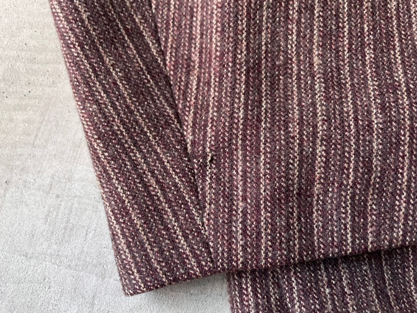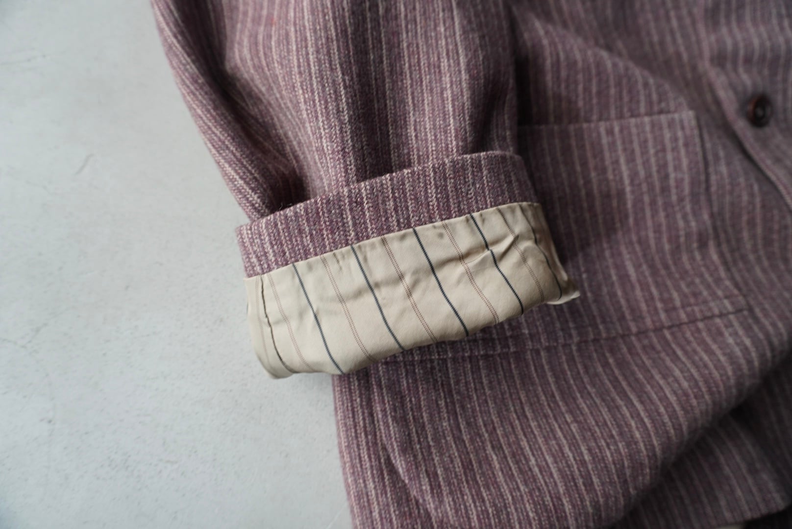 赤みのあるブラウンのウールシェルに、薄い中綿入りの柔らかなコットンのキルトライニング。