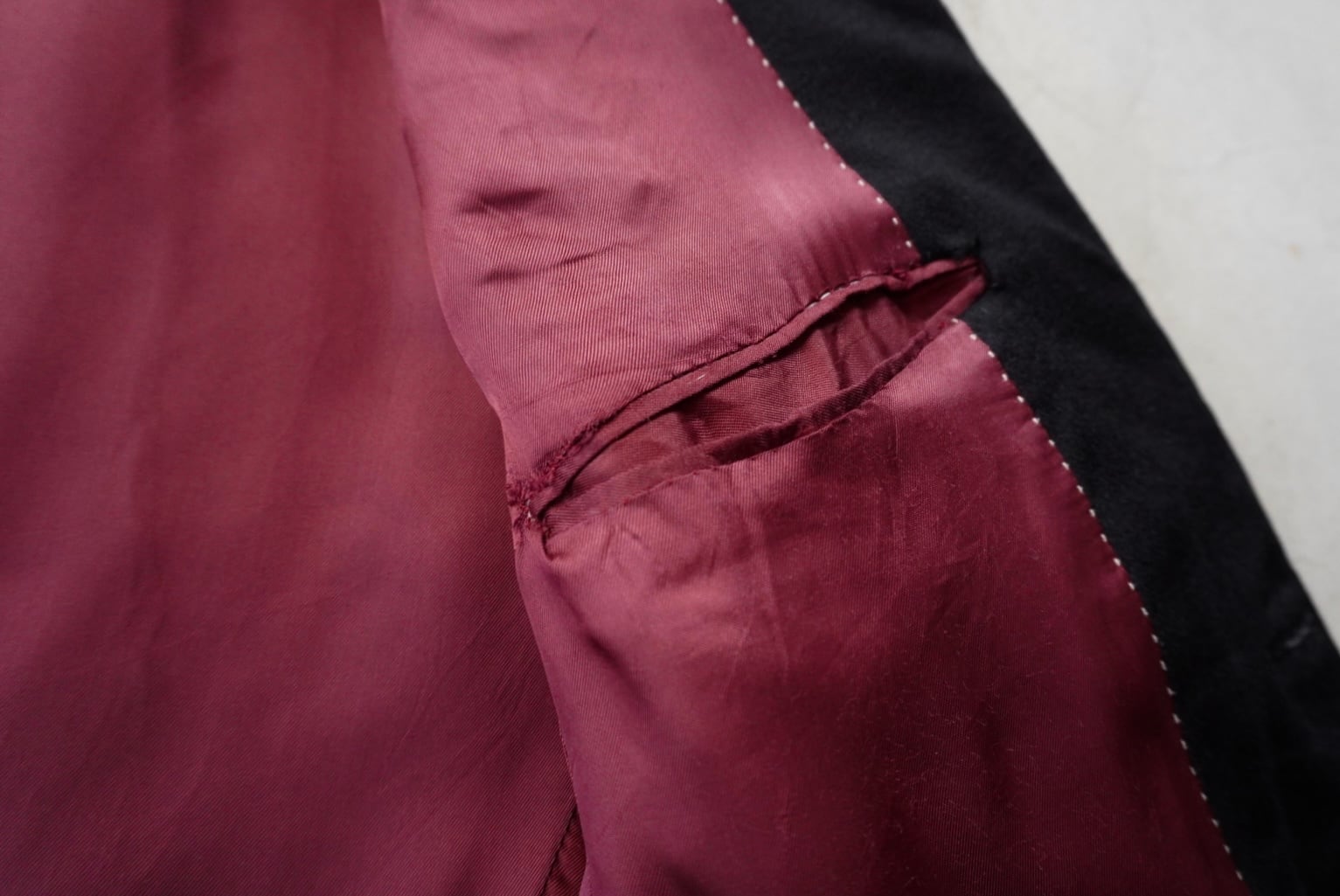 As shown in the images, there are small scratches, slight stains and rubbing on the fabric at the elbow.