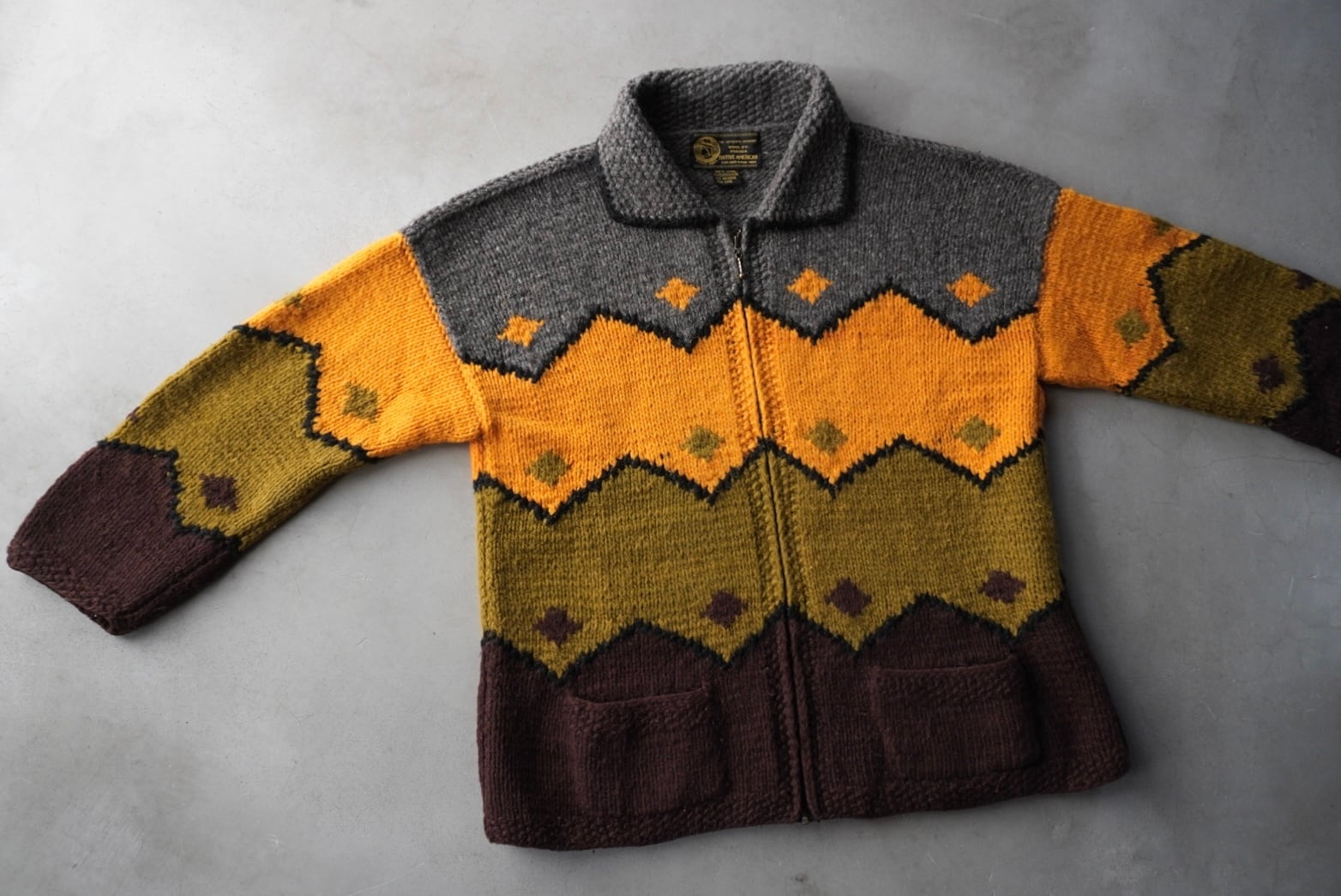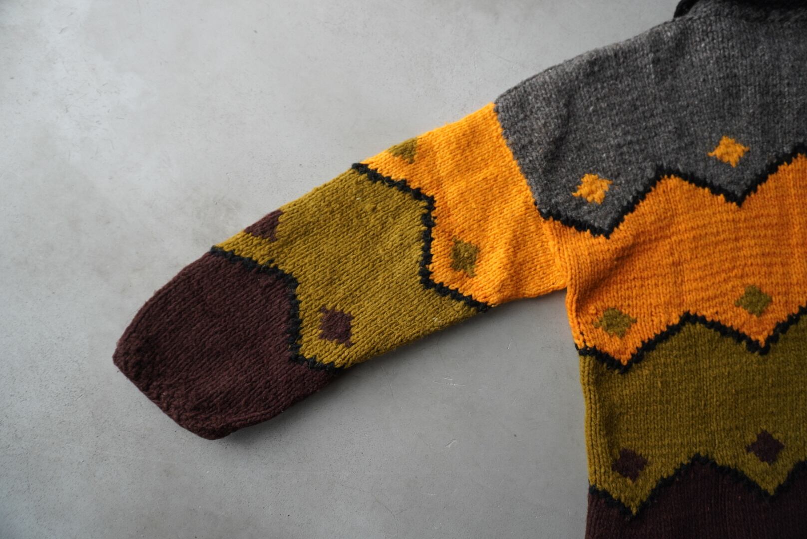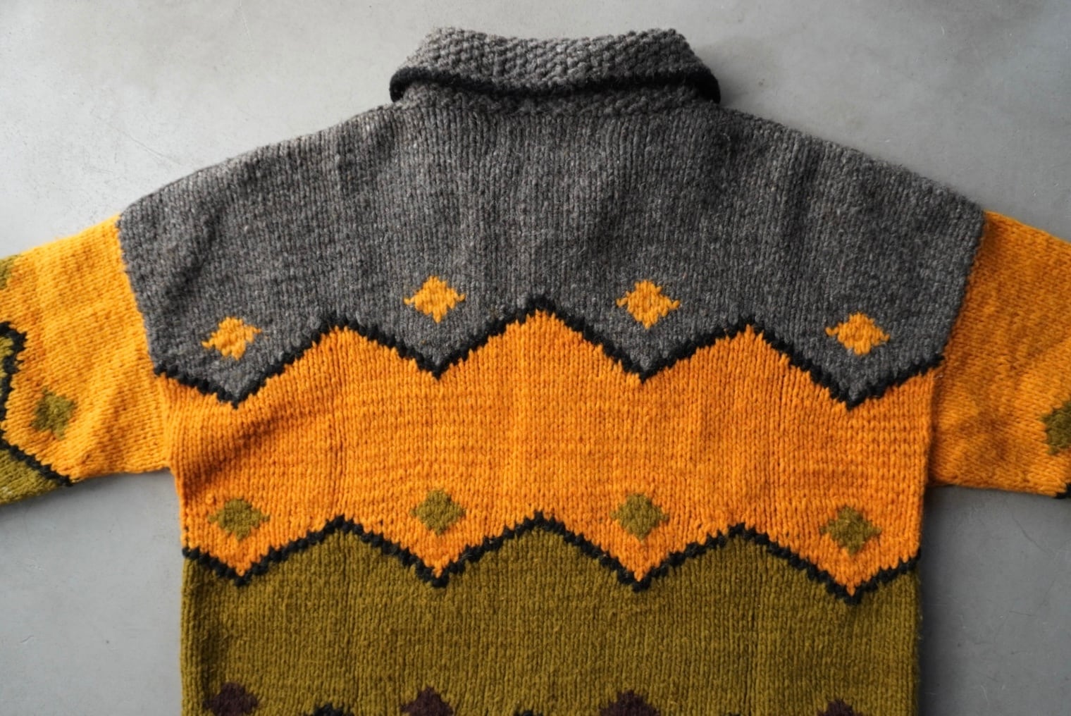 太い毛糸でぎっしり高密度に編まれた肉厚なウールニット。