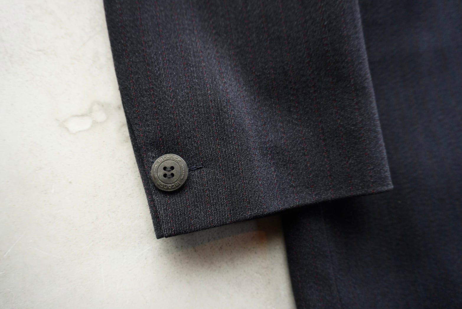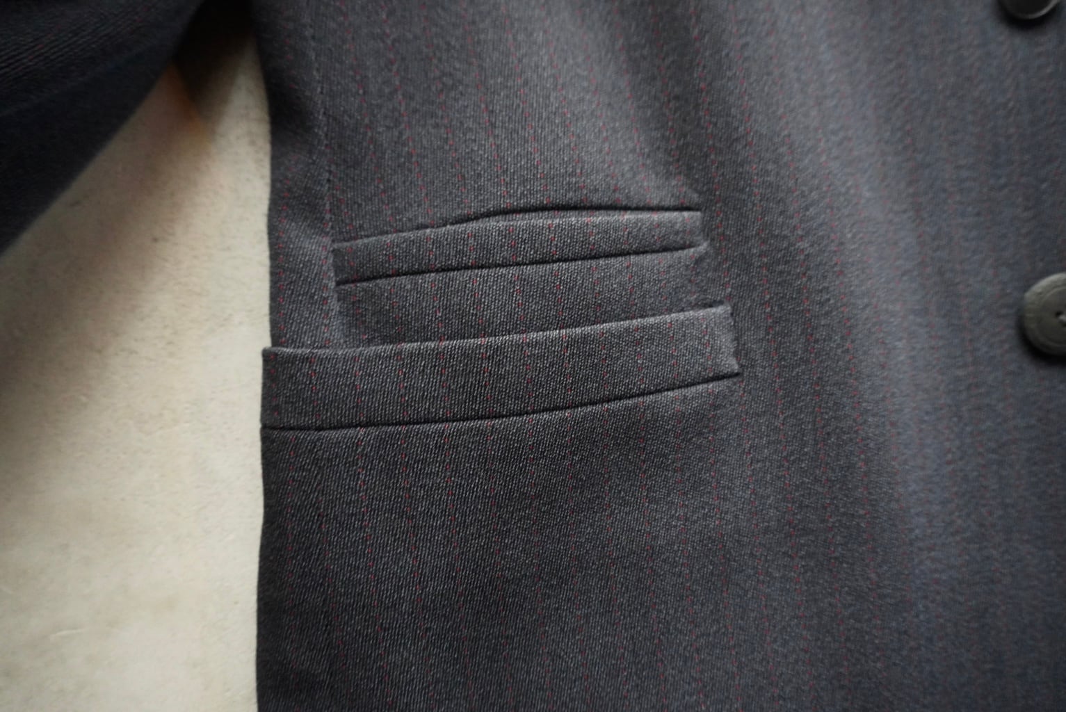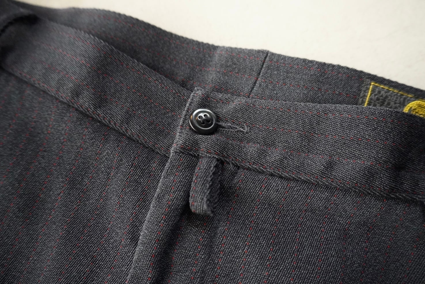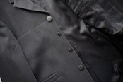 トップボタン/裾ボタンが露出した、独特な仕様の比翼の前立て。
