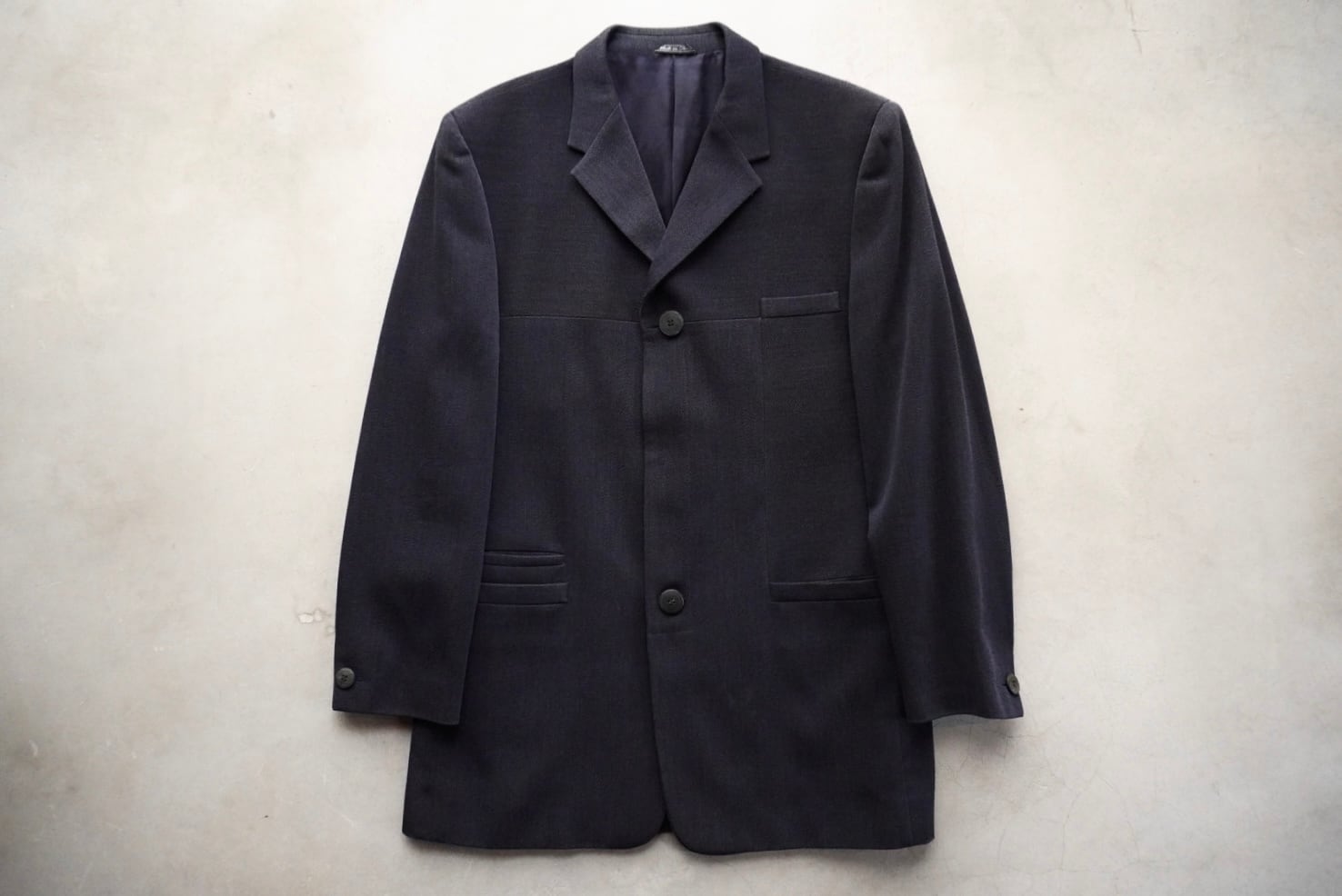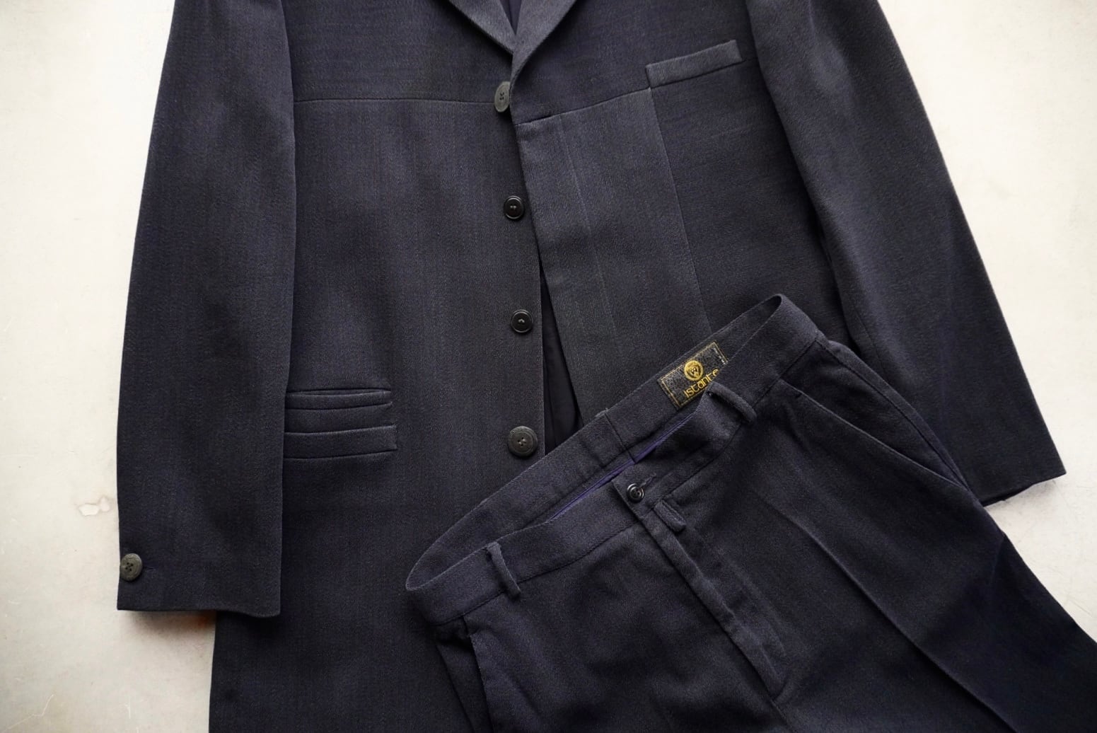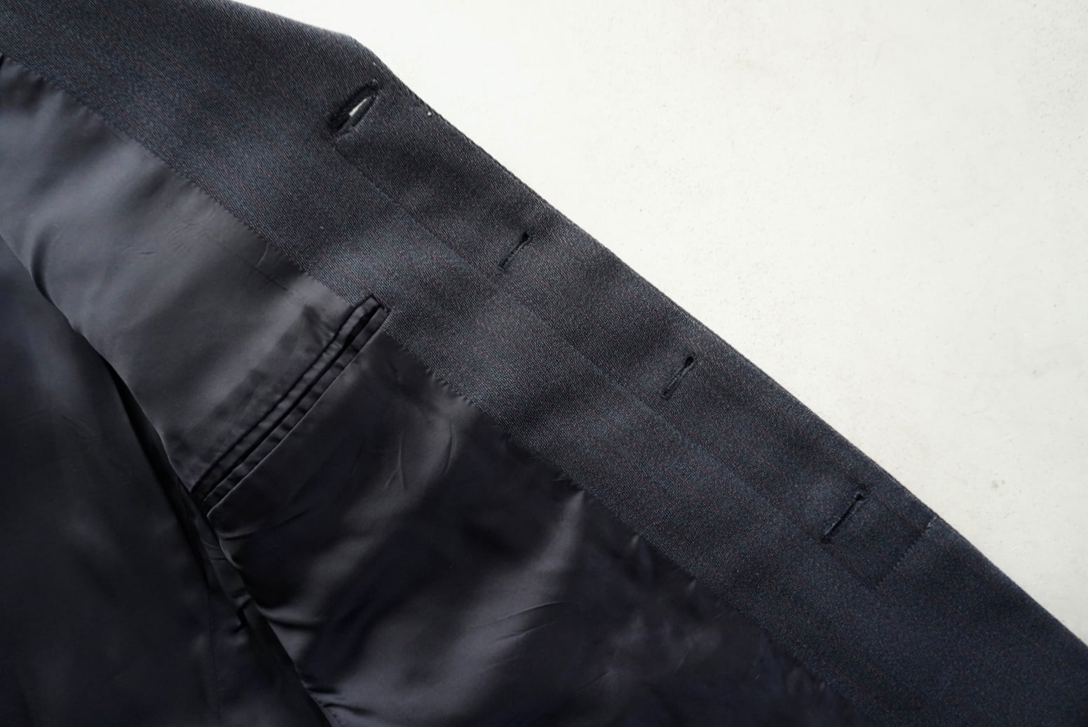 トップボタン/裾ボタンが露出した、独特な仕様の比翼の前立て。