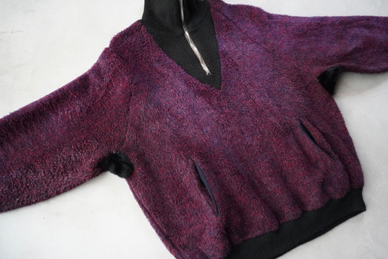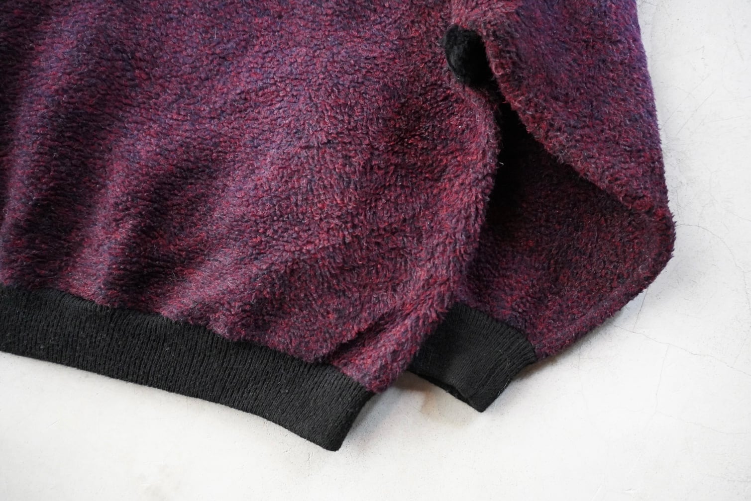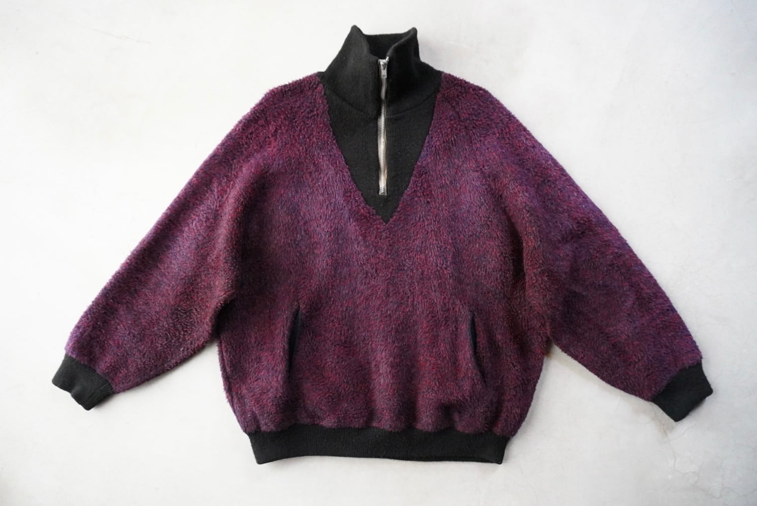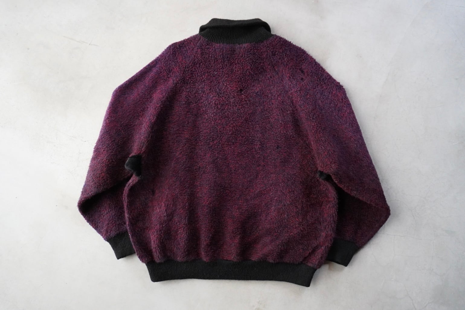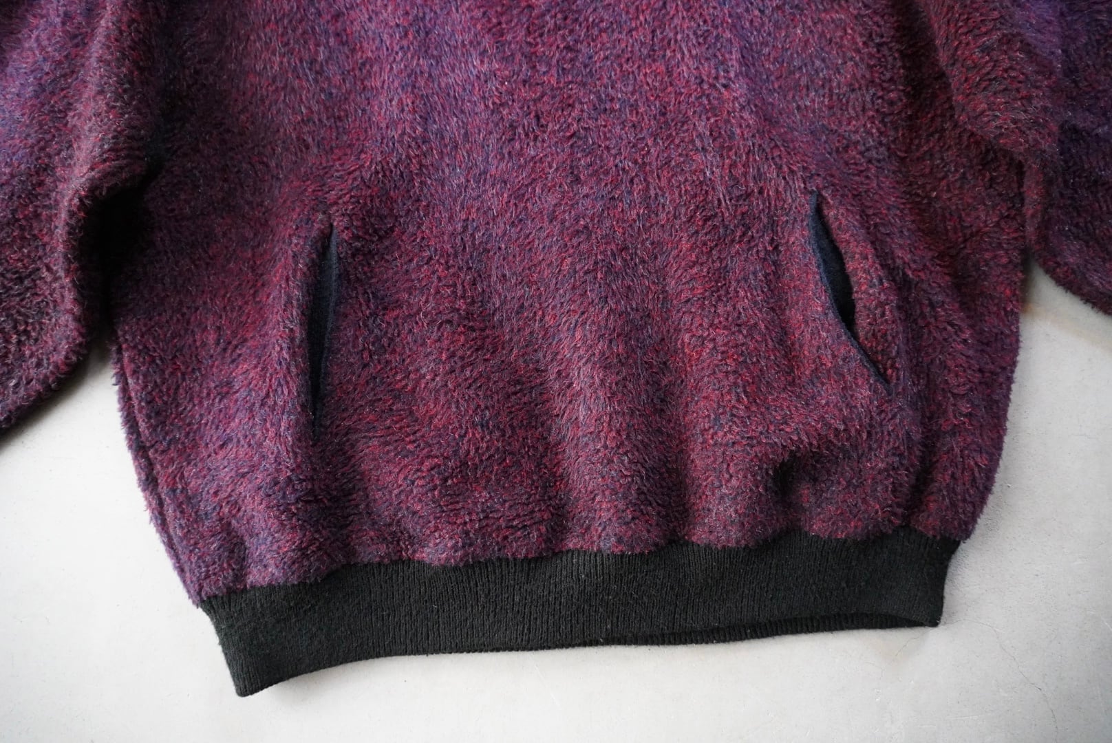 たっぷり肉厚で毛足の長い、アクリルフリース生地のジッププルオーバー。