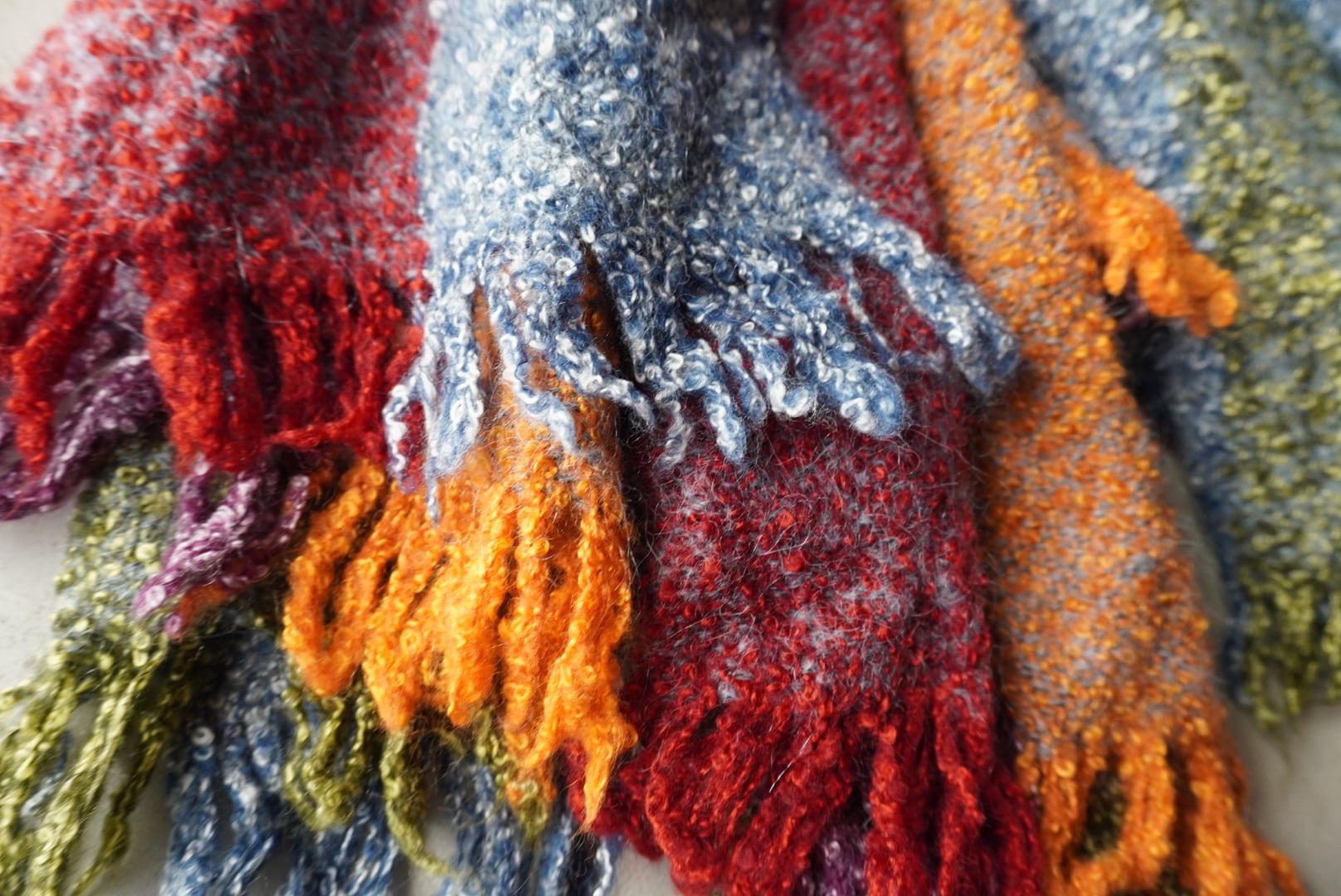 いつものコートにプラスワンで素敵に仕上がるモヘアストールです。