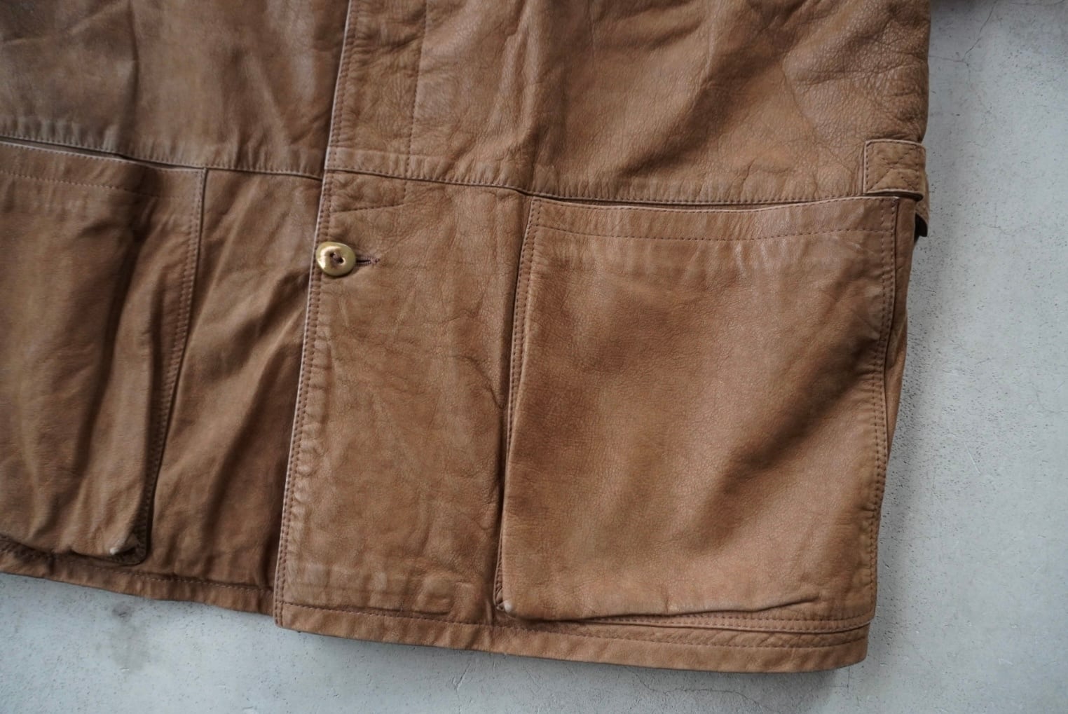 ステッチが映える胸ポケットに、裾は小さなマチが付くパッチポケットの仕様。
