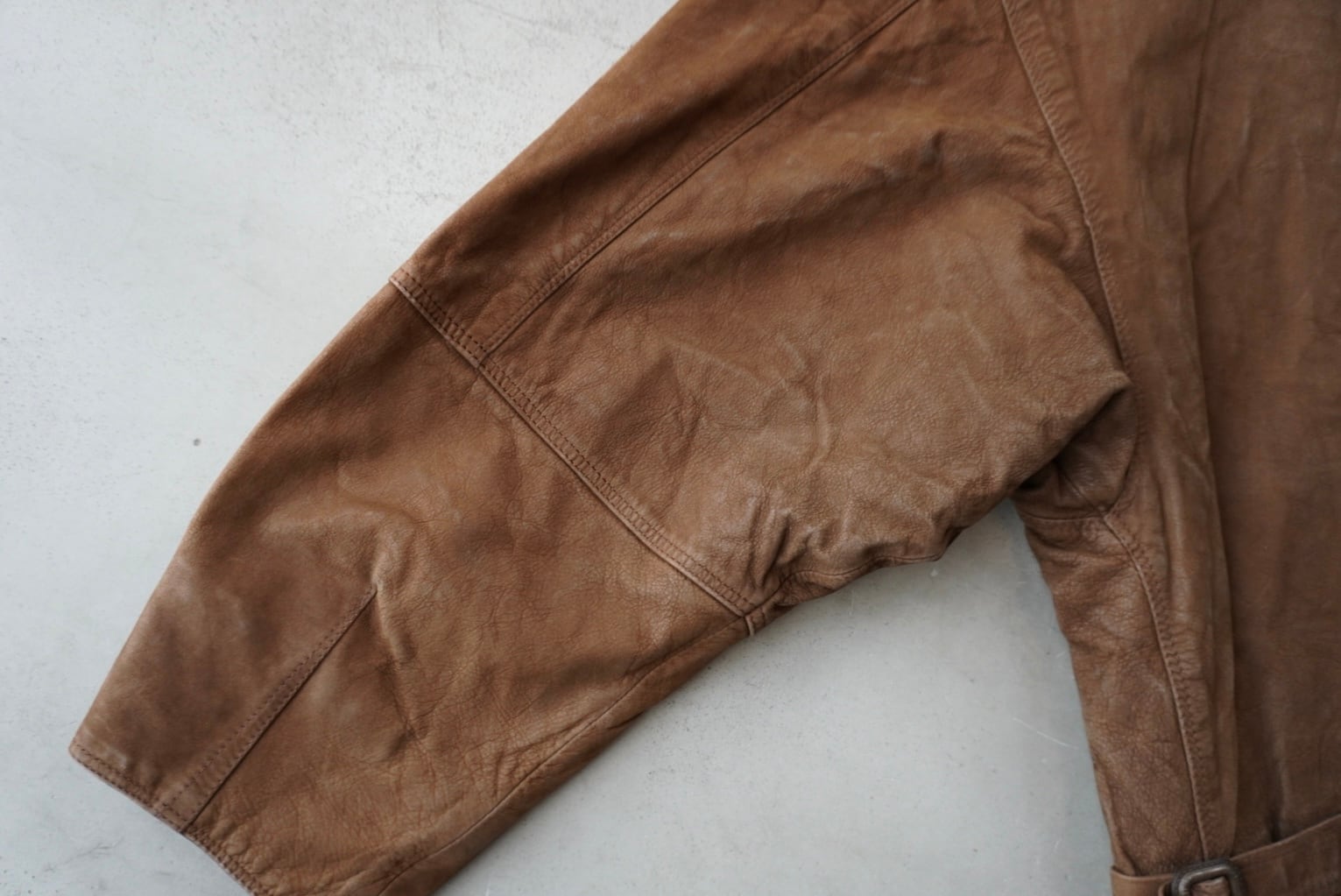 細かな3本のダーツで少しずつ窄められた、丸みを帯びたワイドスリーブ。