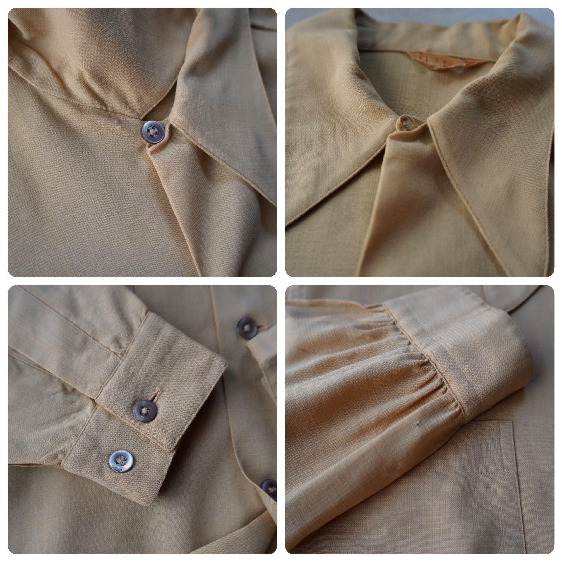 トップボタンが襟下に隠れない、古いアメリカ物では稀に見るオープンカラーディテール。