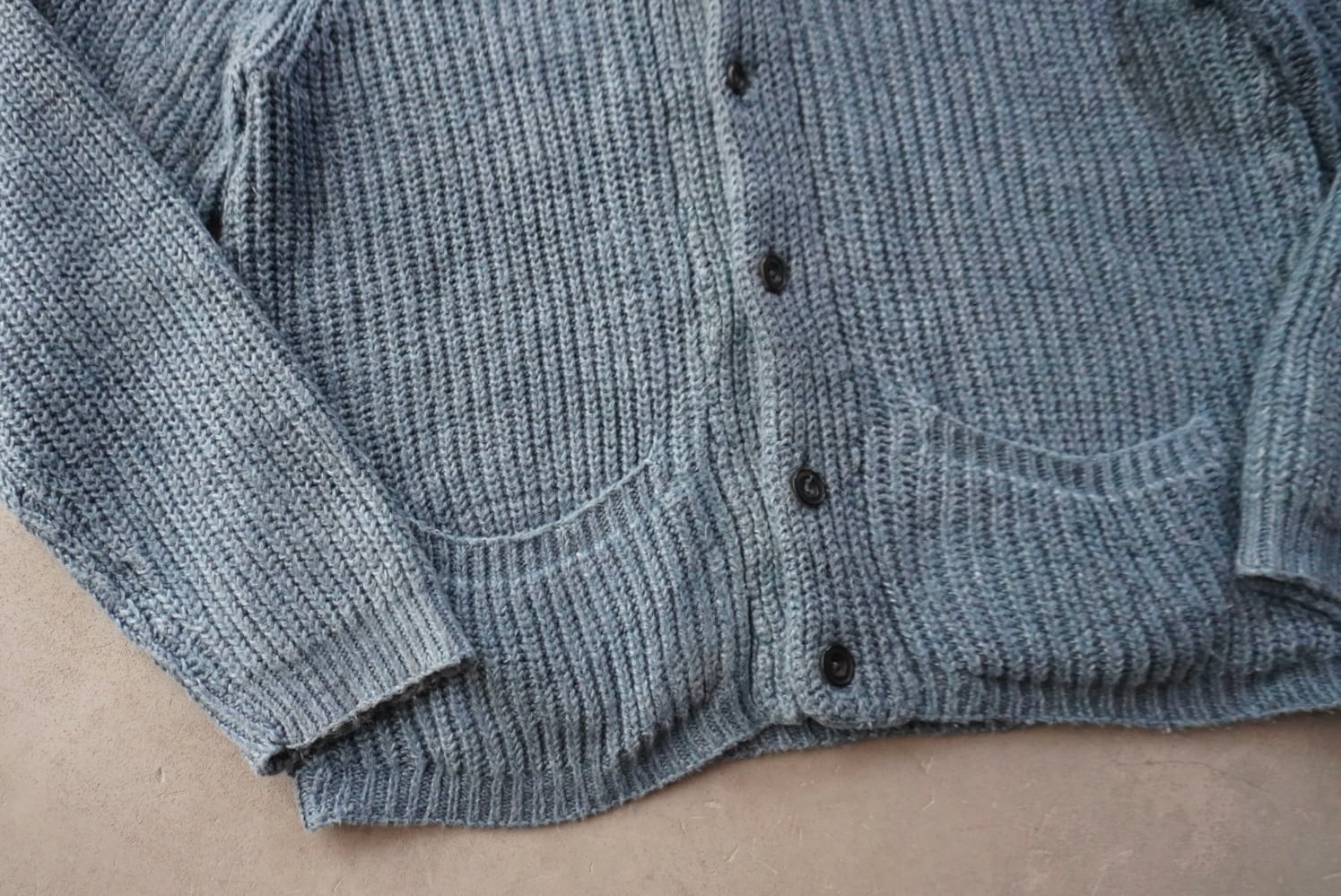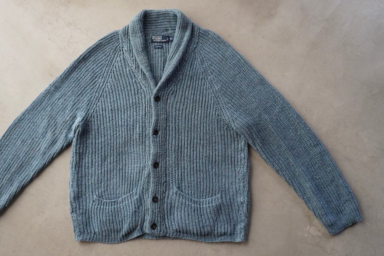 肉厚かつずっしりとした重量のある、ピュアリネンのショールカラーカーディガン。
