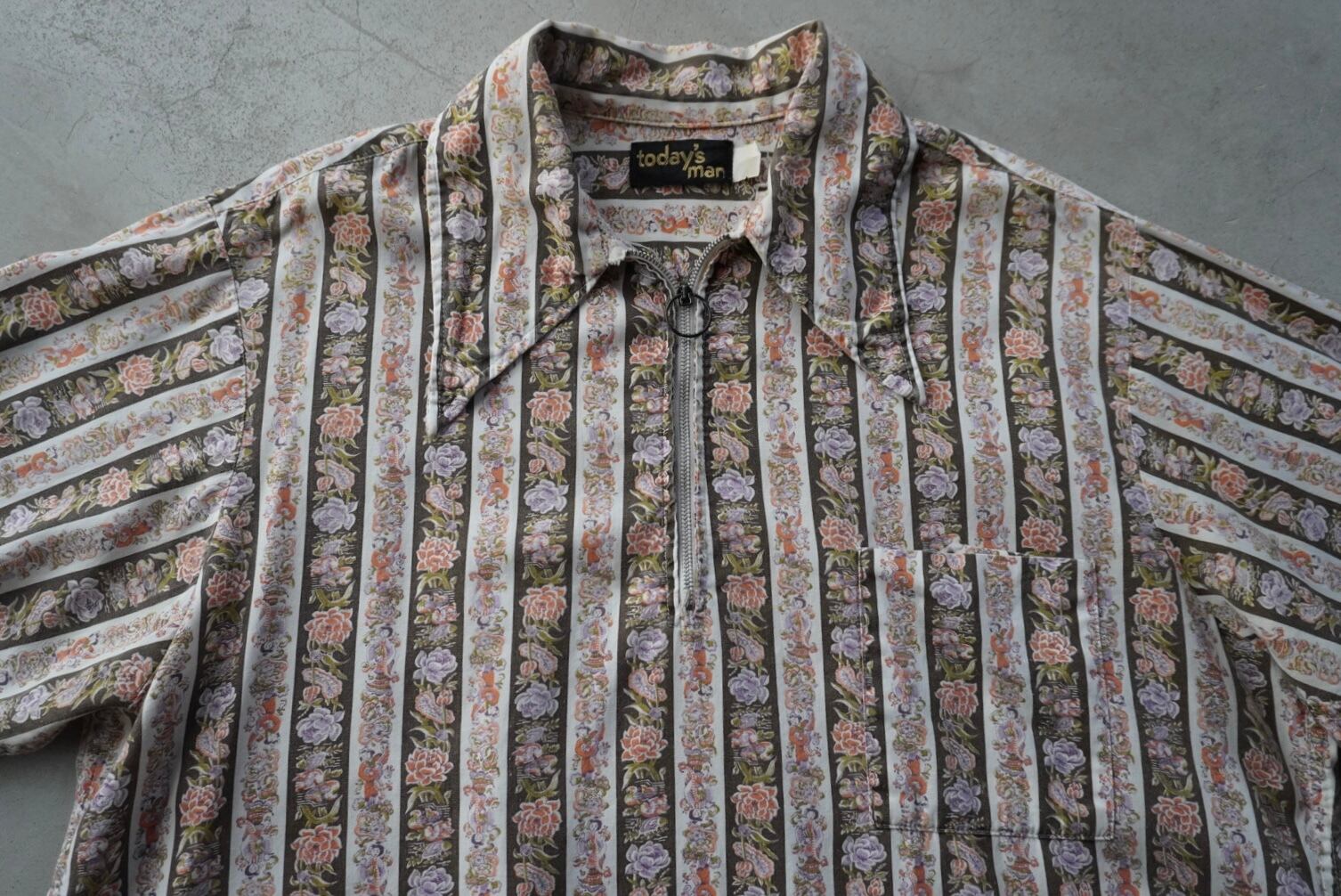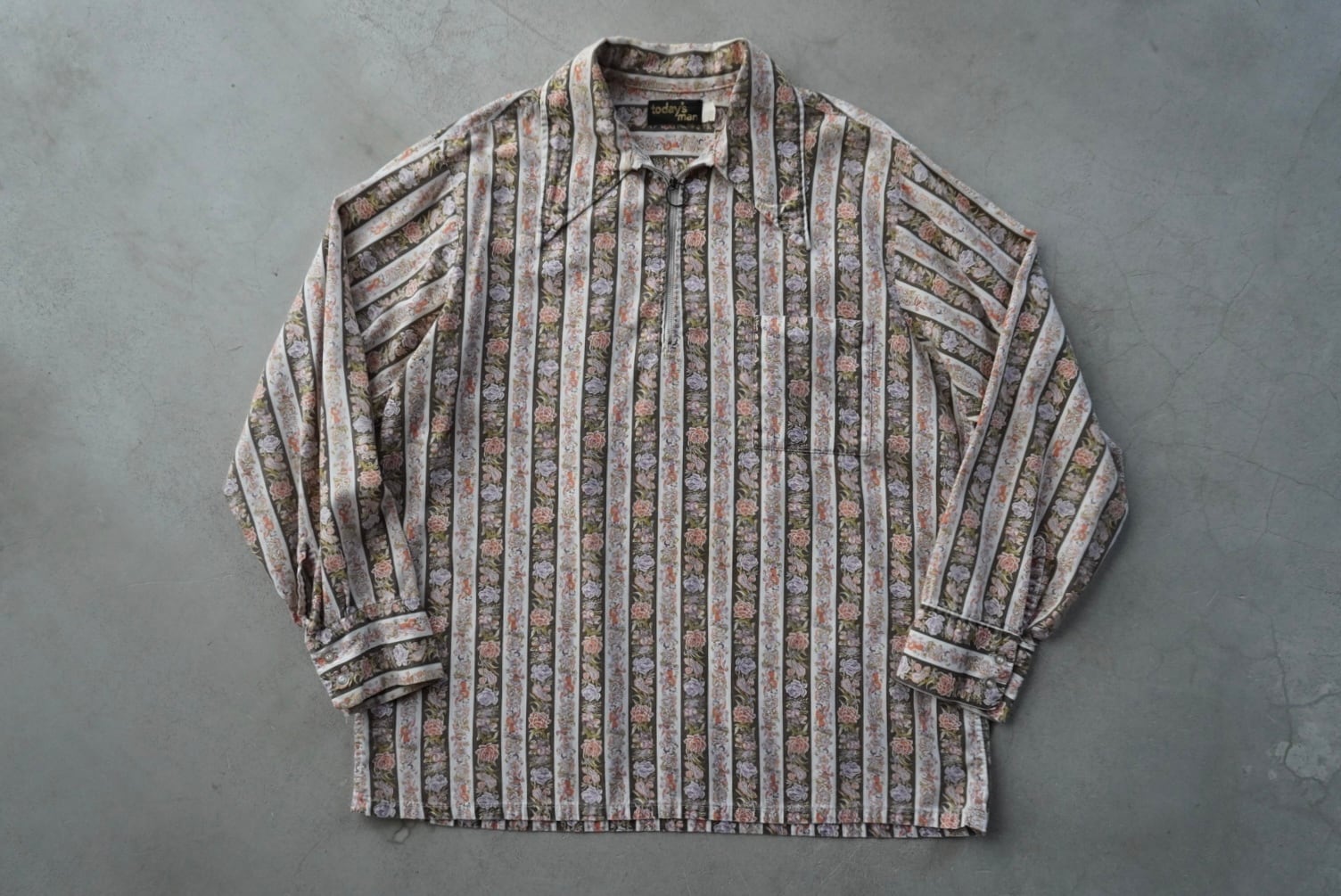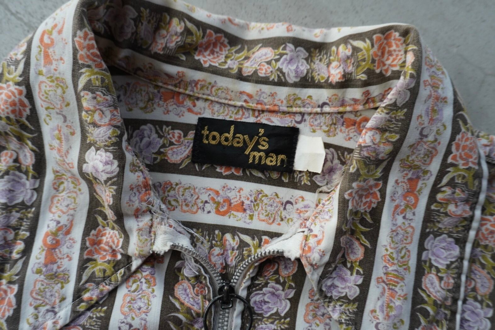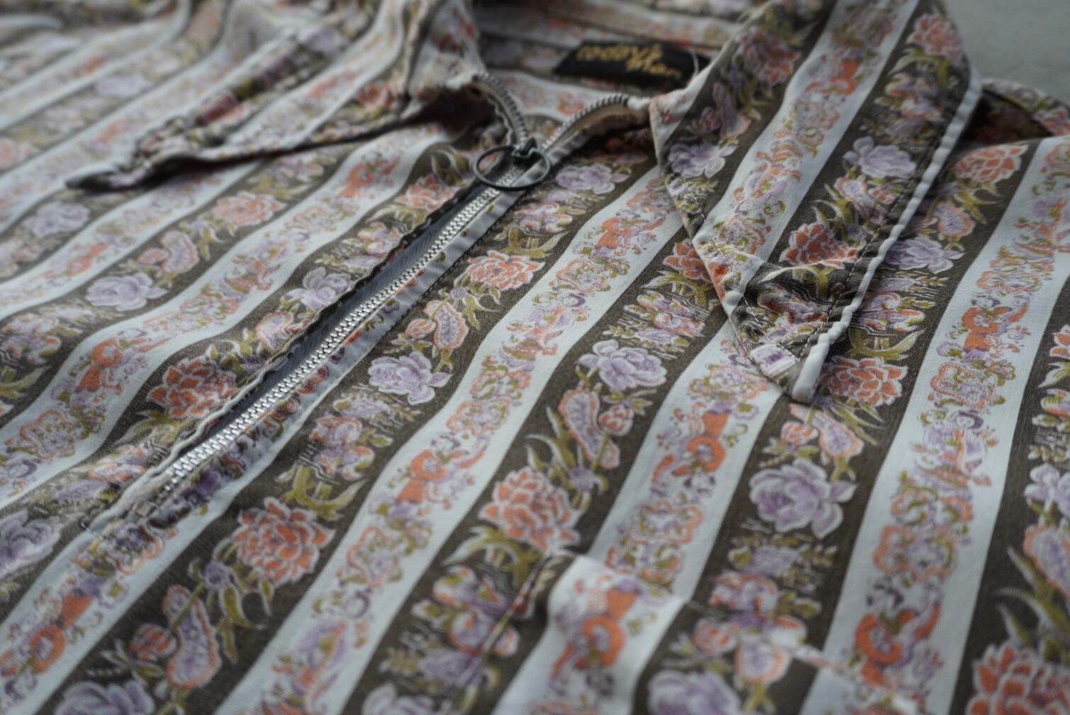 華やかな色使いの細かな総柄が、着古され良い雰囲気に仕上がった綿生地により心地良く中和されている様に感じます。